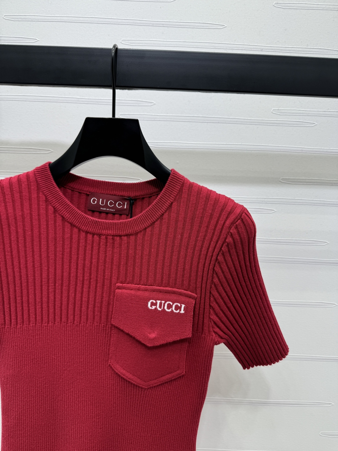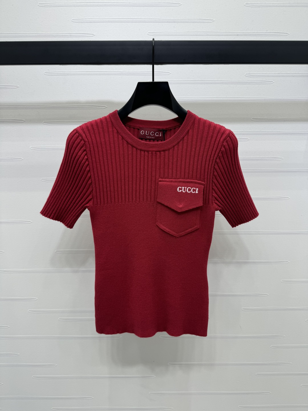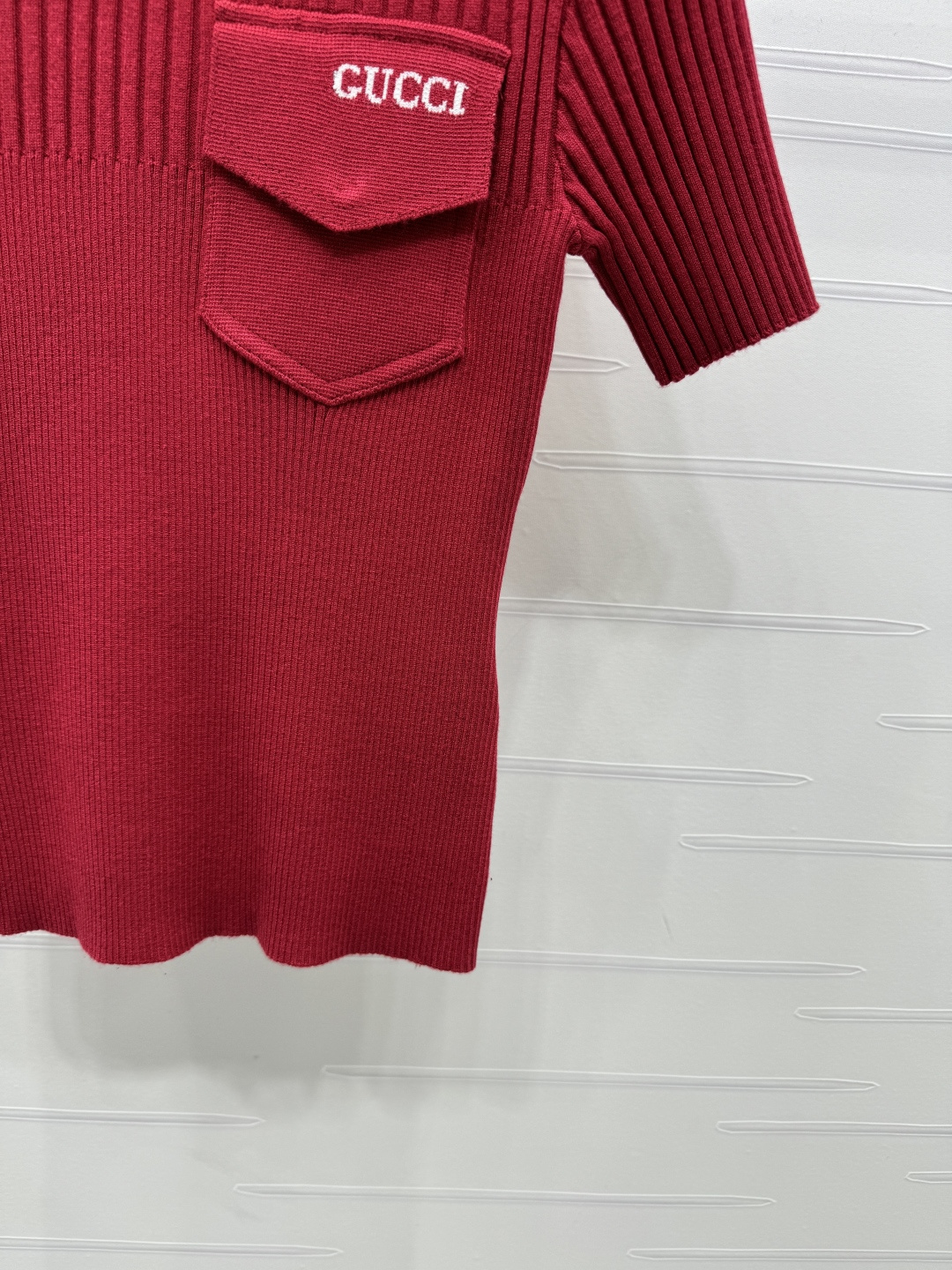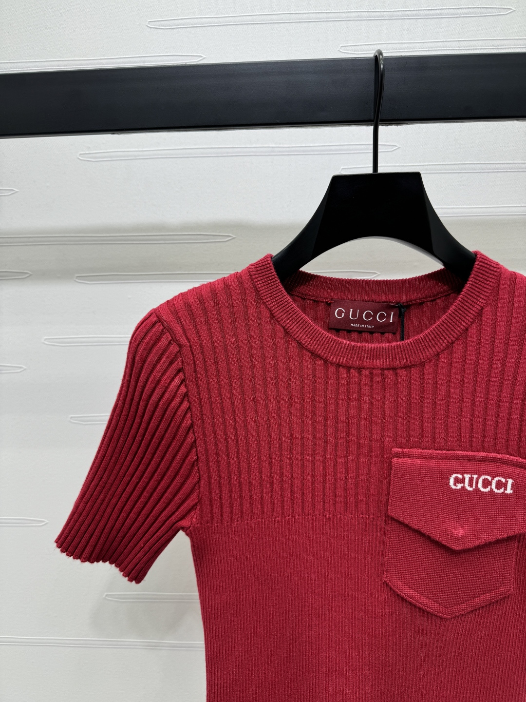 Gucci 2025 Spring/Summer Knit Short Sleeve Top with Pocket Detail