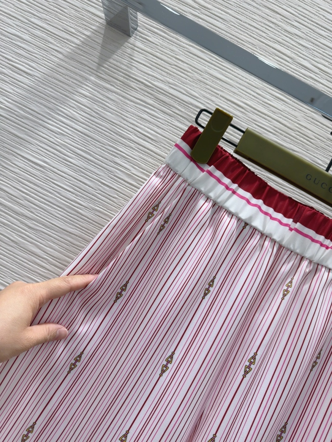 These Gucci 2025SS striped wide-leg pants are a versatile addition to any wardrobe, offering both style and comfort.