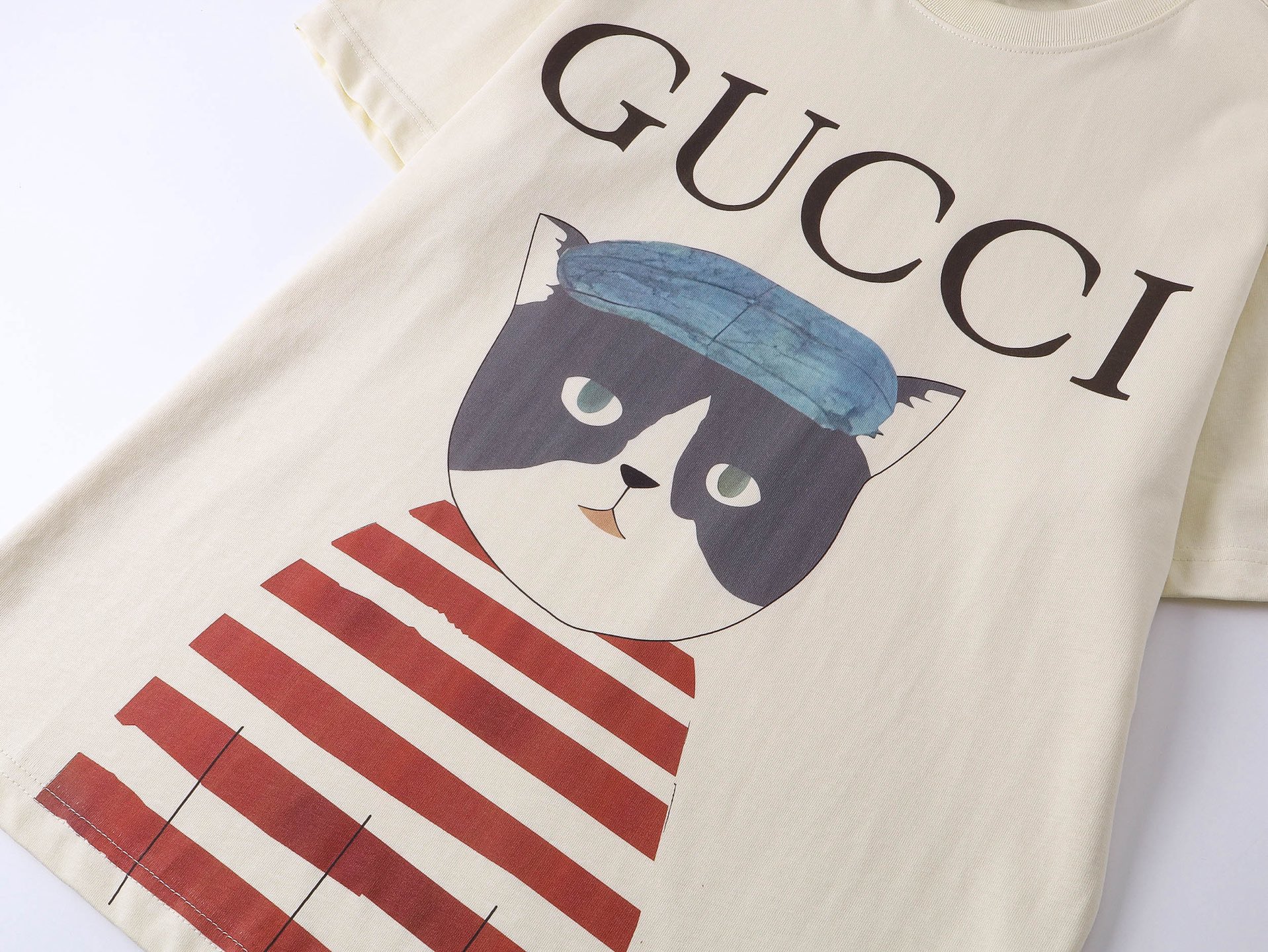 Gucci Cat Print T-Shirt, Casual Cotton Tee for Women, Short Sleeve Top