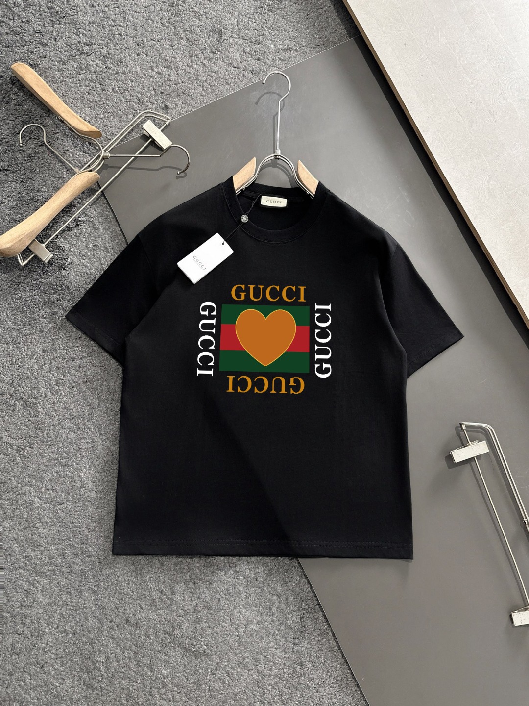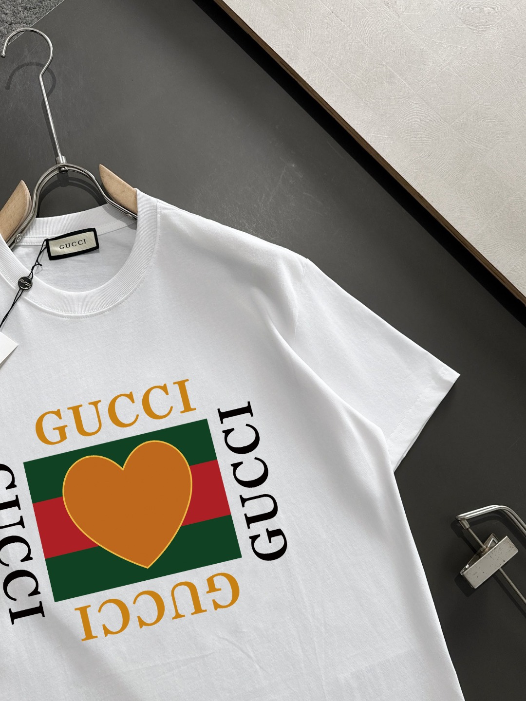 - Eye-catching heart graphic print with Gucci logo
