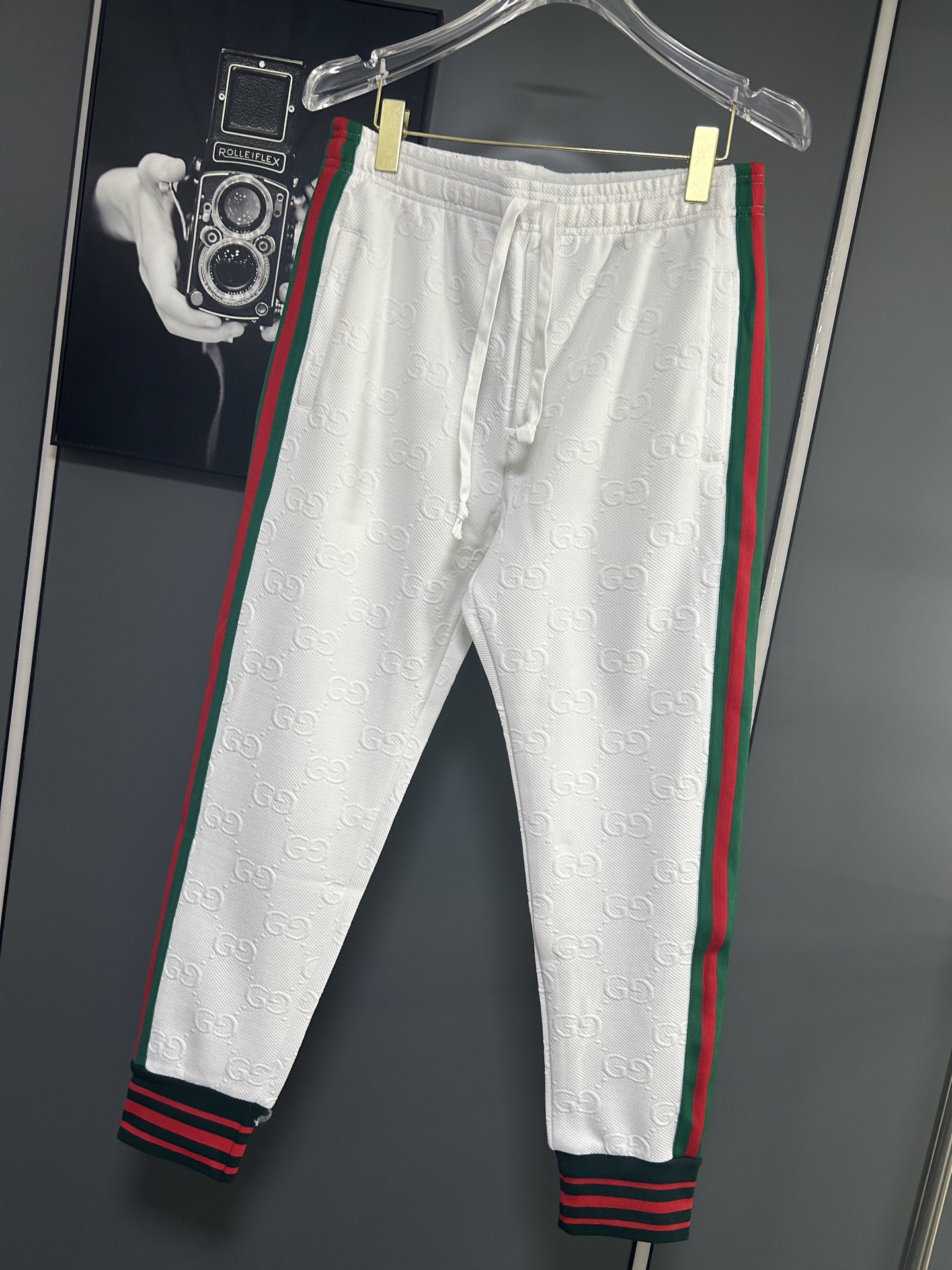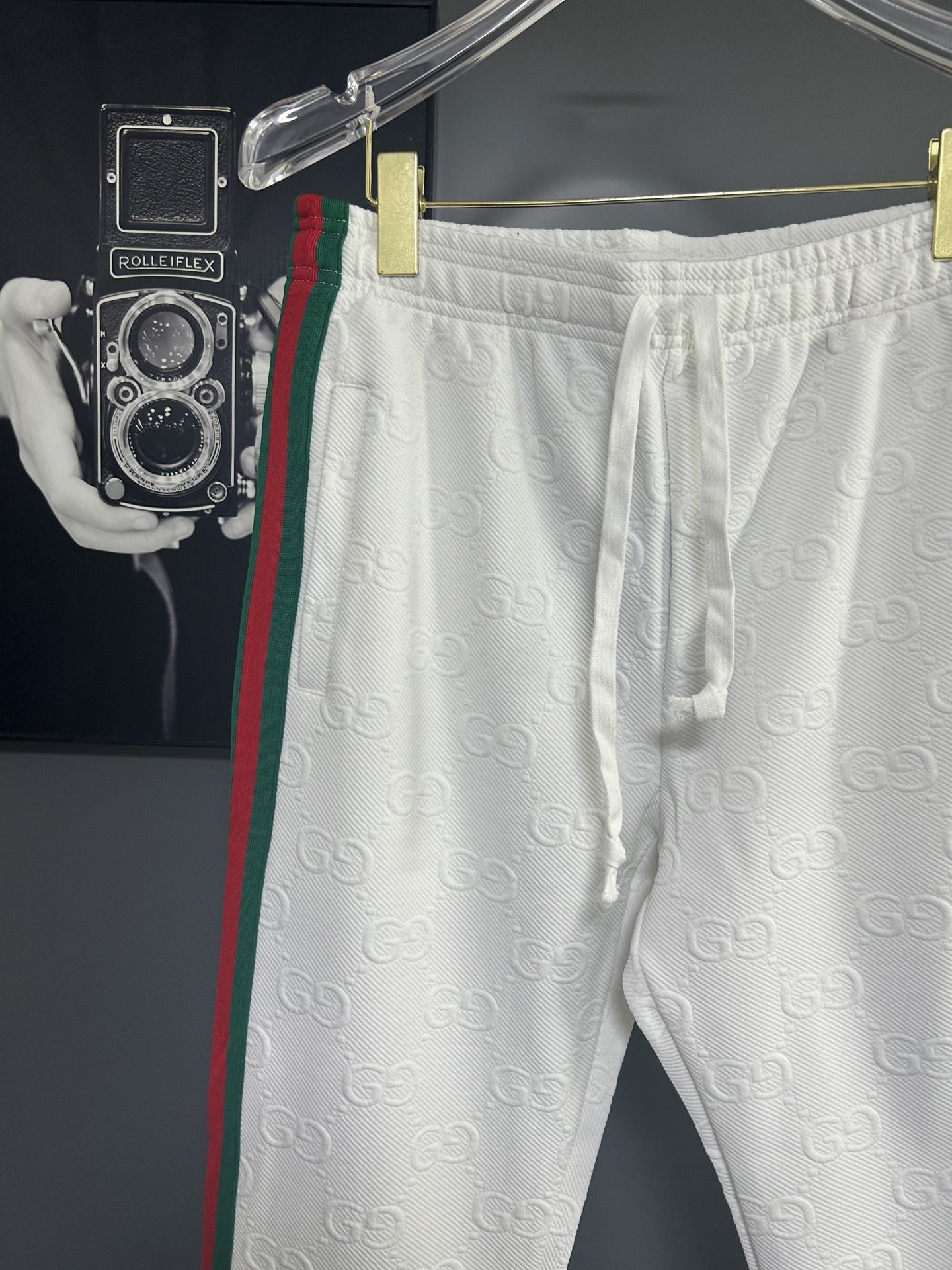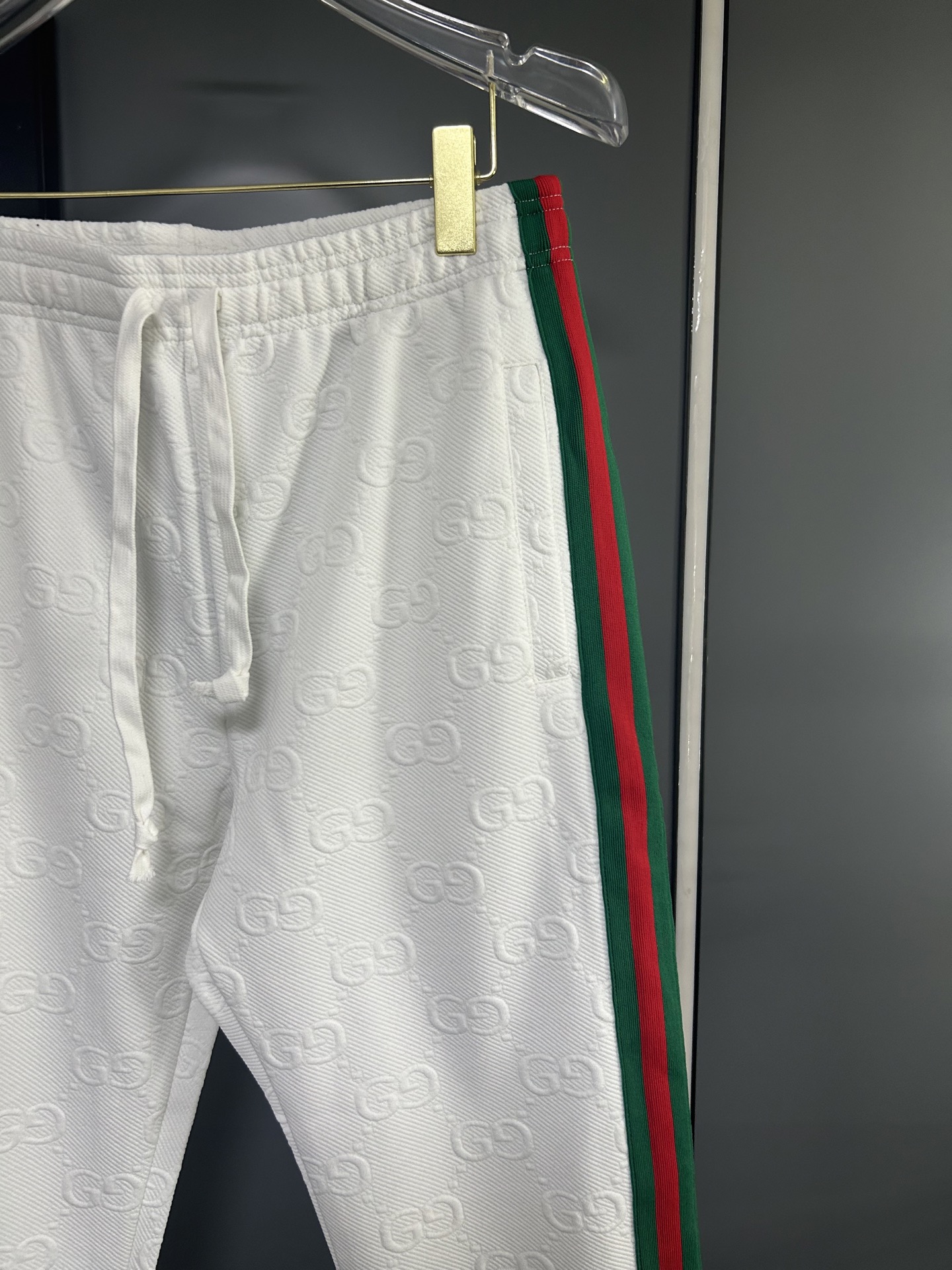 These Gucci logo trousers combine iconic design with ultimate comfort. Perfect for those who appreciate luxury streetwear, these pants offer a blend of style and relaxation.