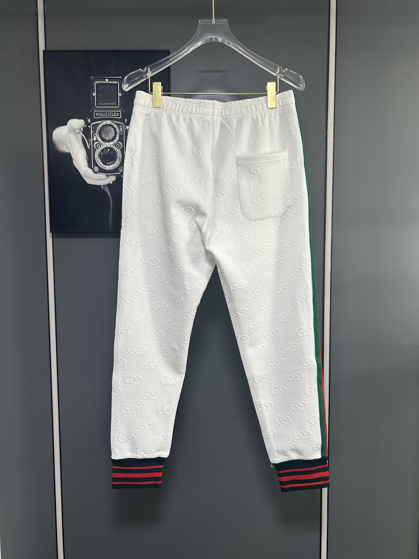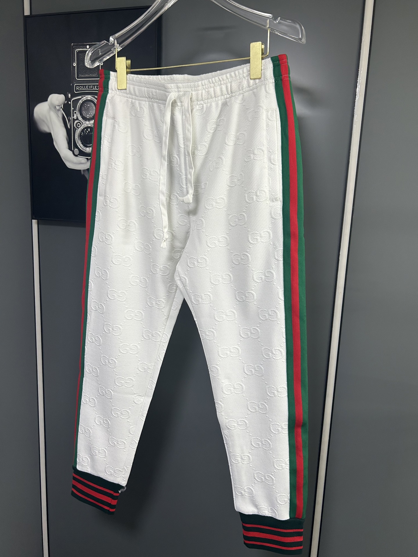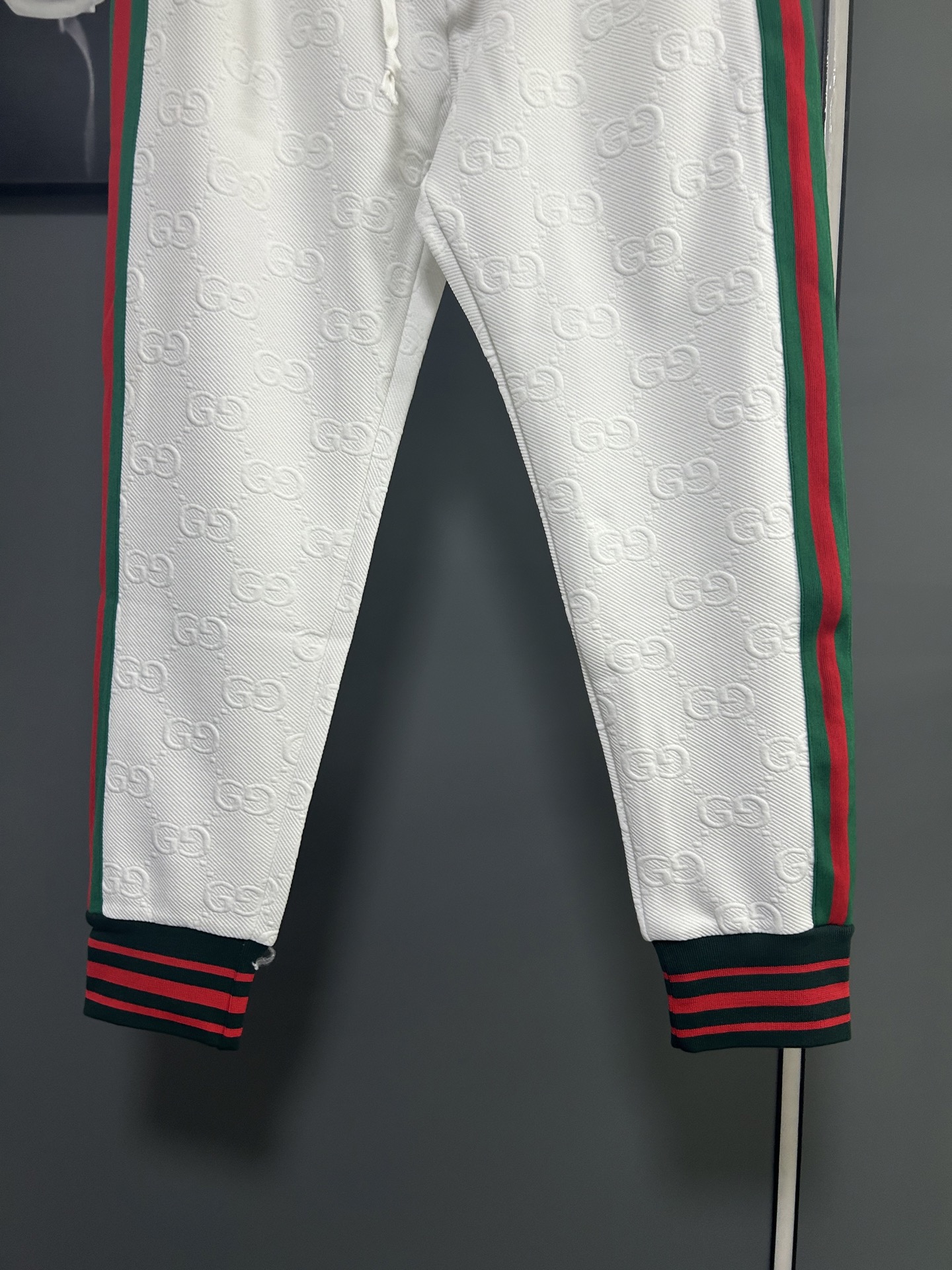 These Gucci logo trousers combine iconic design with ultimate comfort. Perfect for those who appreciate luxury streetwear, these pants offer a blend of style and relaxation.