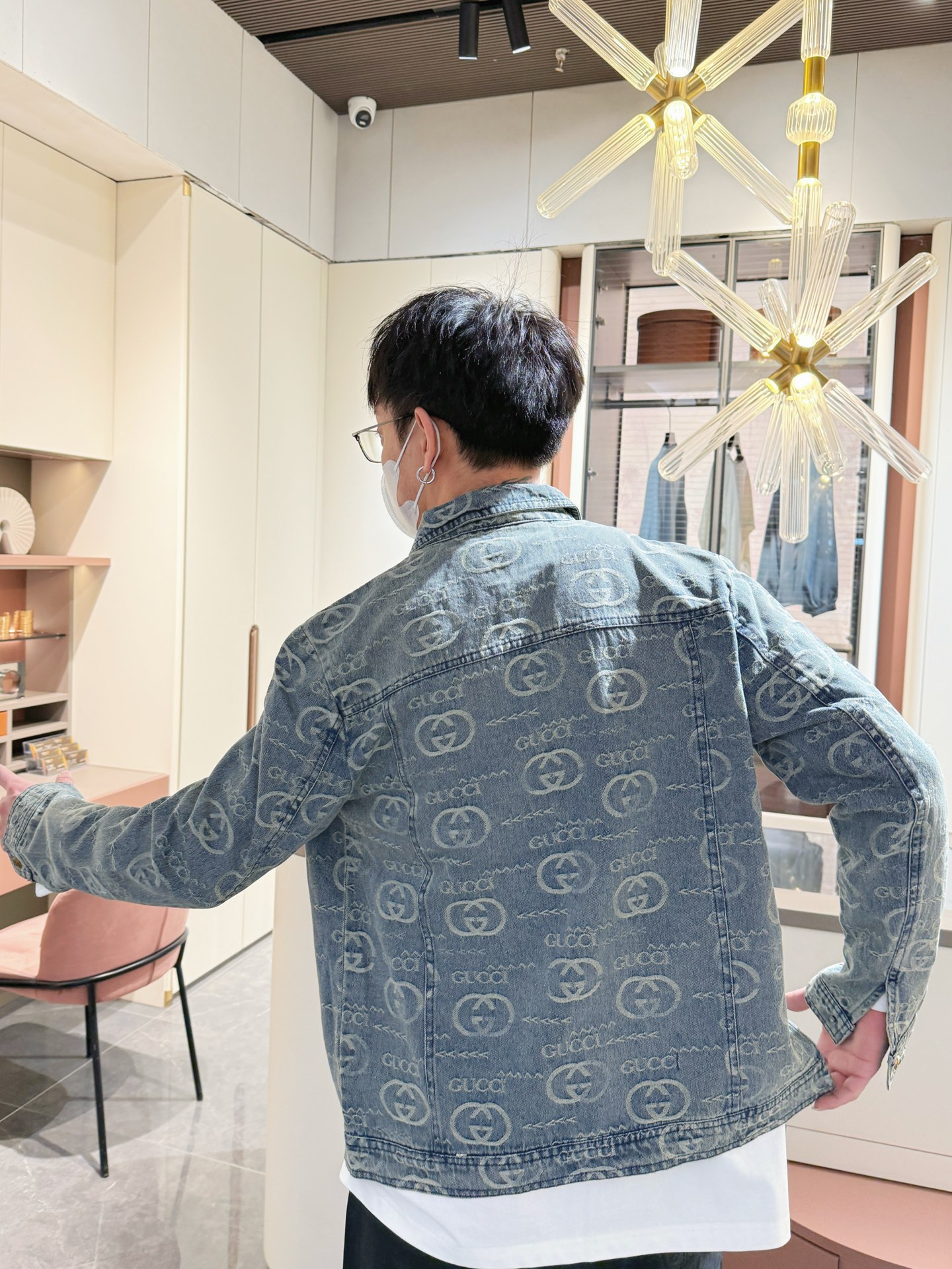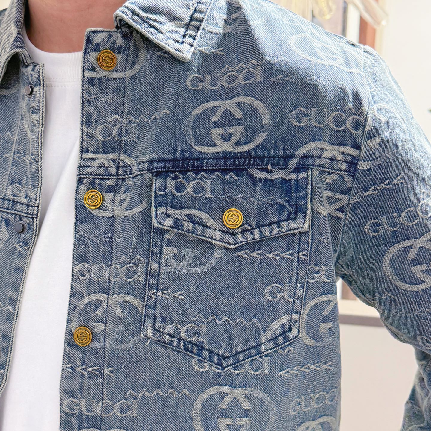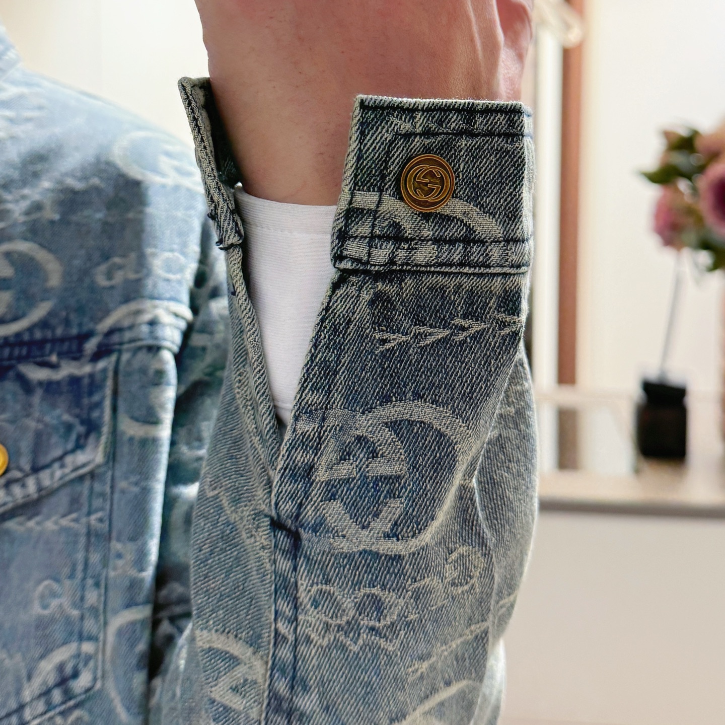 This Gucci denim jacket is a statement piece that blends classic style with modern luxury.