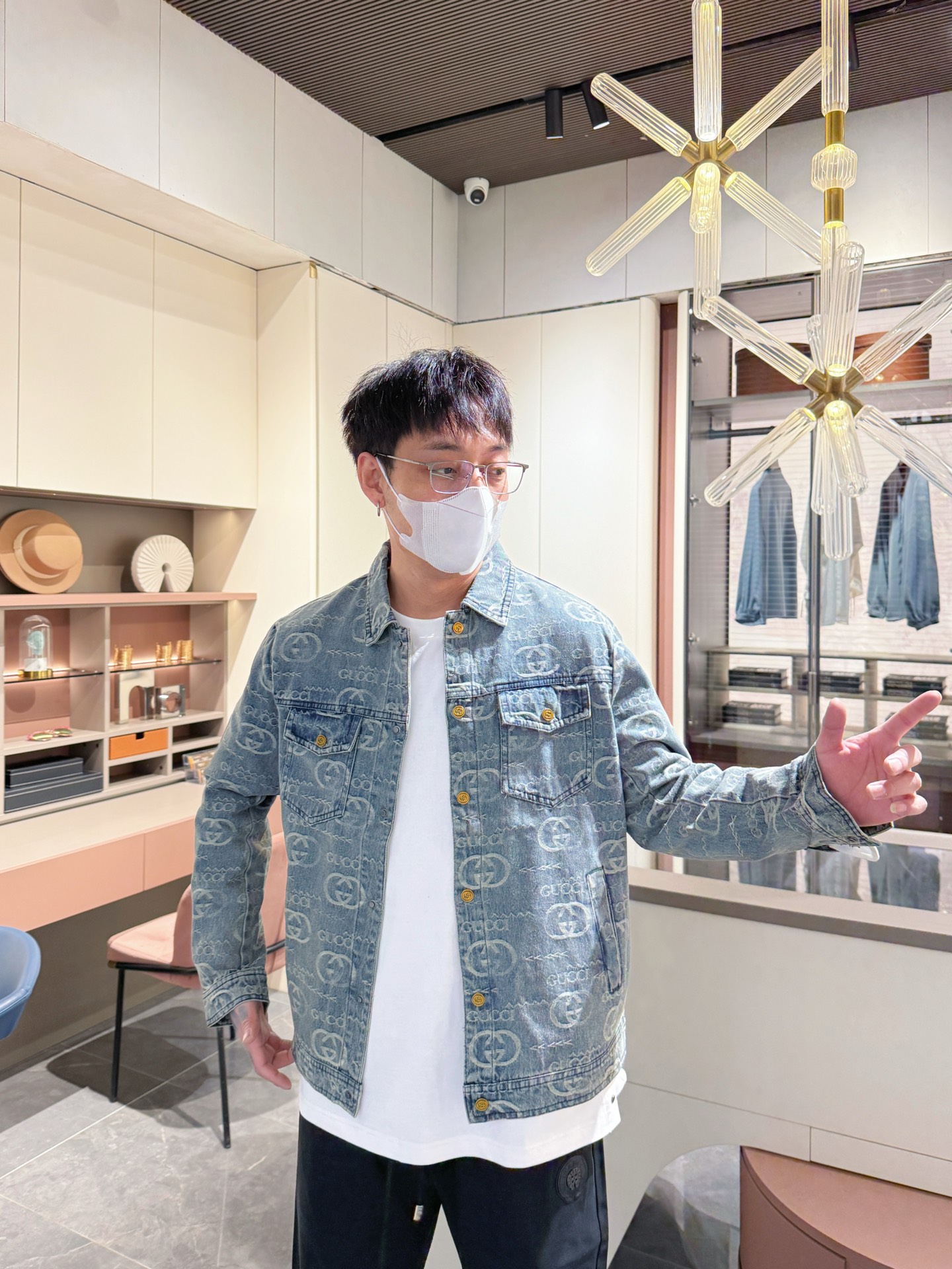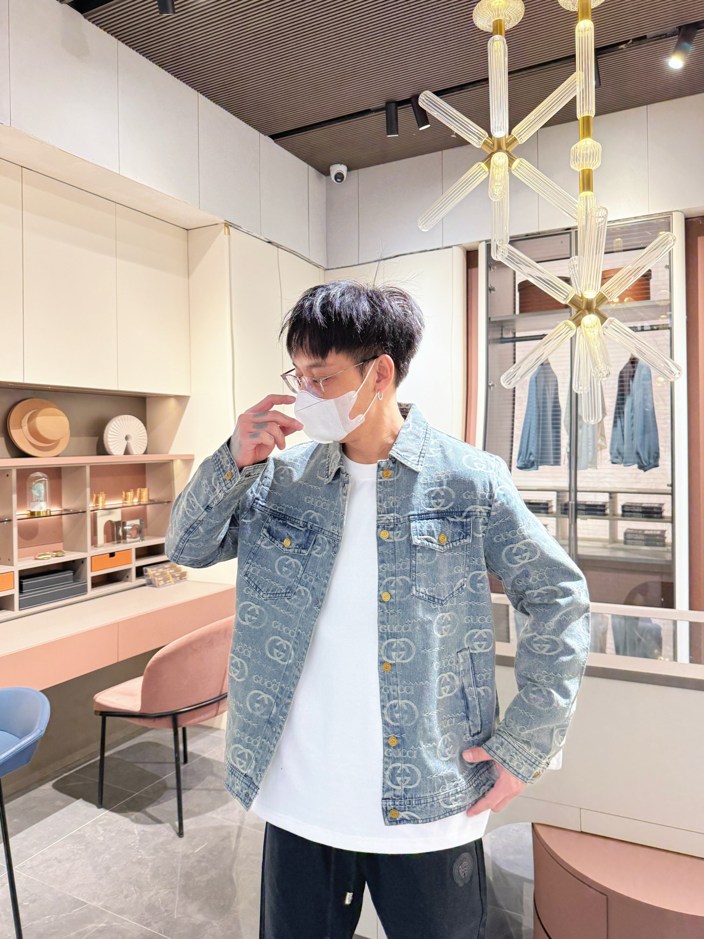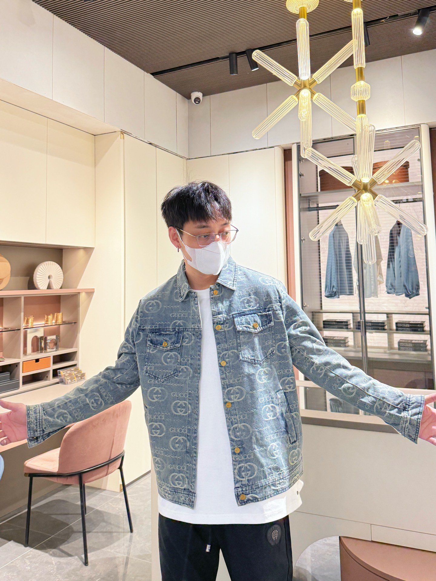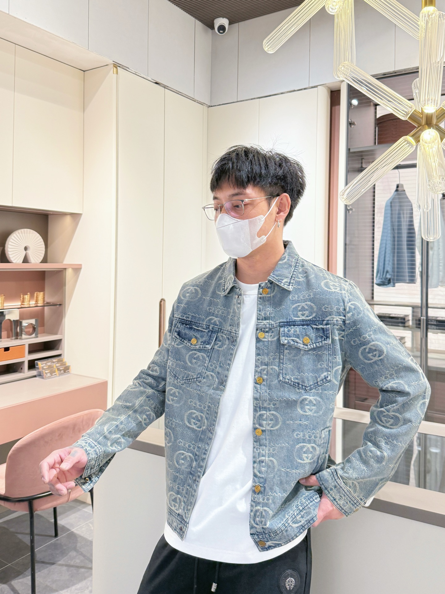 This Gucci denim jacket is a statement piece that blends classic style with modern luxury.