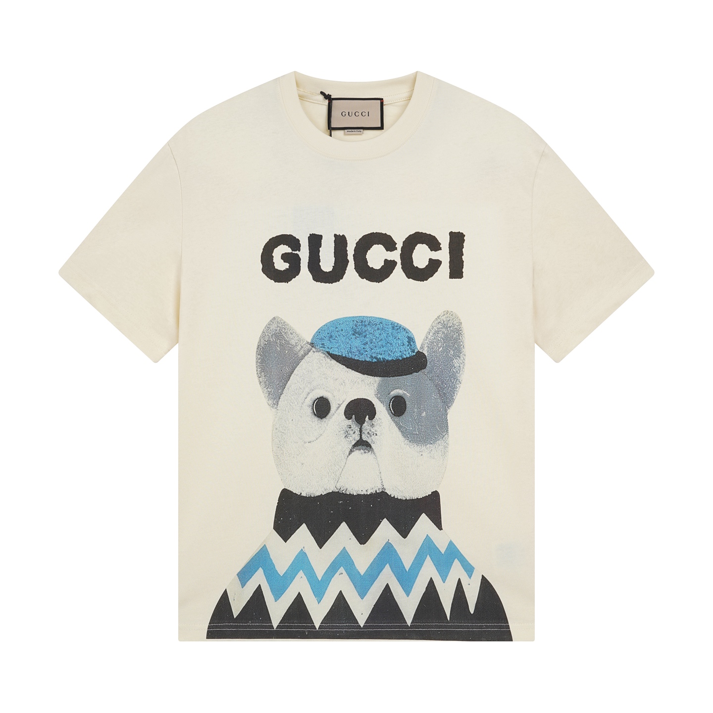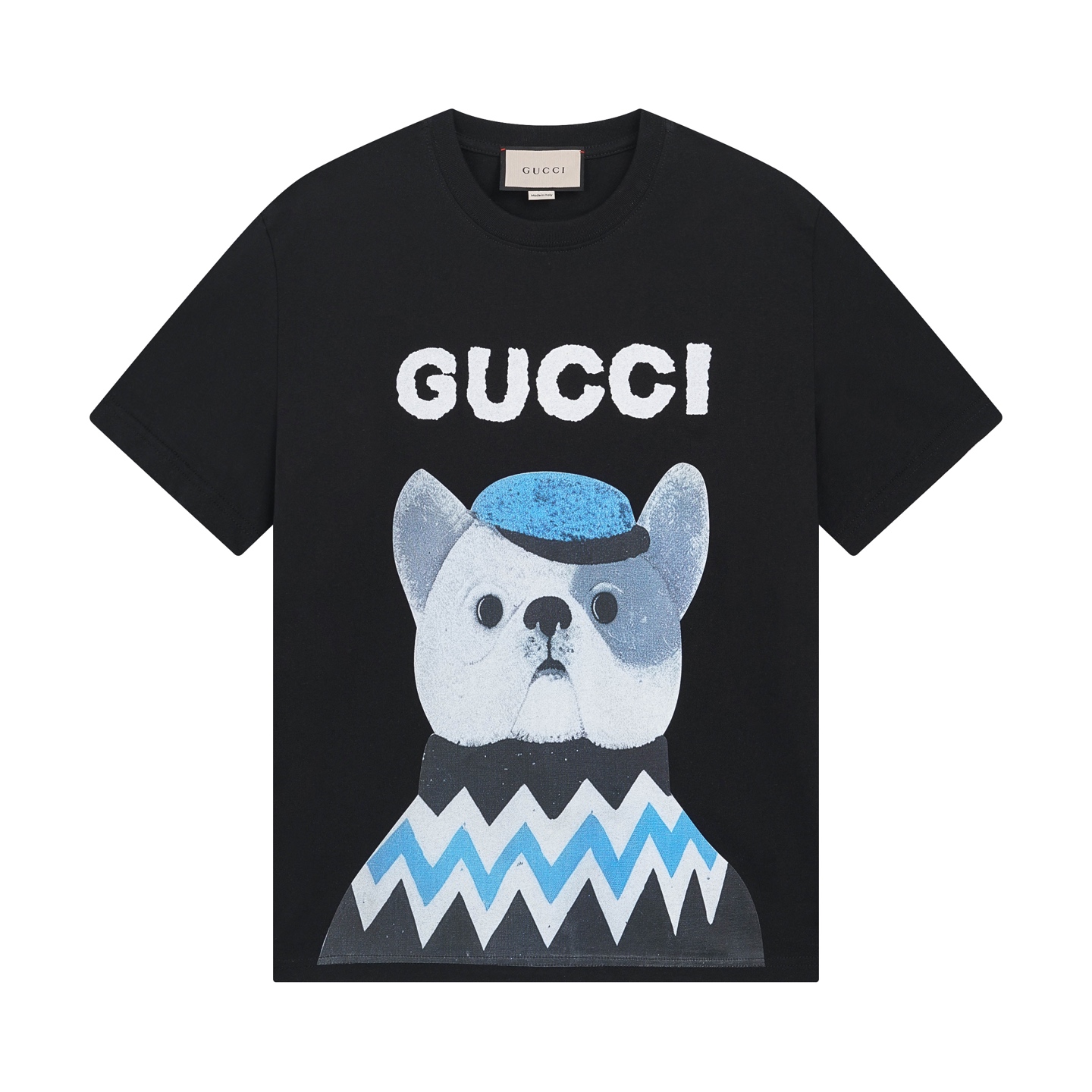 Gucci Early Spring Series High Weight Short Sleeve T-Shirt, Dog Print