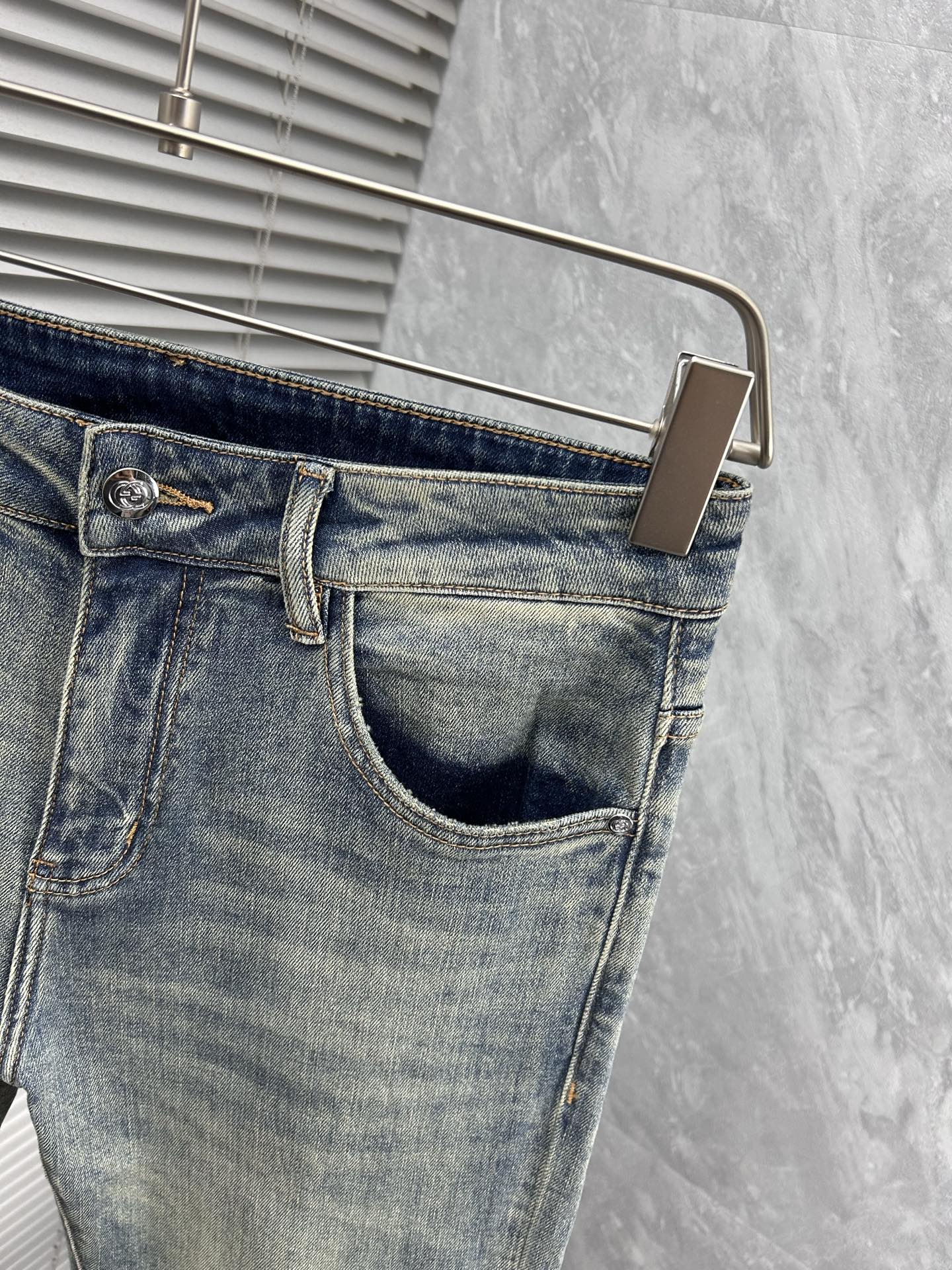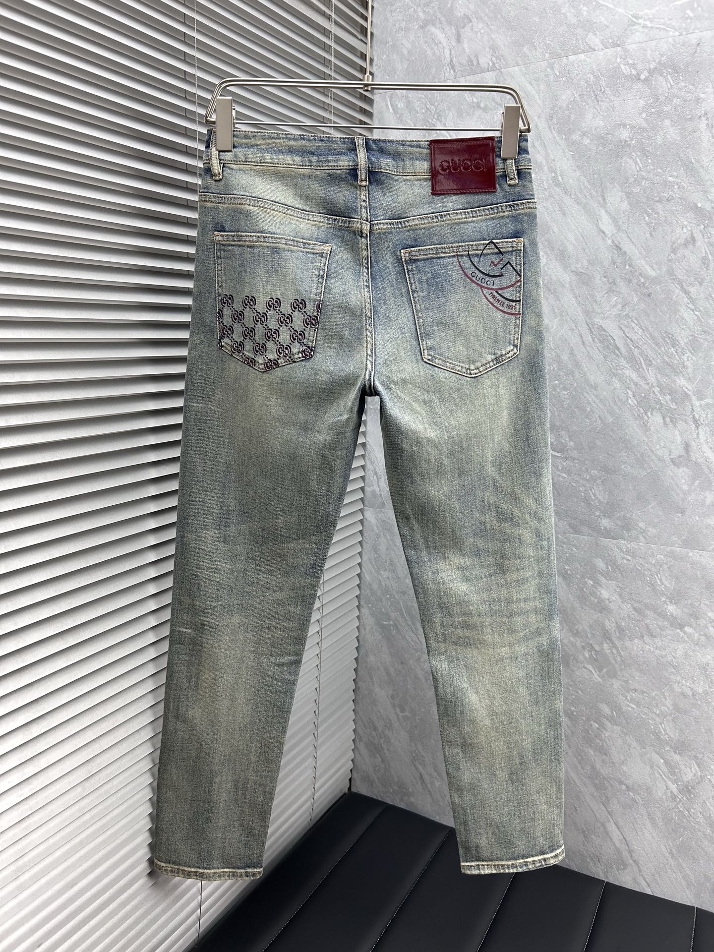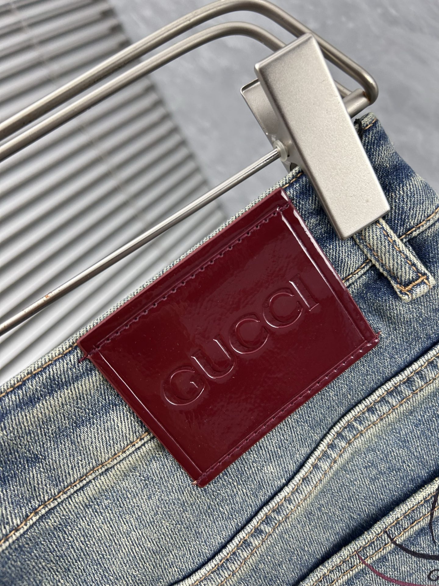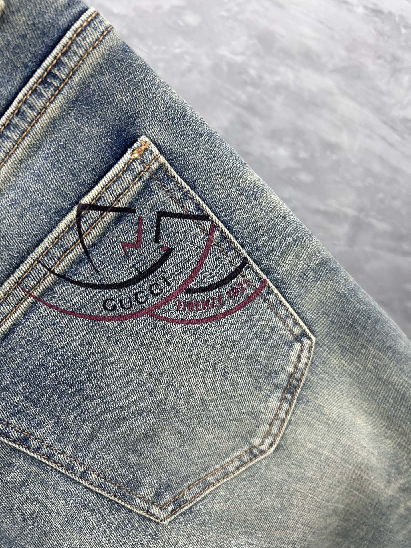 These Gucci men's jeans offer a blend of luxury and contemporary style. Made with high-quality denim and featuring a slim fit, these jeans are designed to provide both comfort and a stylish silhouette.