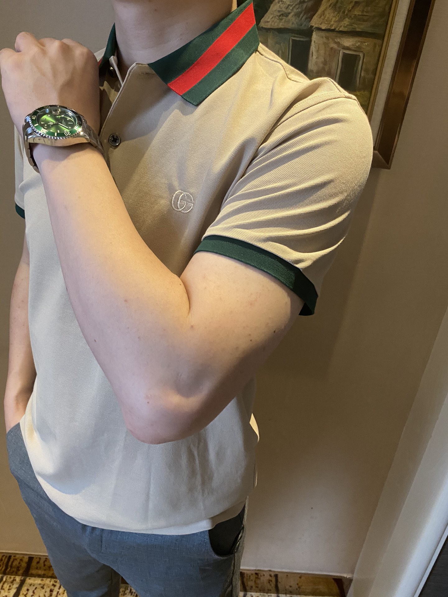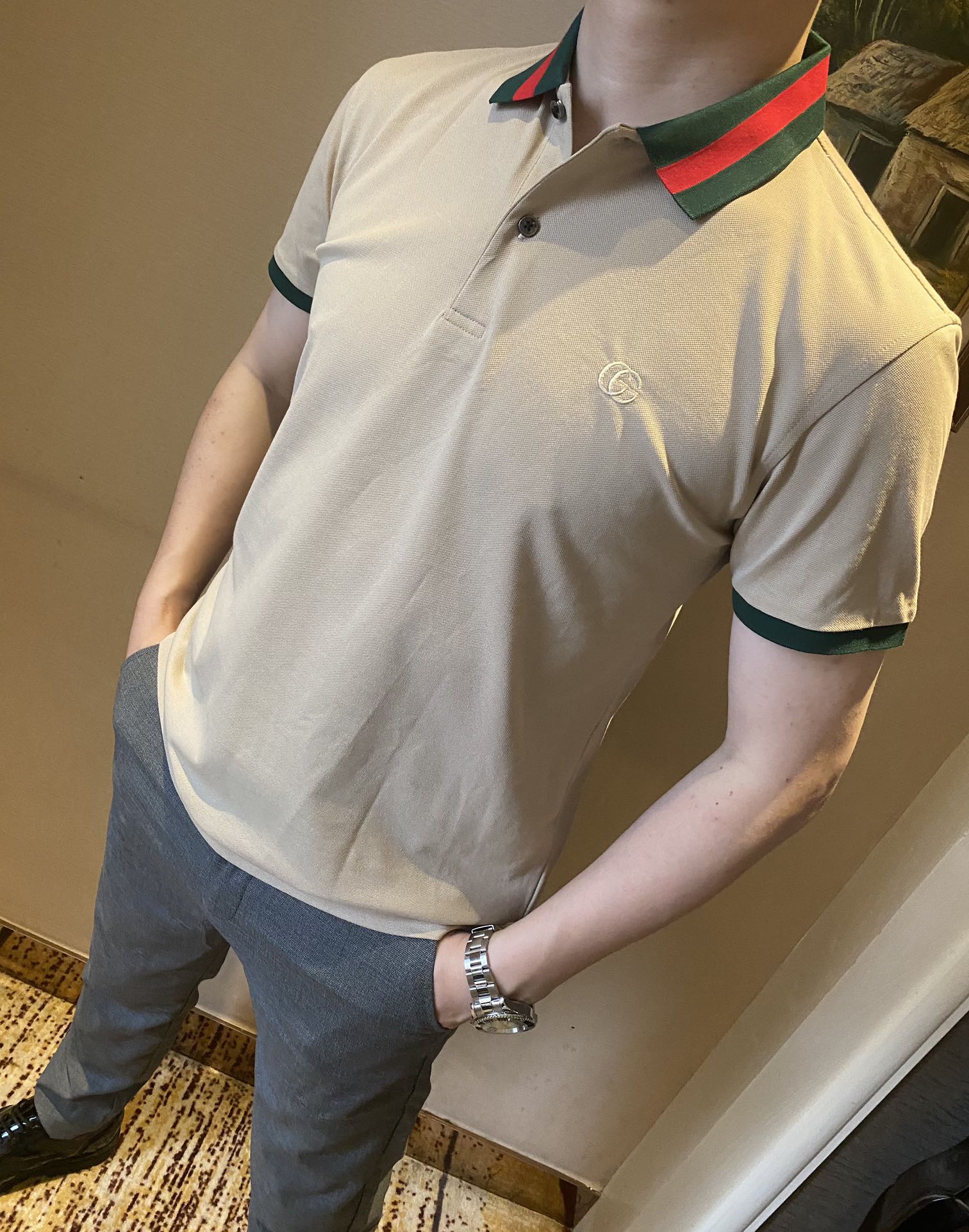 Gucci Men's Polo Shirt with Striped Collar - Stylish and Comfortable