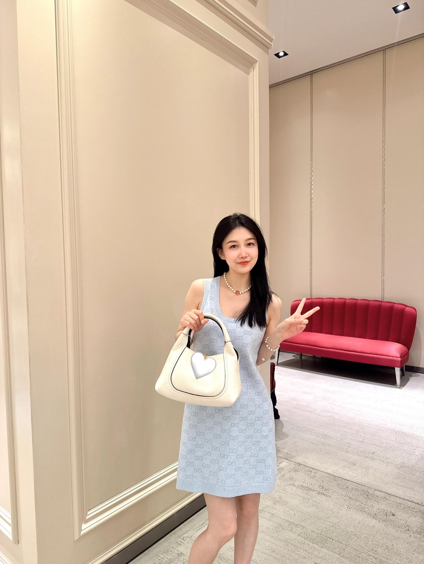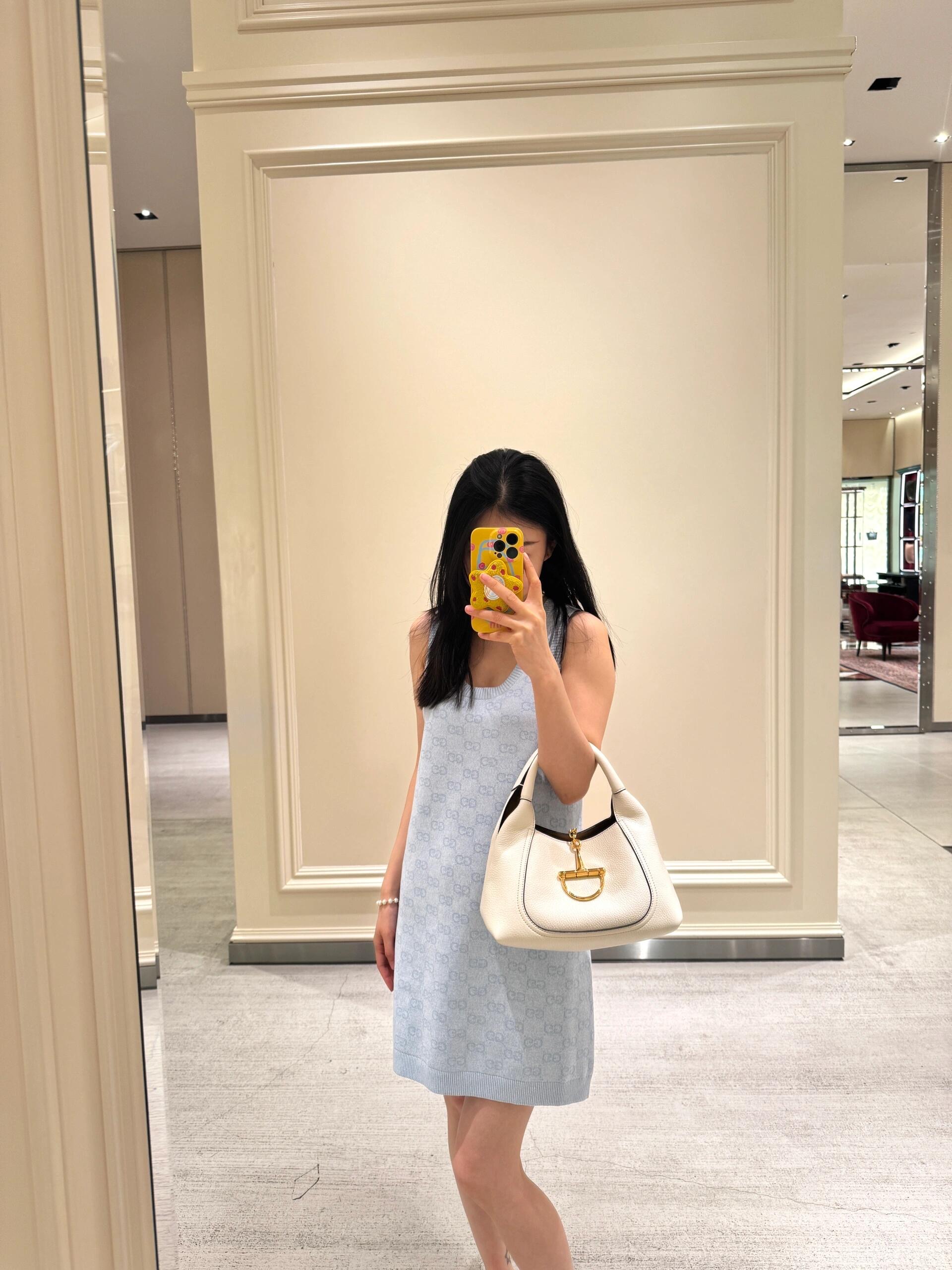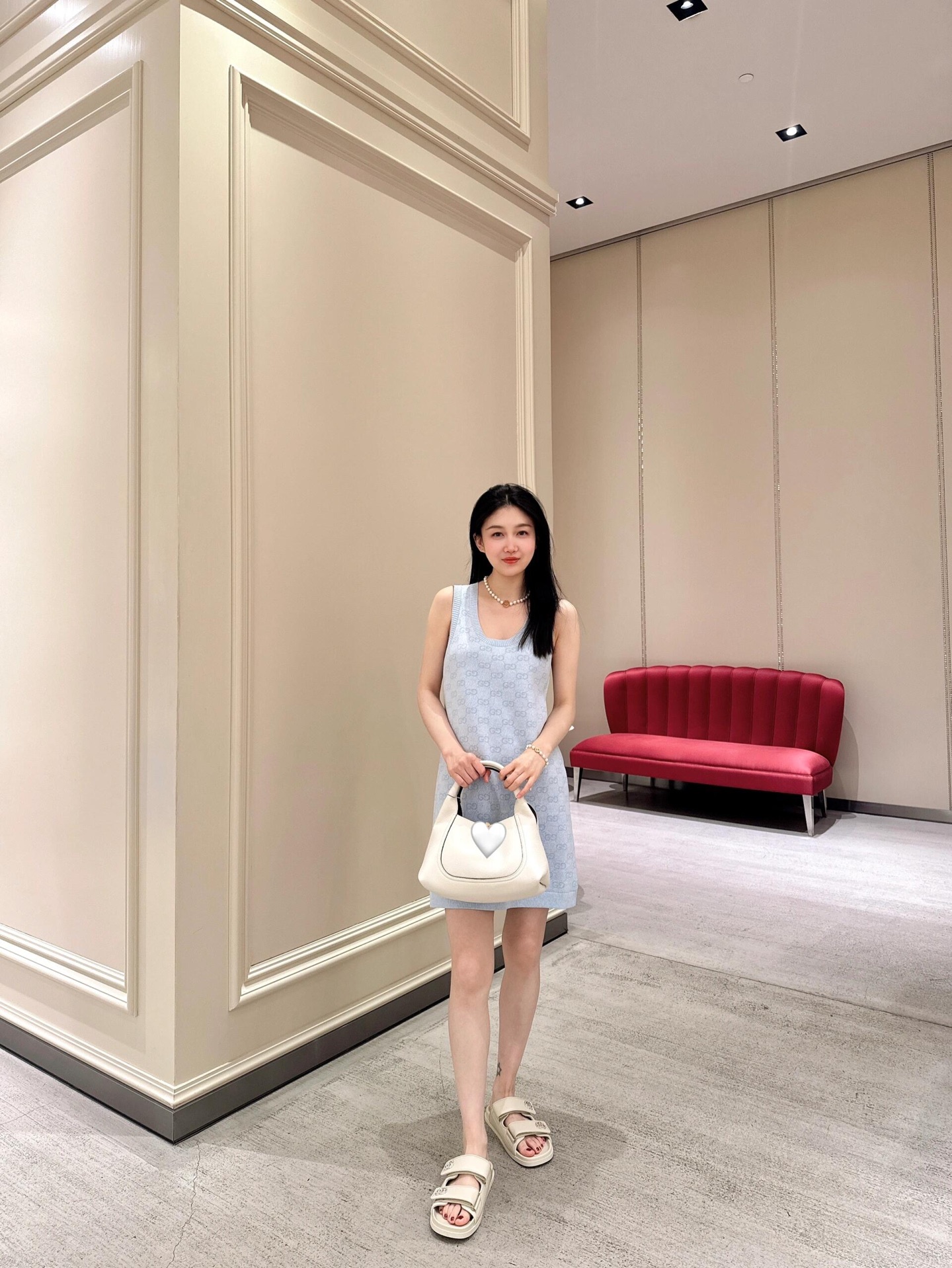 Introducing the epitome of subtle luxury, this Gucci sleeveless knit mini dress is designed for those who appreciate understated elegance. The dress features a delicate, all-over logo pattern that adds a touch of brand recognition without being overtly flashy. Perfect for both daytime outings and evening events, this dress is a versatile addition to any fashion-forward wardrobe.