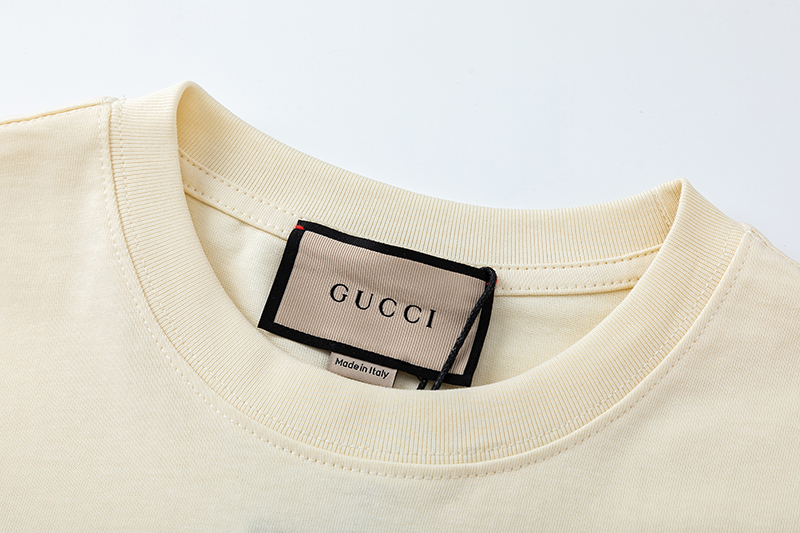 Elevate your style with this iconic Gucci T-shirt. Perfect for pairing with jeans, skirts, or shorts, this tee is a versatile addition to any fashion-forward wardrobe.
