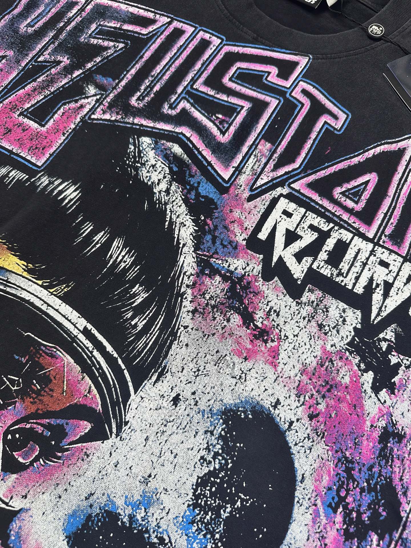 Hellstar Records Graphic Print Streetwear T-Shirt - Washed Black, Unisex Cotton Tee
