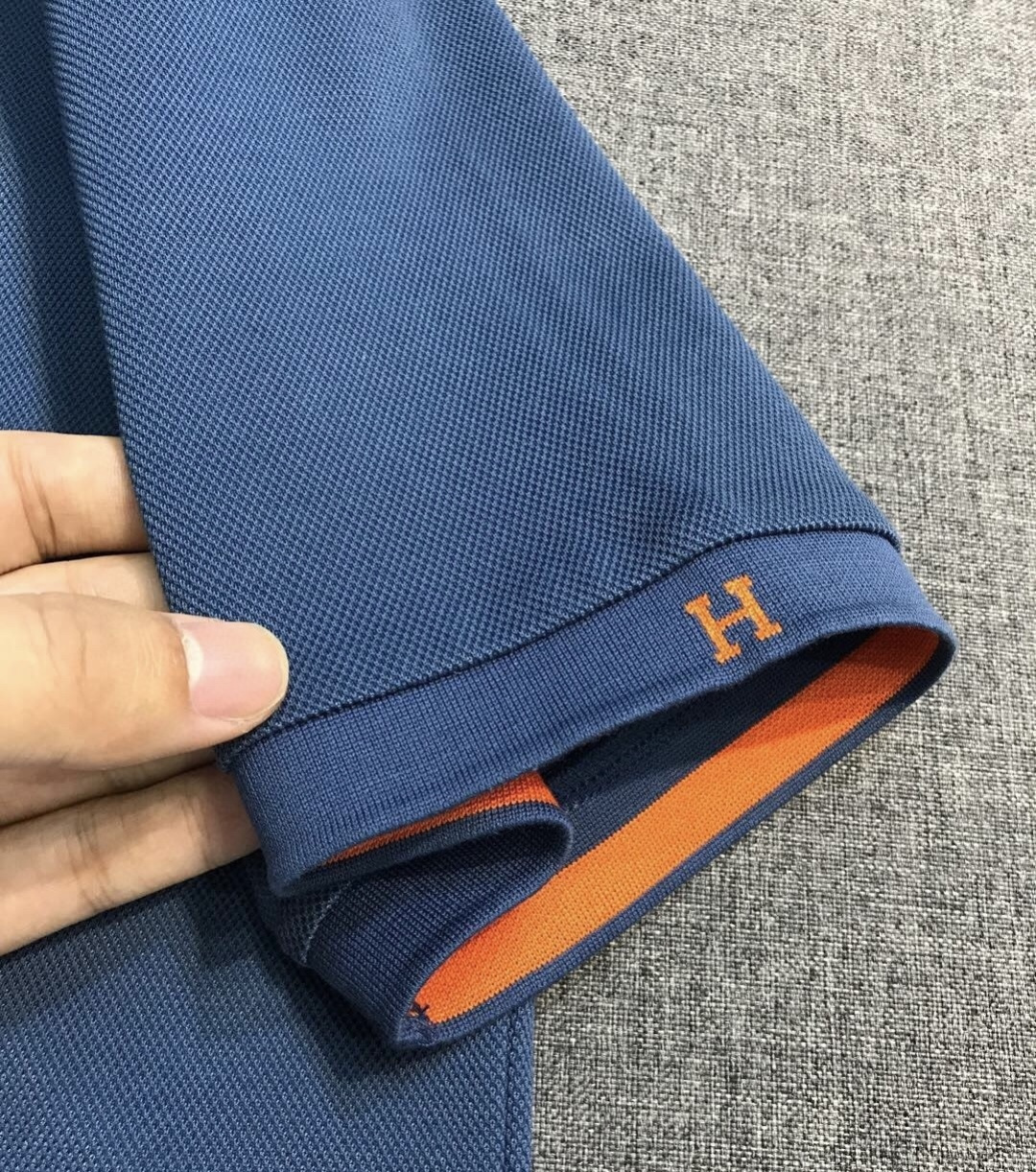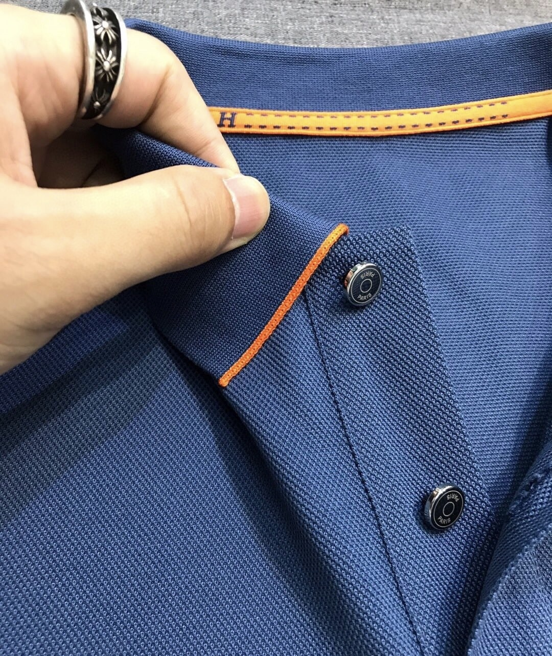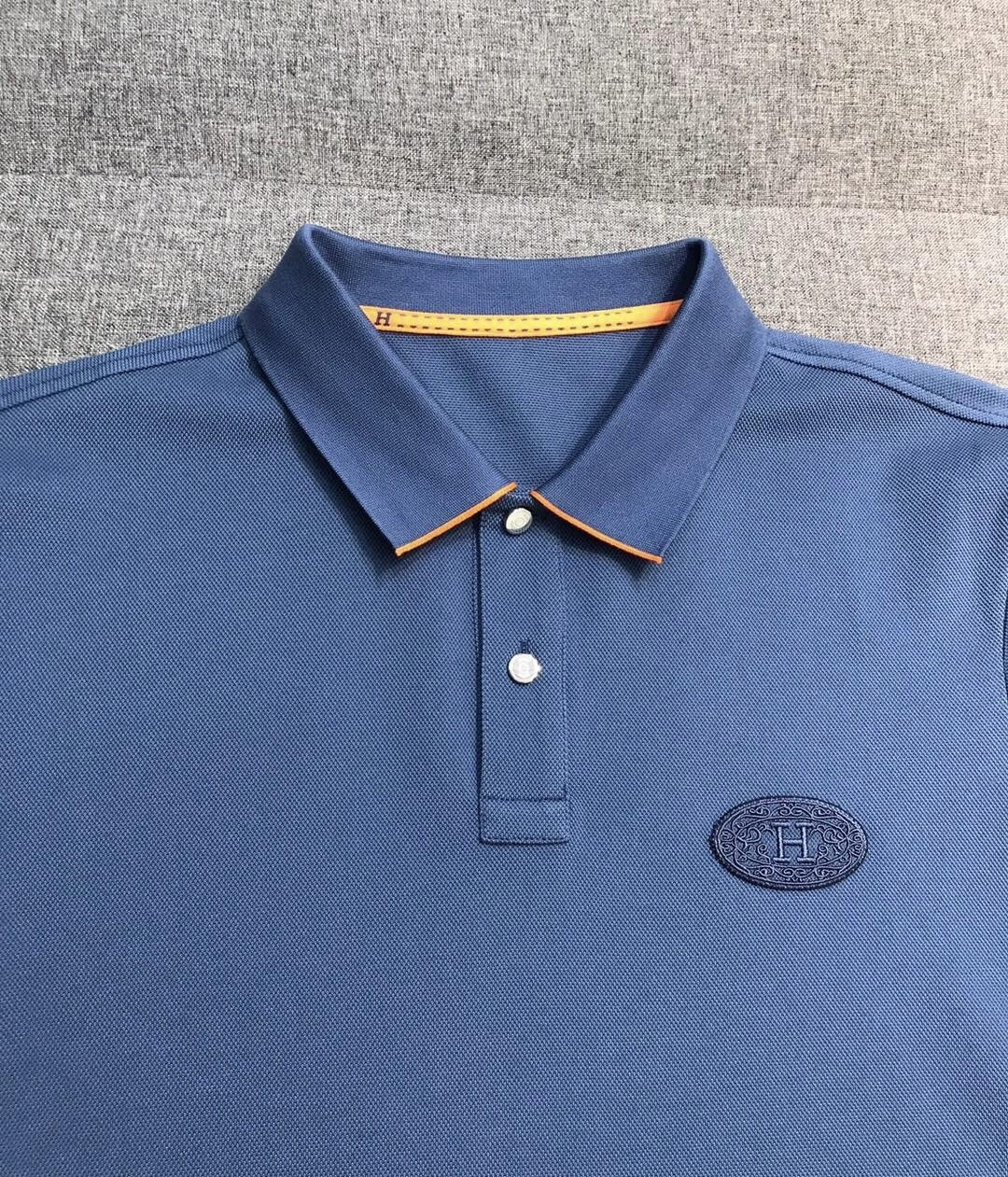 Hermes Men's Casual Short Sleeve Polo Shirt Luxury Pima Cotton Top