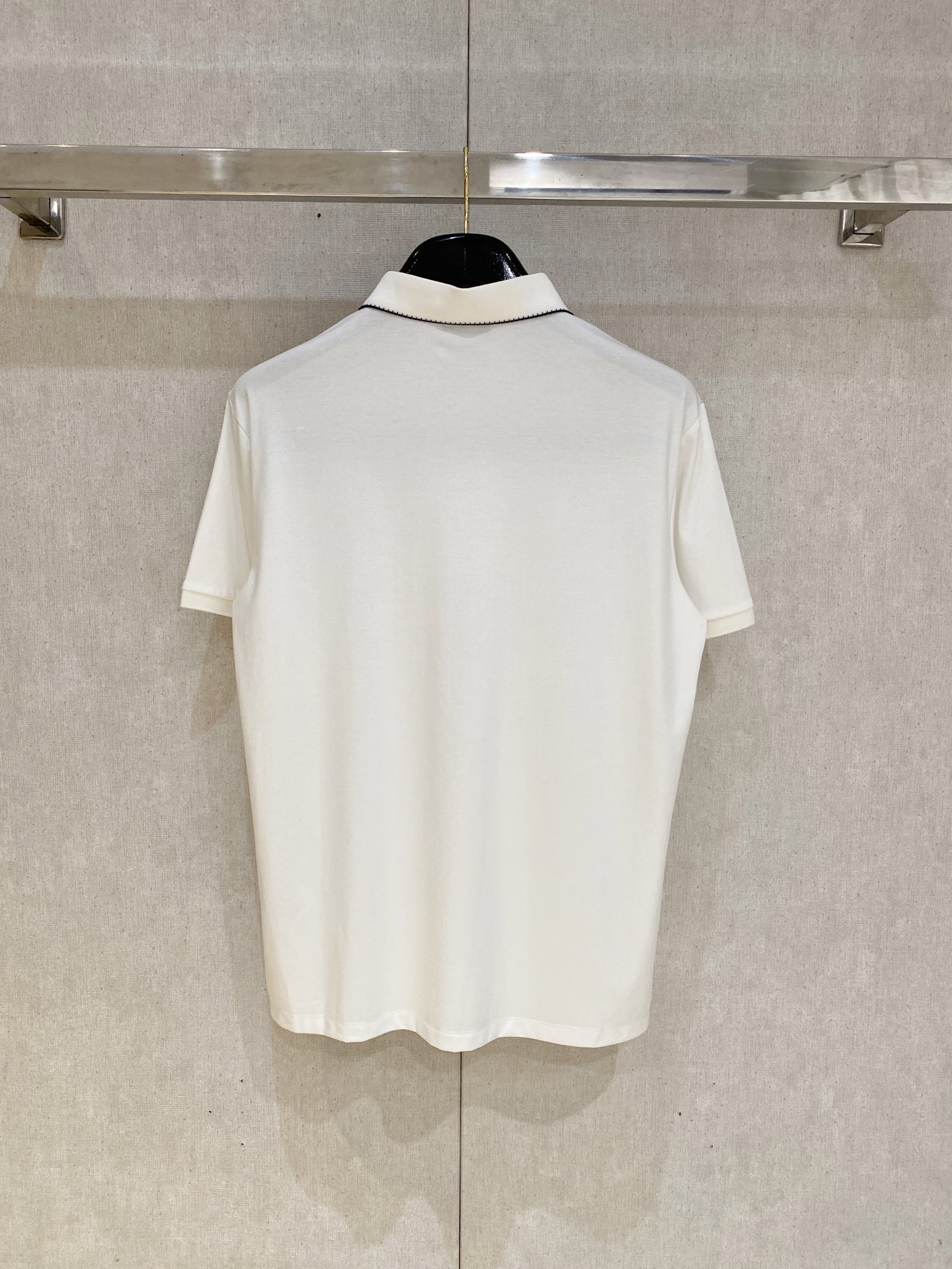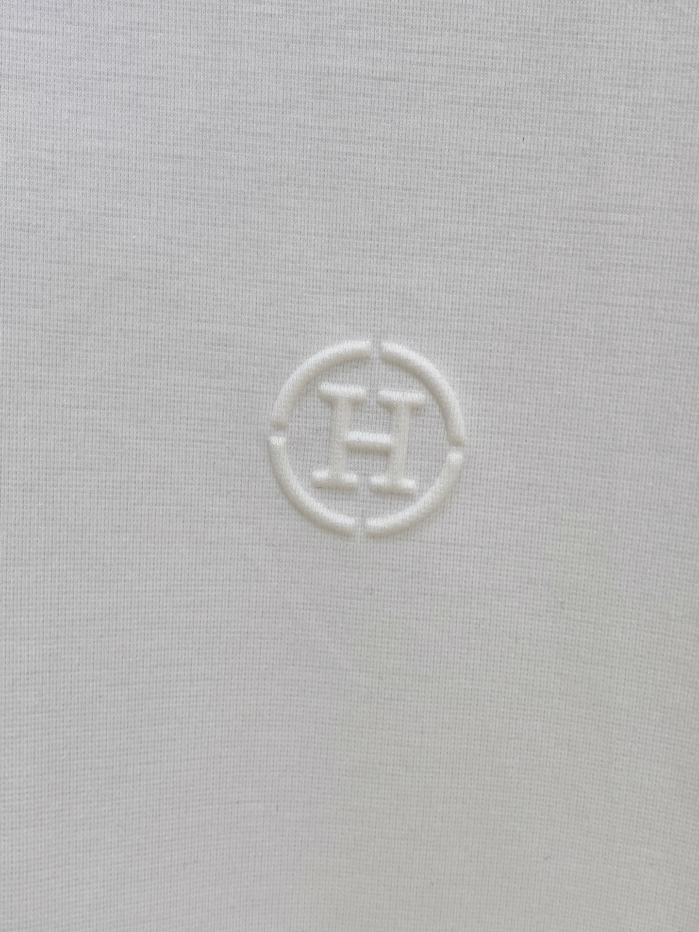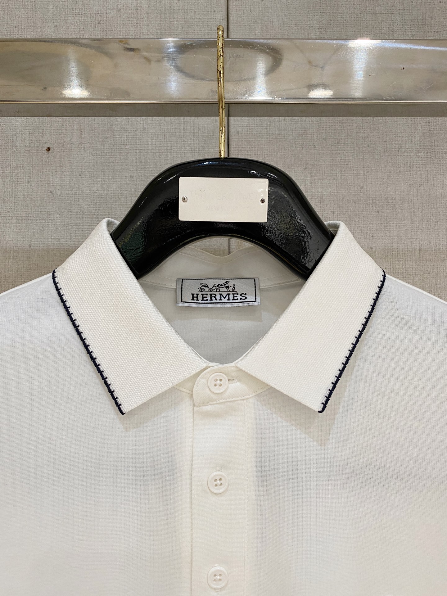 Hermes Men's White Polo Shirt With Logo Casual Short Sleeve Top