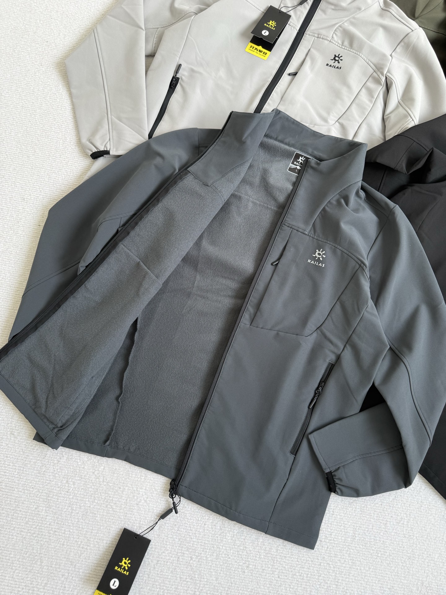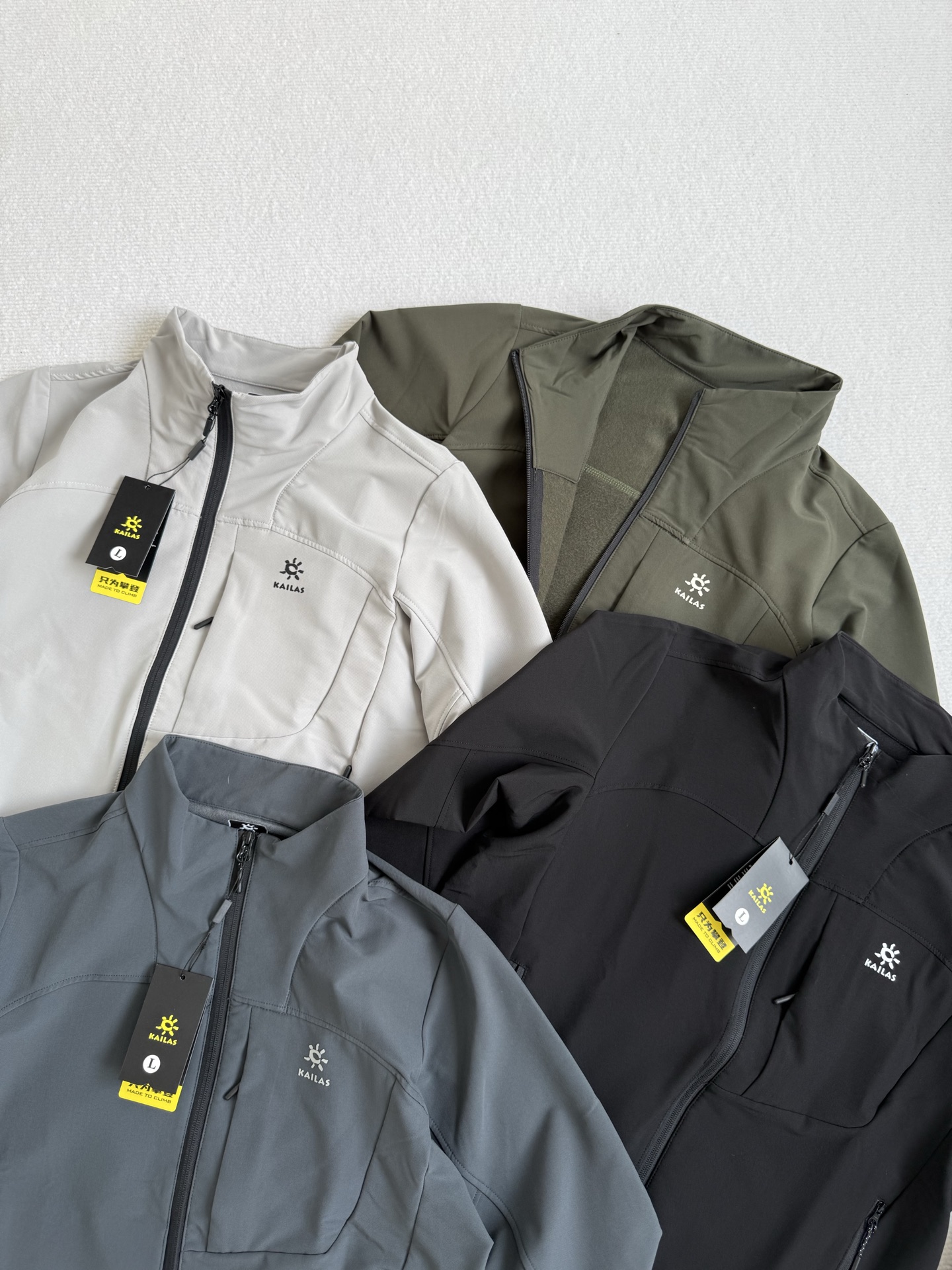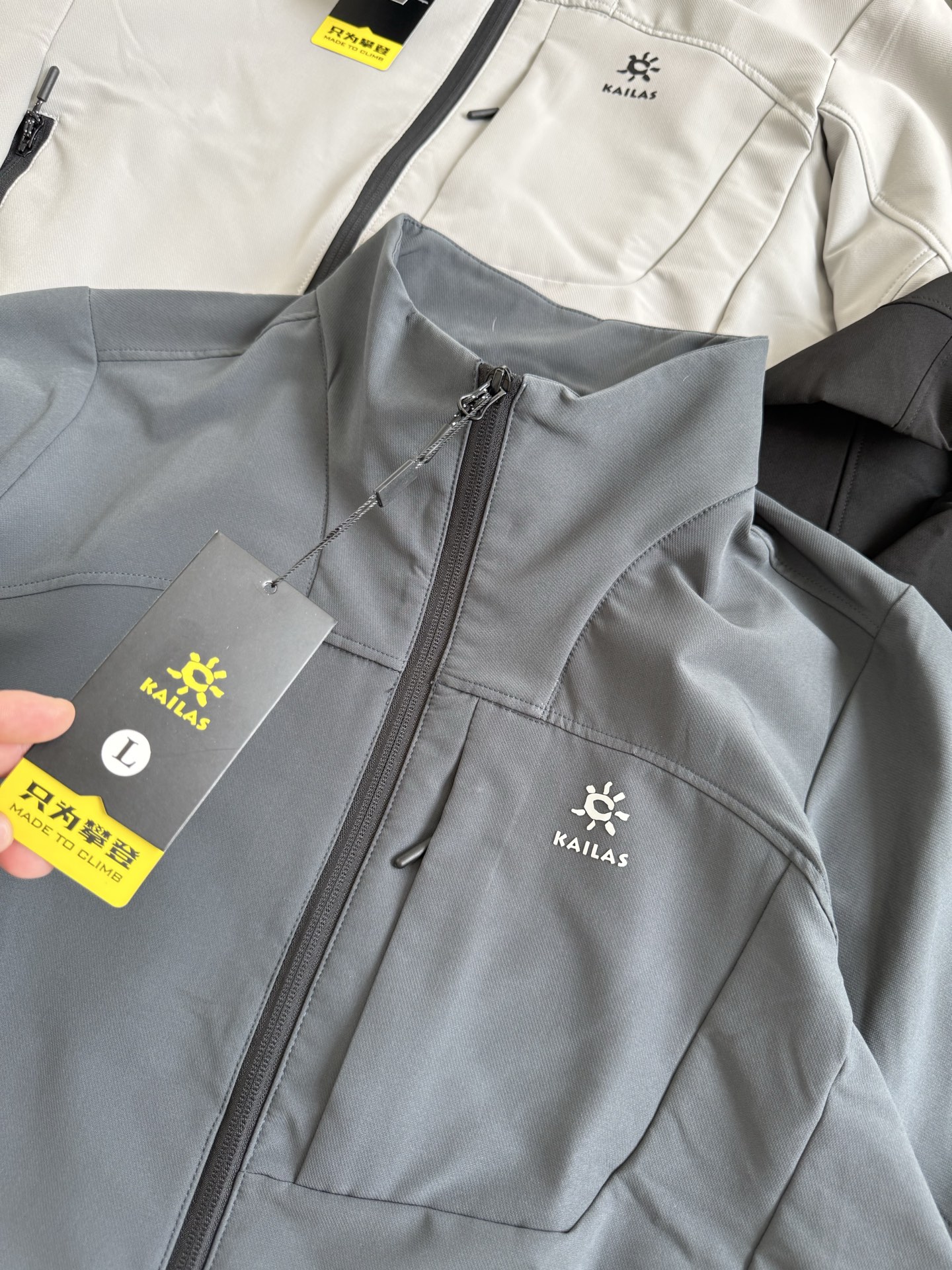 Stay protected and comfortable with this Kailas softshell jacket. Perfect for hiking, climbing, and everyday wear. Windproof, water-resistant, and stylish.