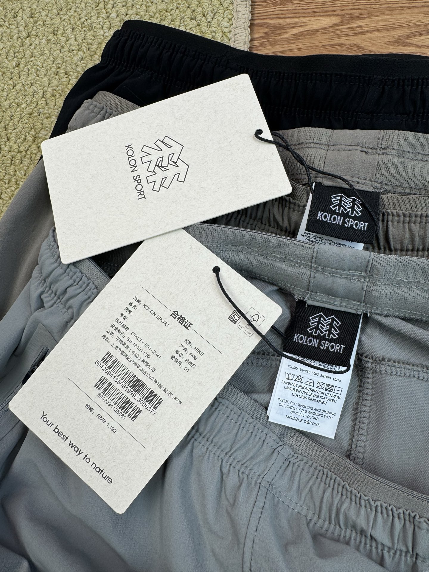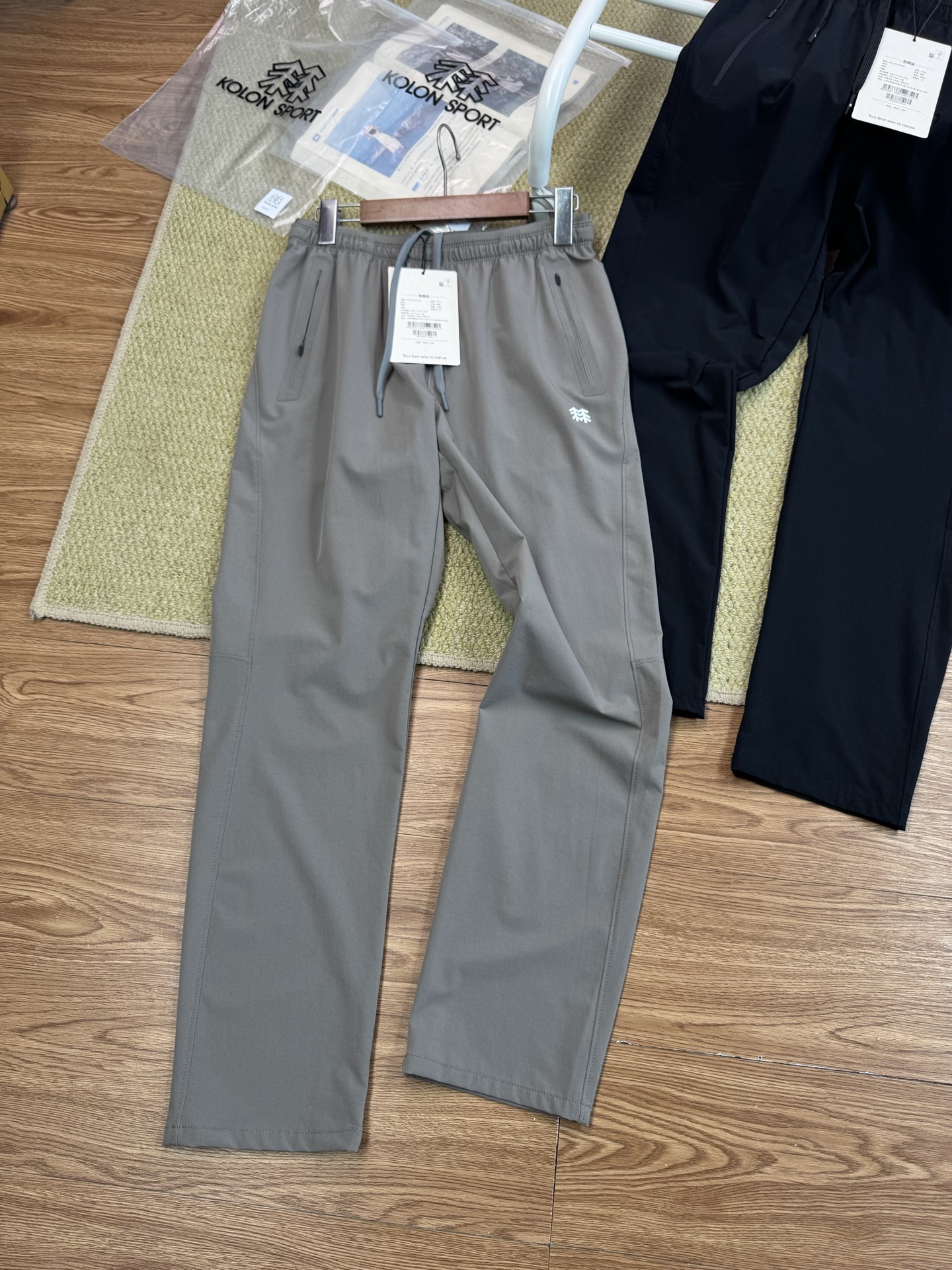 Experience ultimate comfort! KOLON SPORT hiking pants offer quick-dry, breathable fabric, elastic waist, & zippered pockets for outdoor adventures.