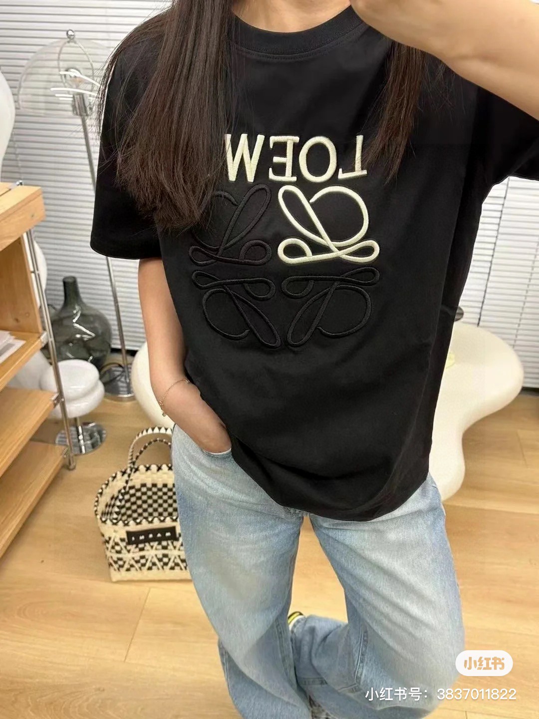Loewe 25SS Classic Embroidered T-Shirt Short Sleeve - Black and White