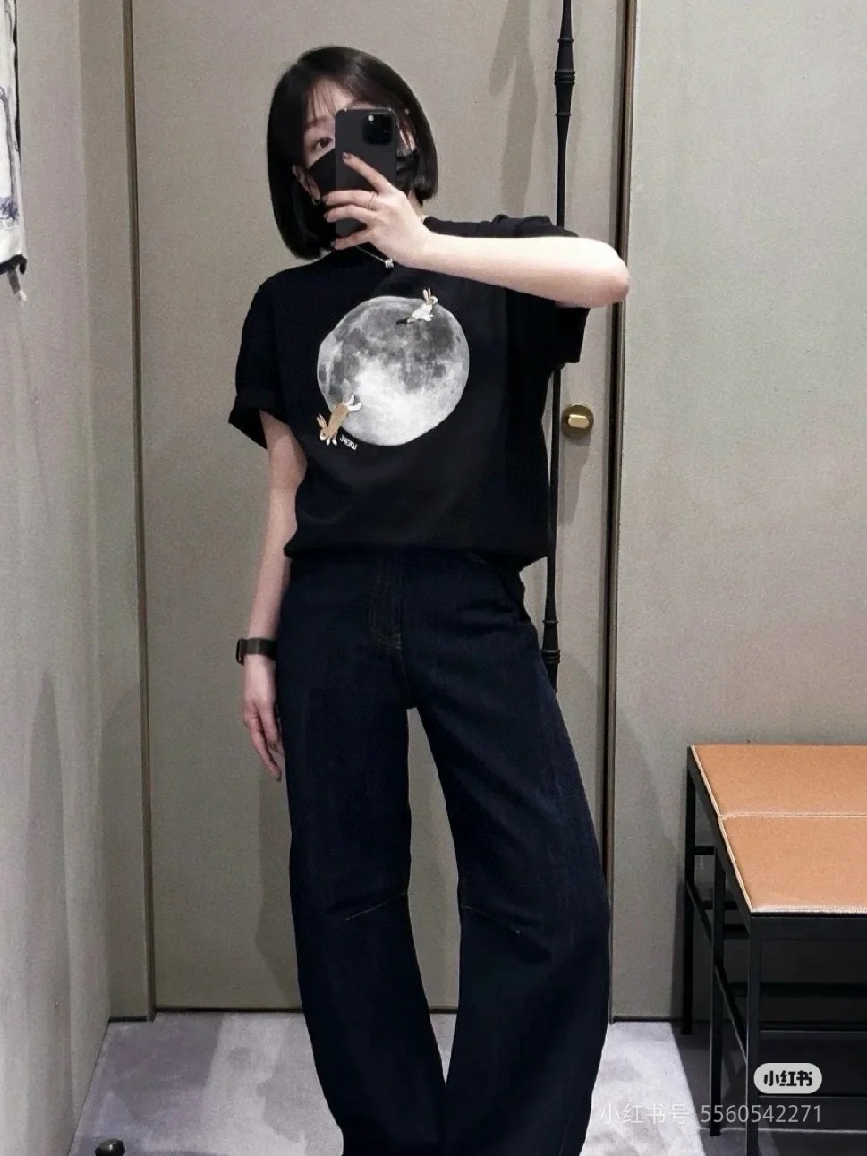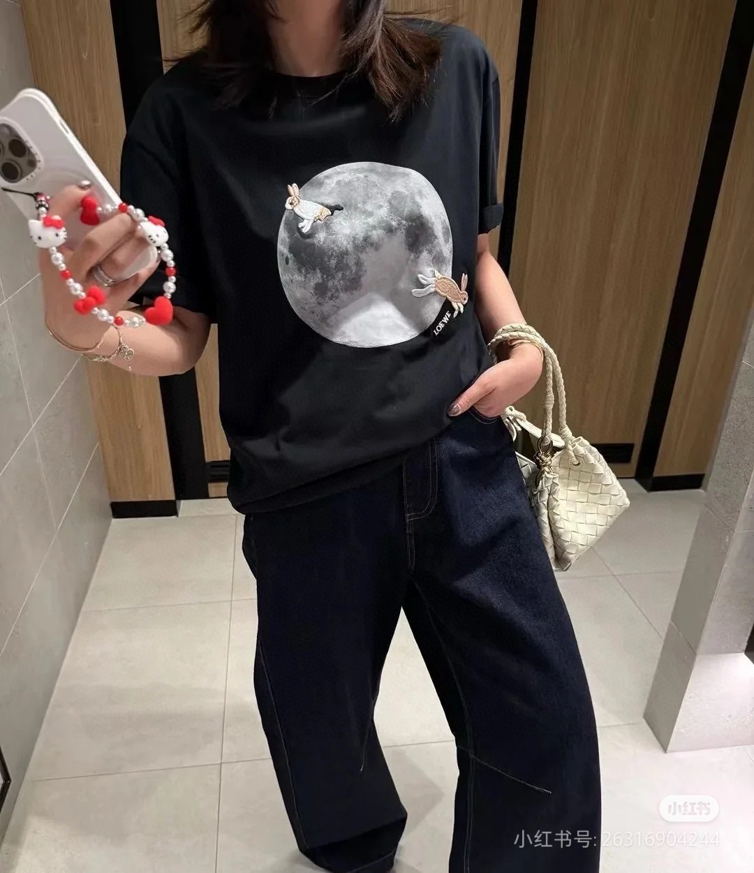 This Loewe T-shirt features a unique moon print with embroidered logo, offering a blend of comfort and high-end style. Made with premium Xinjiang long-staple cotton, this tee ensures a soft and breathable experience.