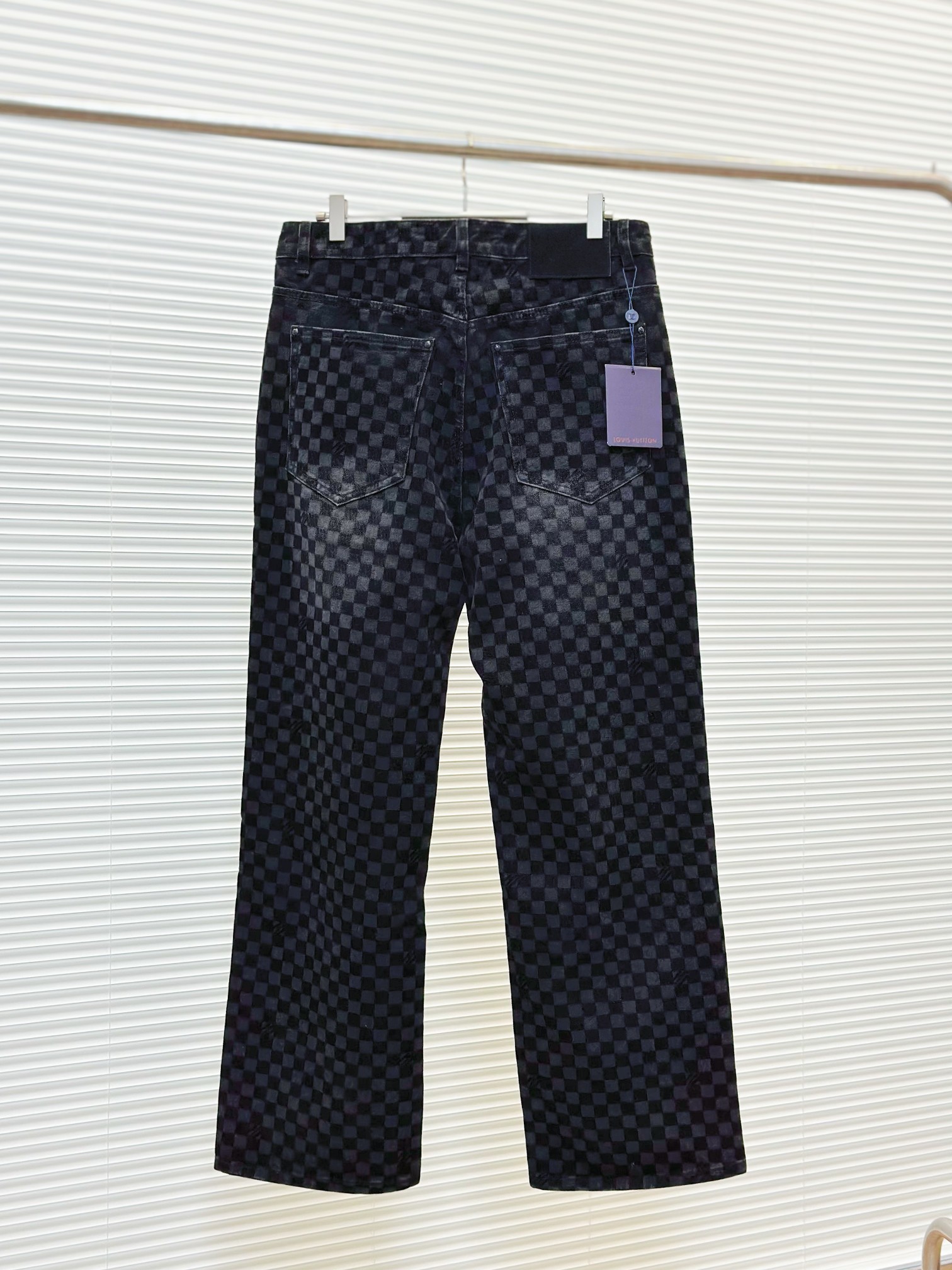 Louis Vuitton 2025 Checkered Flocked Denim Pants - Stylish and Comfortable