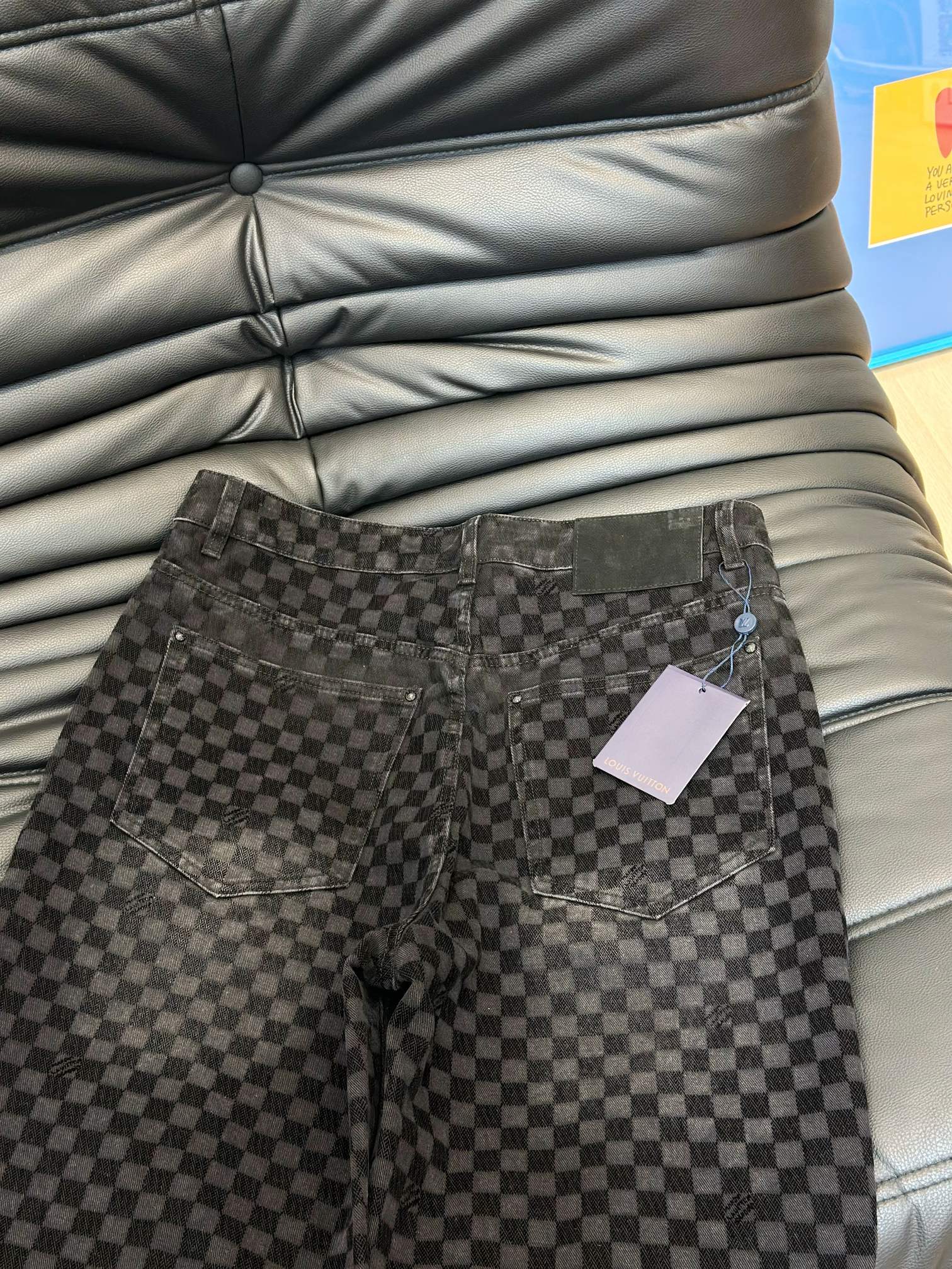 Elevate your style with these LV checkered denim pants. Soft, comfortable, and designed for a fashionable look. Available in multiple sizes.