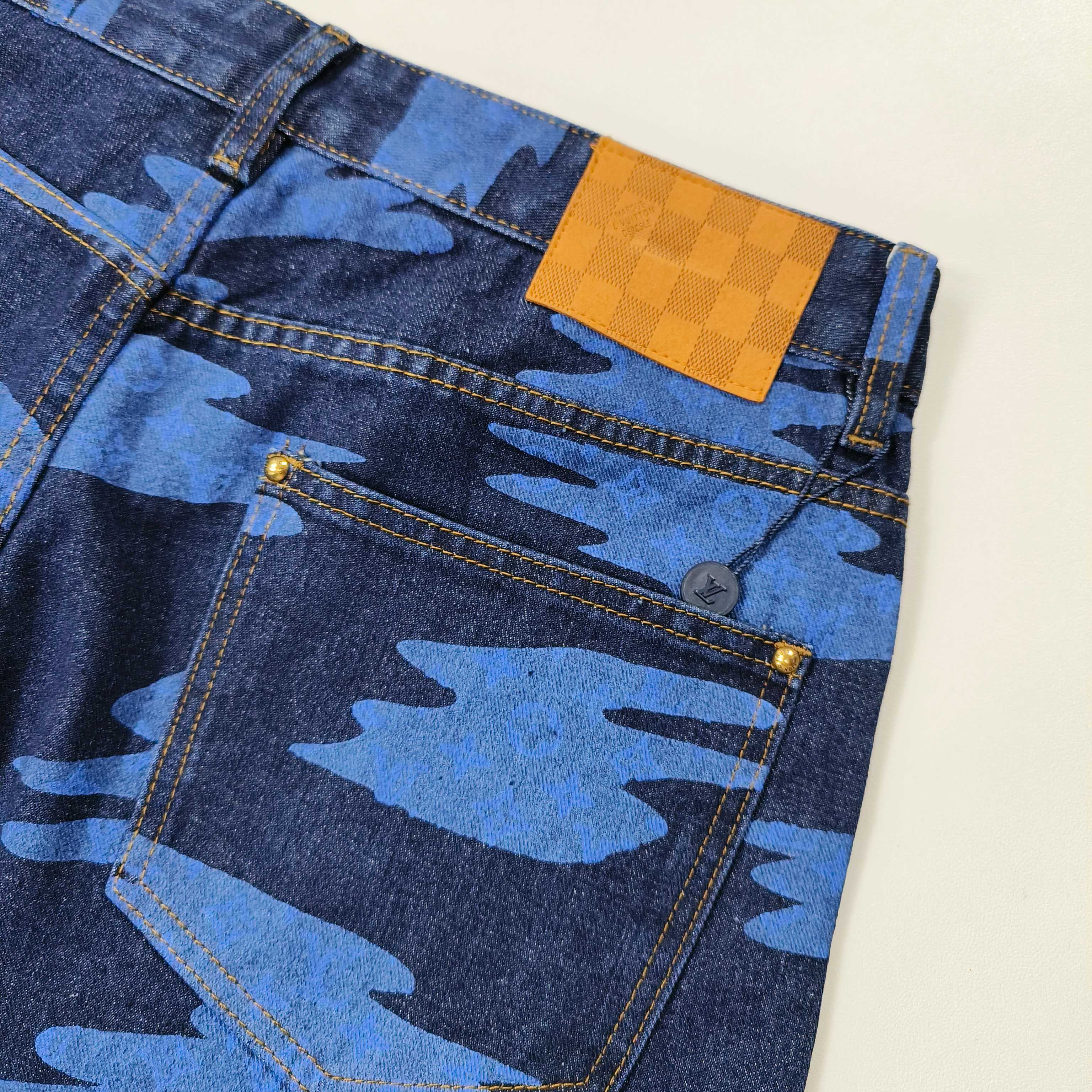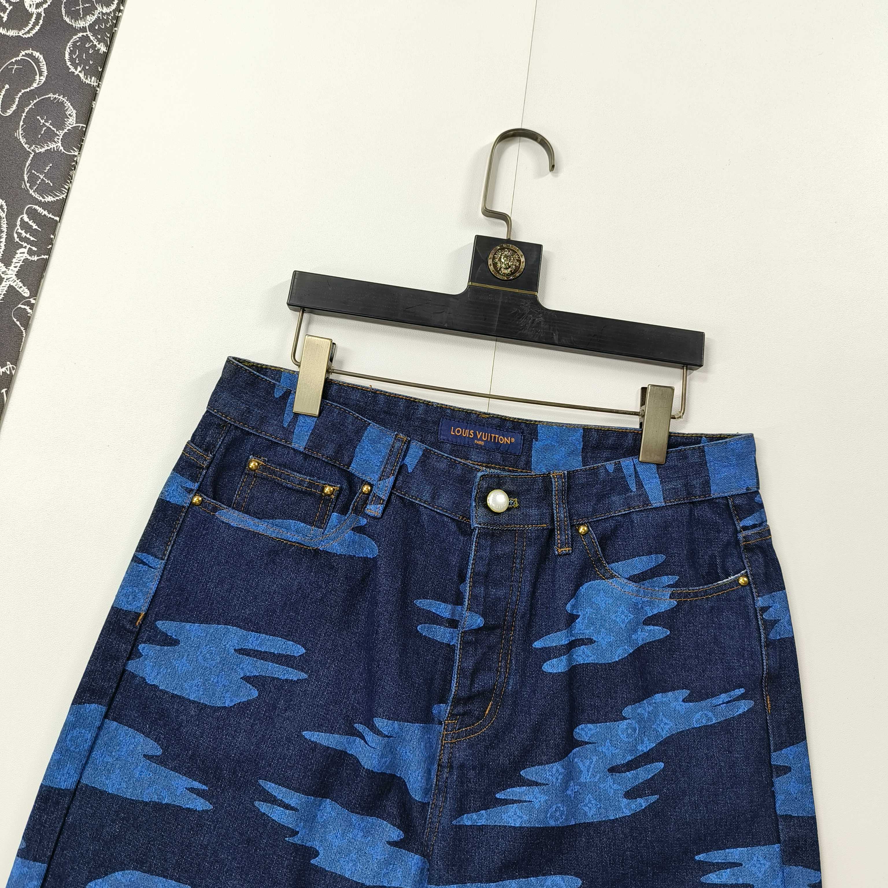 Elevate your style with these Louis Vuitton denim shorts. Featuring a unique print, premium denim, and sizes S-XL. Perfect for summer!