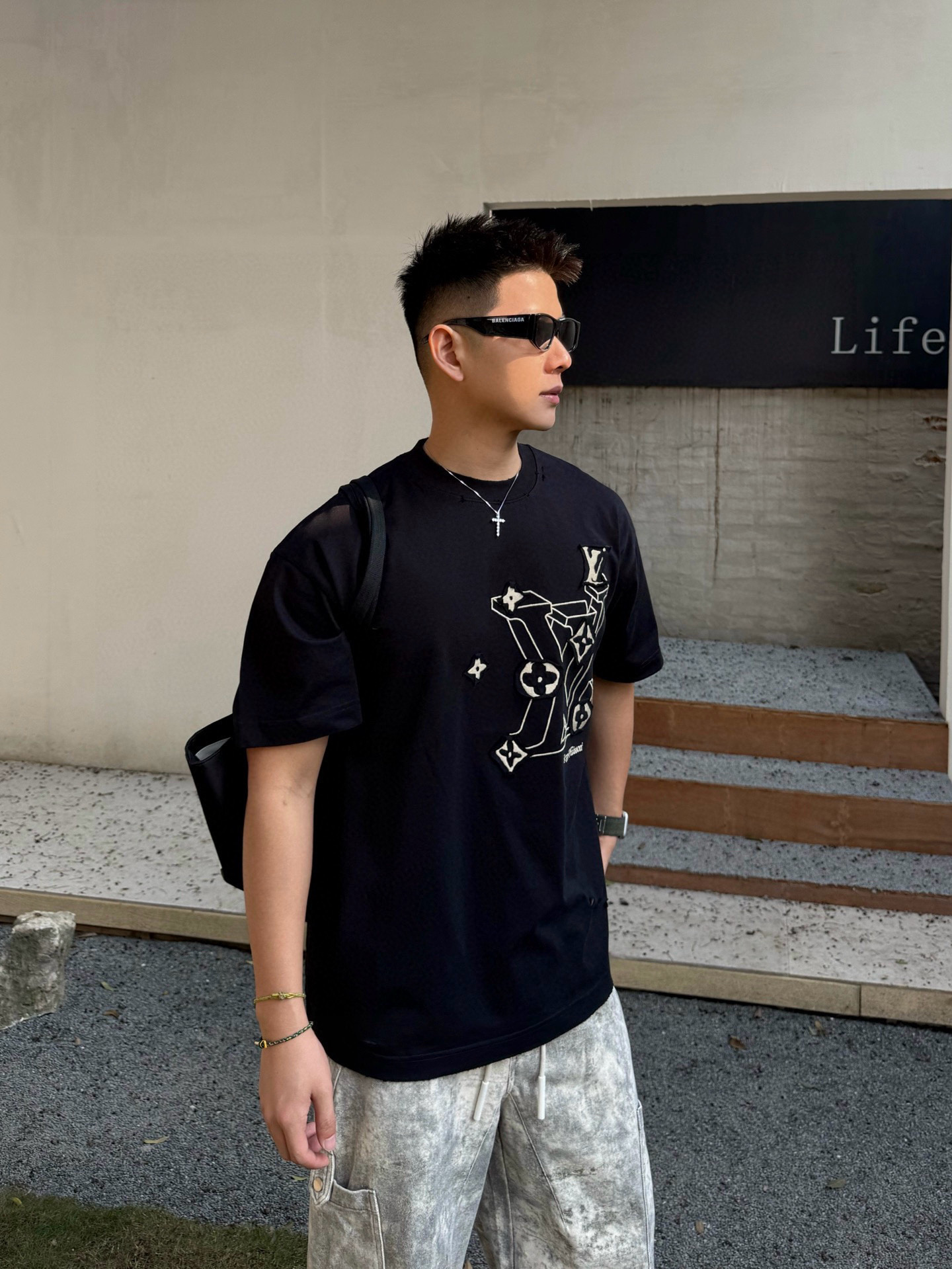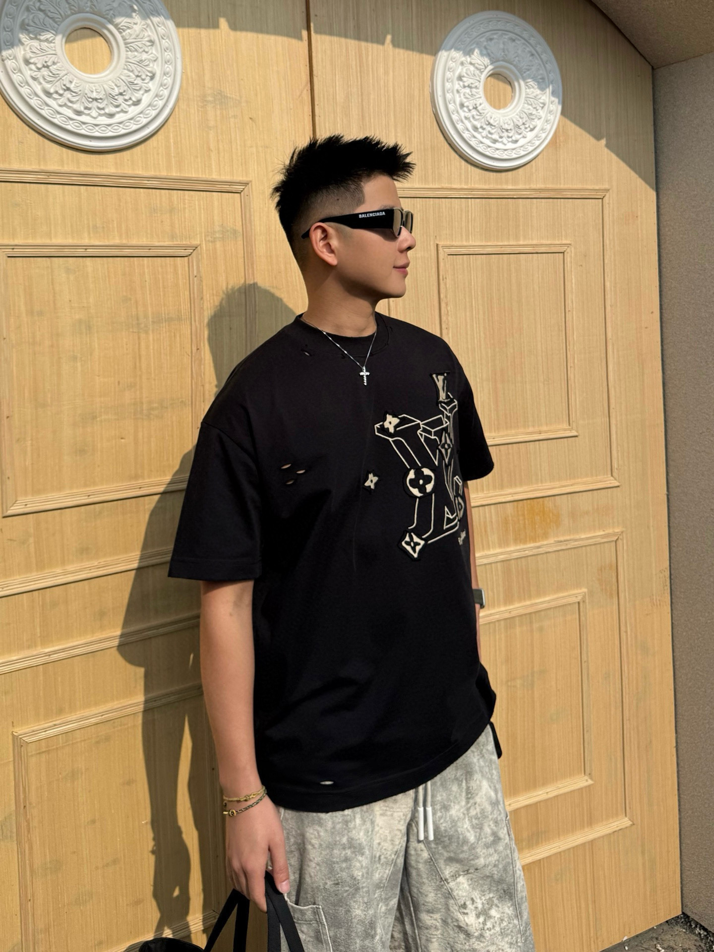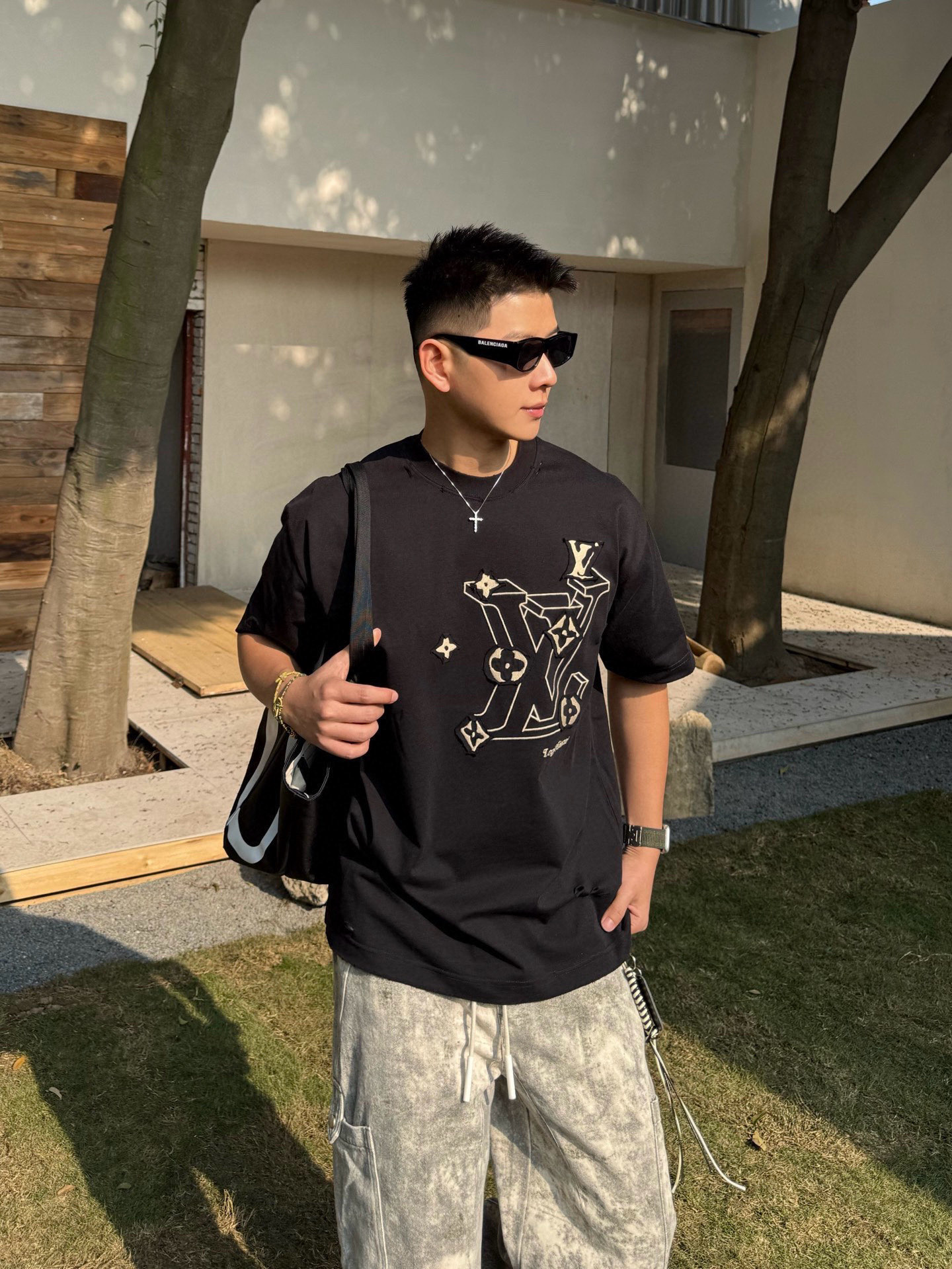 This Louis Vuitton 2025SS T-shirt combines quality craftsmanship with high-end design. Perfect for couples, this tee features unique applique and embroidery. The custom fabric and detailed construction ensure both comfort and style.