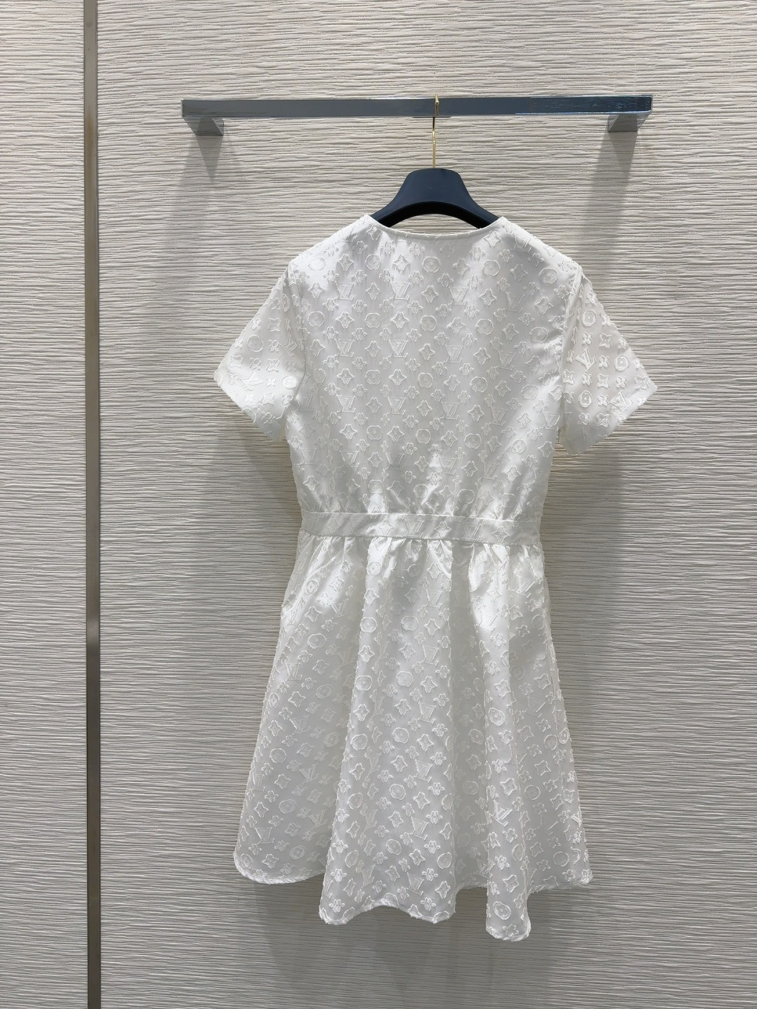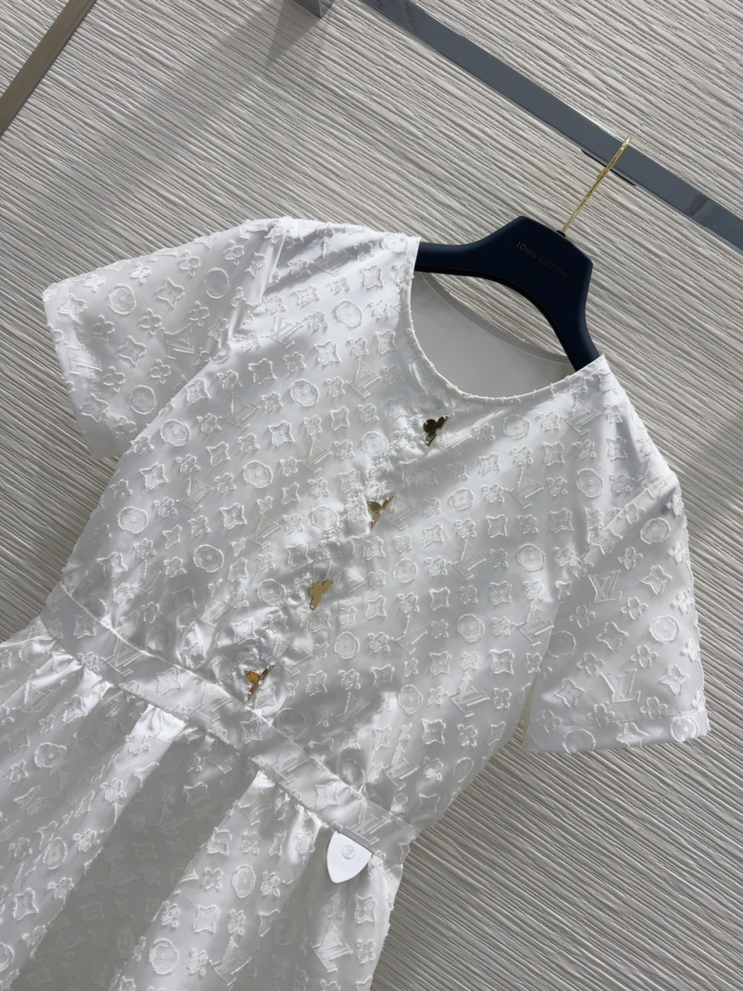 Louis Vuitton 2025SS White Jacquard Mini Dress with Gold Button Accents