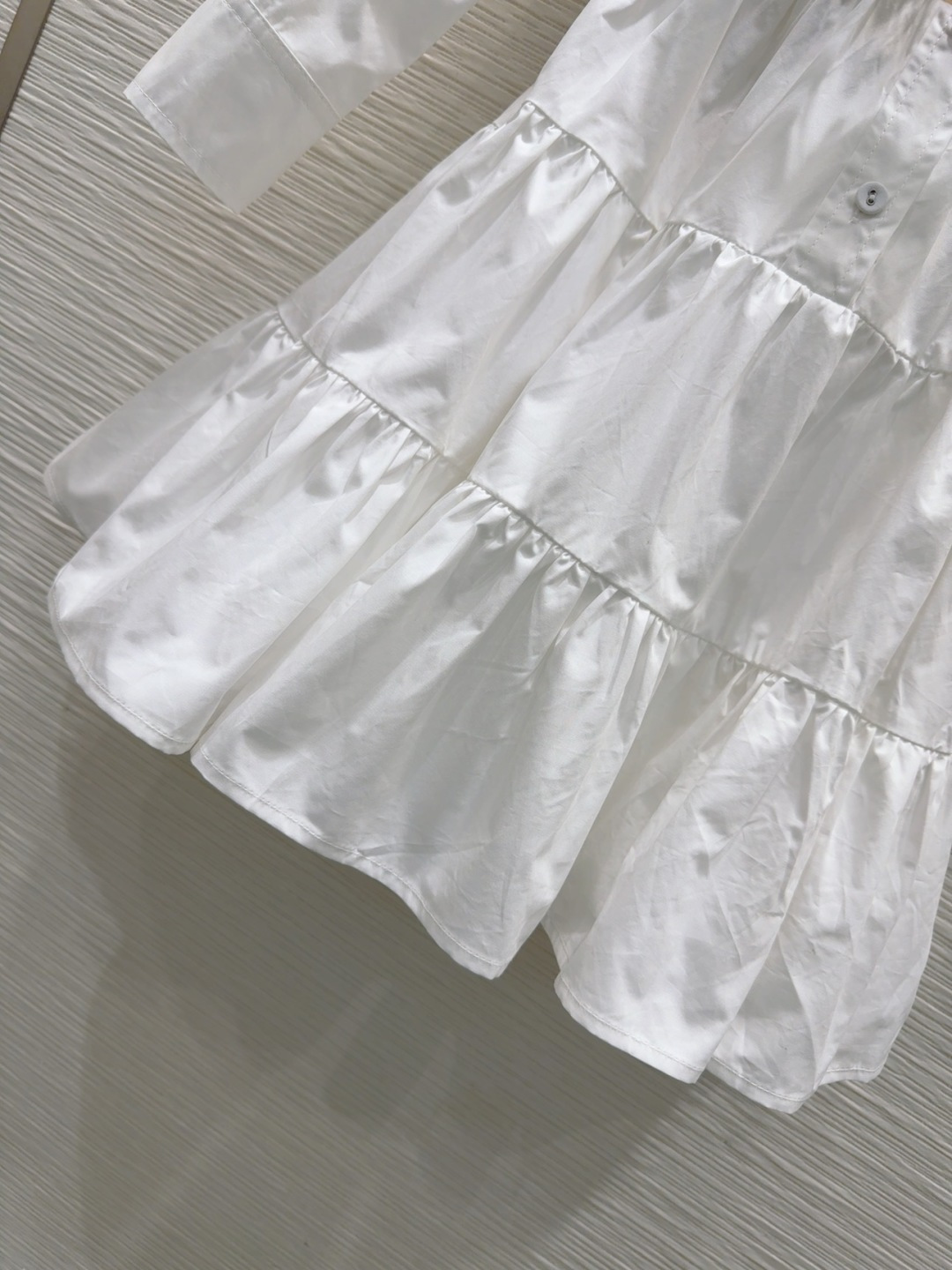 This Louis Vuitton 2025SS white tiered shirt dress is a versatile and stylish addition to any wardrobe. Crafted with attention to detail, this dress combines a classic design with modern flair.