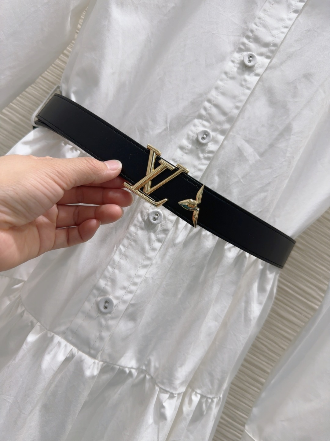 Louis Vuitton 2025SS White Tiered Shirt Dress with Belt - Classic & Chic