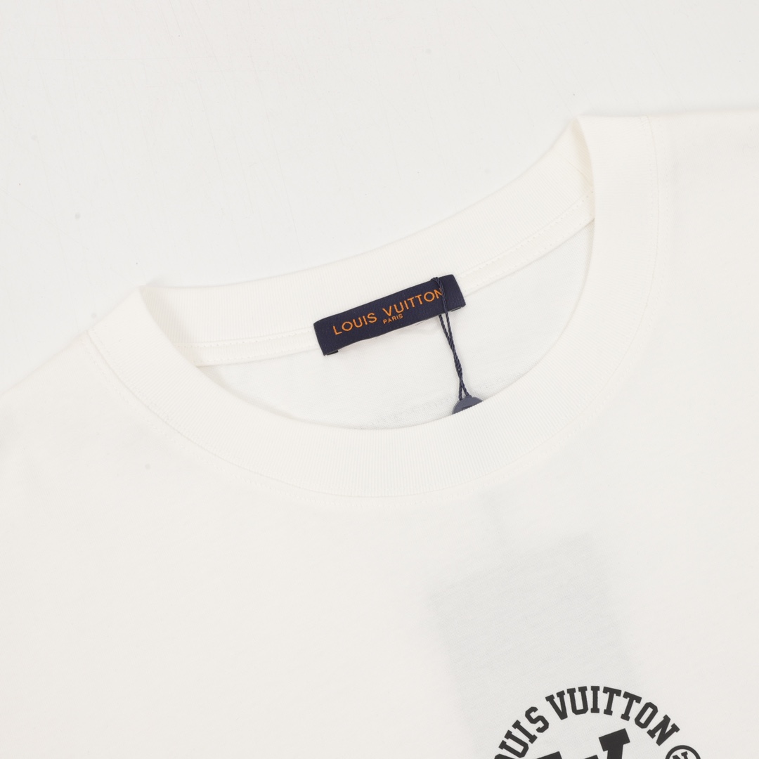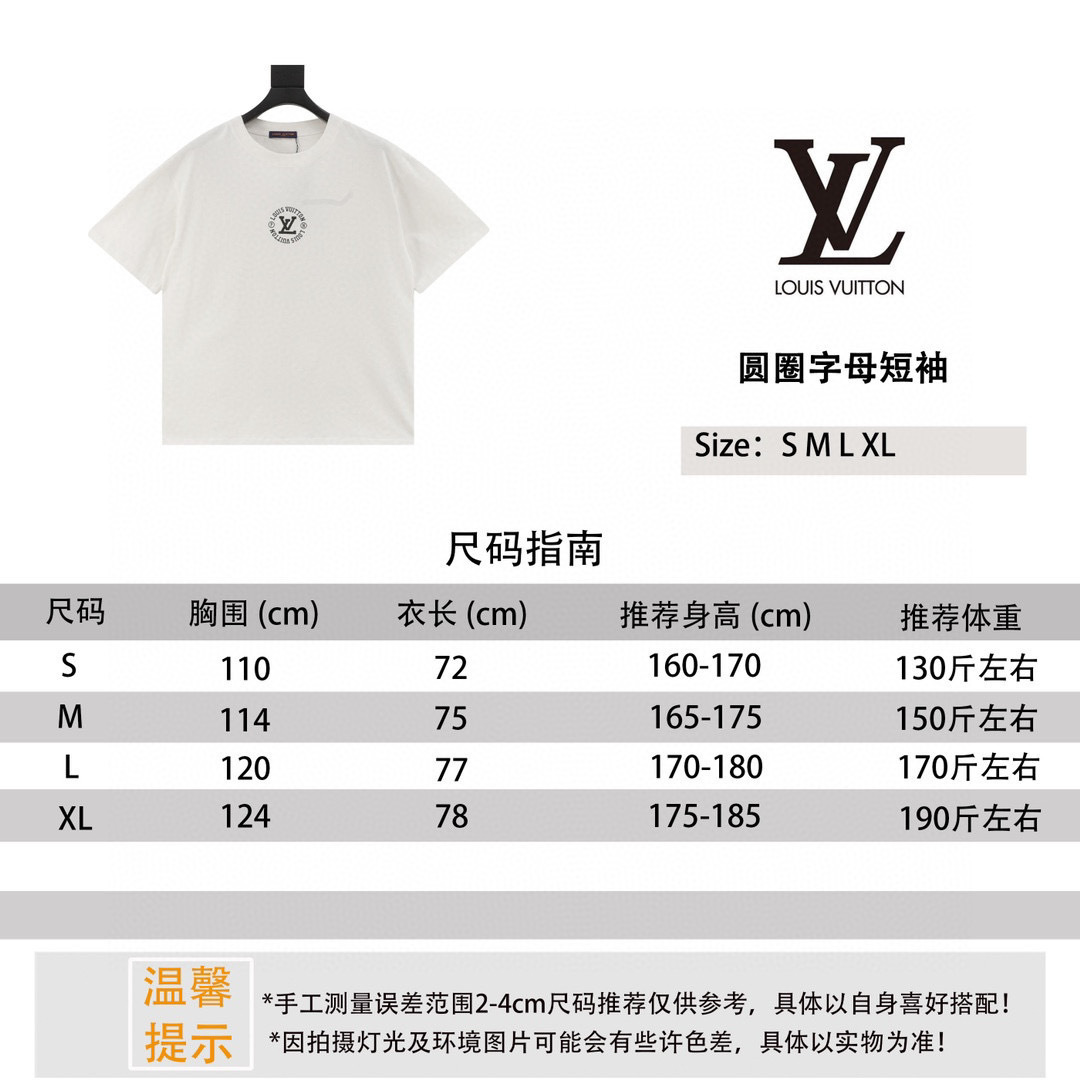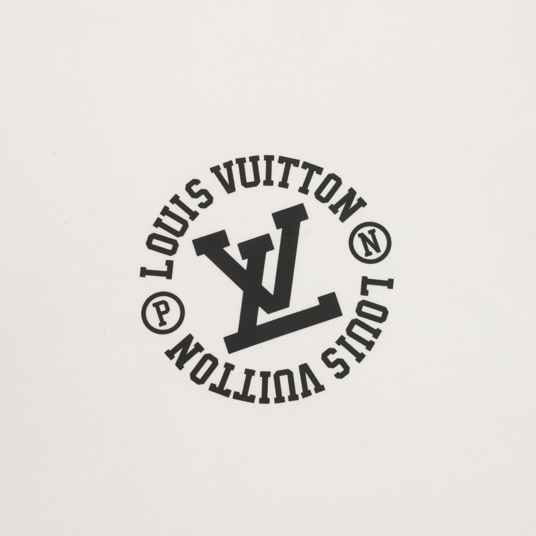High-quality Louis Vuitton 25SS T-shirt with circle logo. Made with custom 240g cotton fabric. Available in sizes S-XL.
