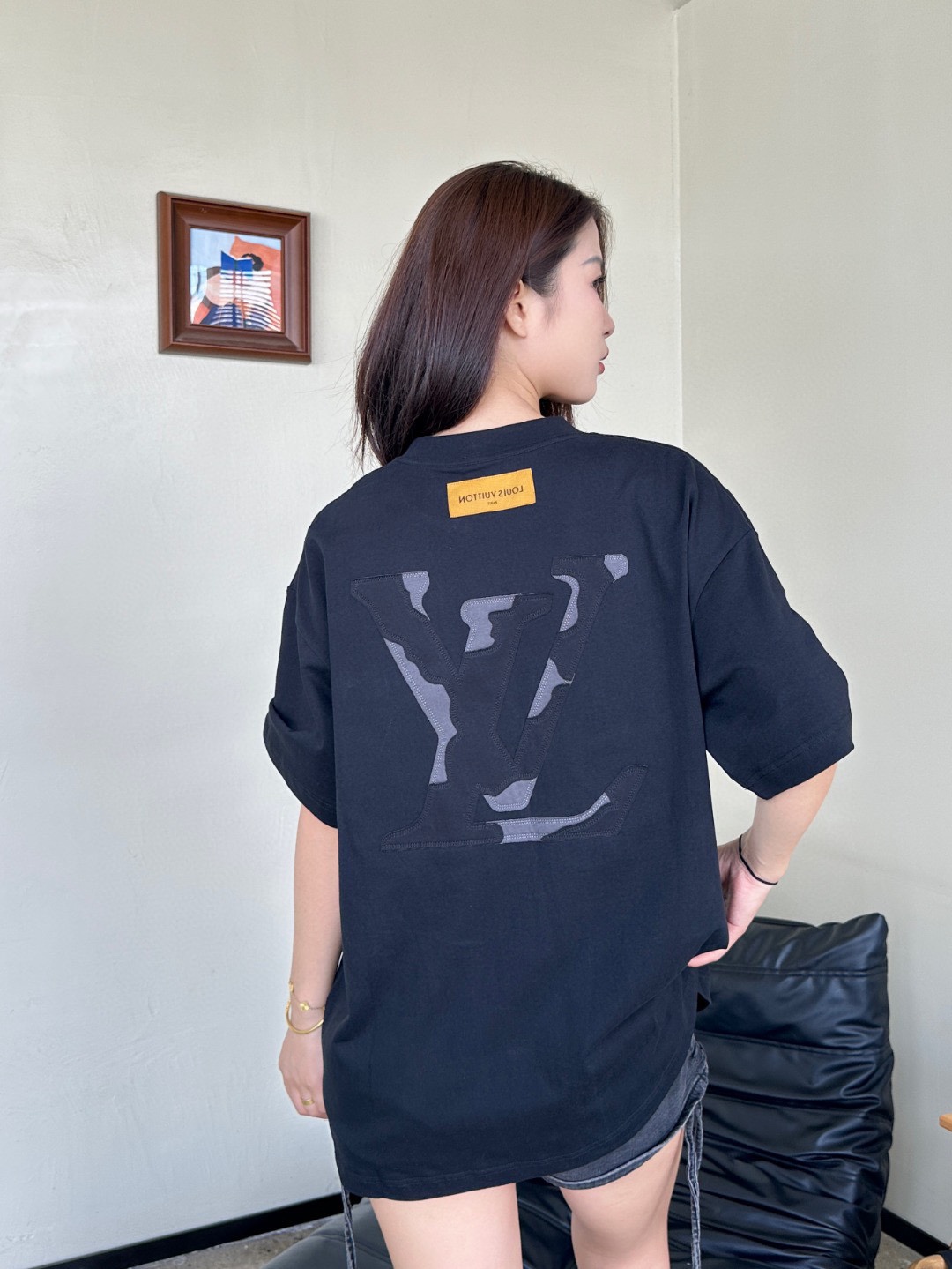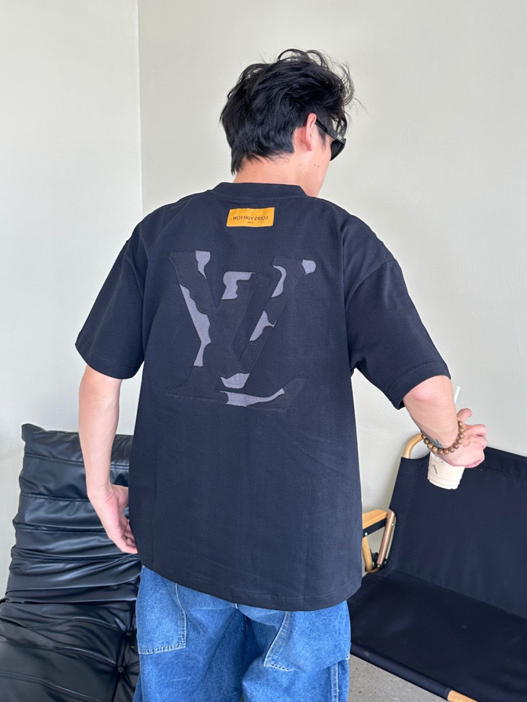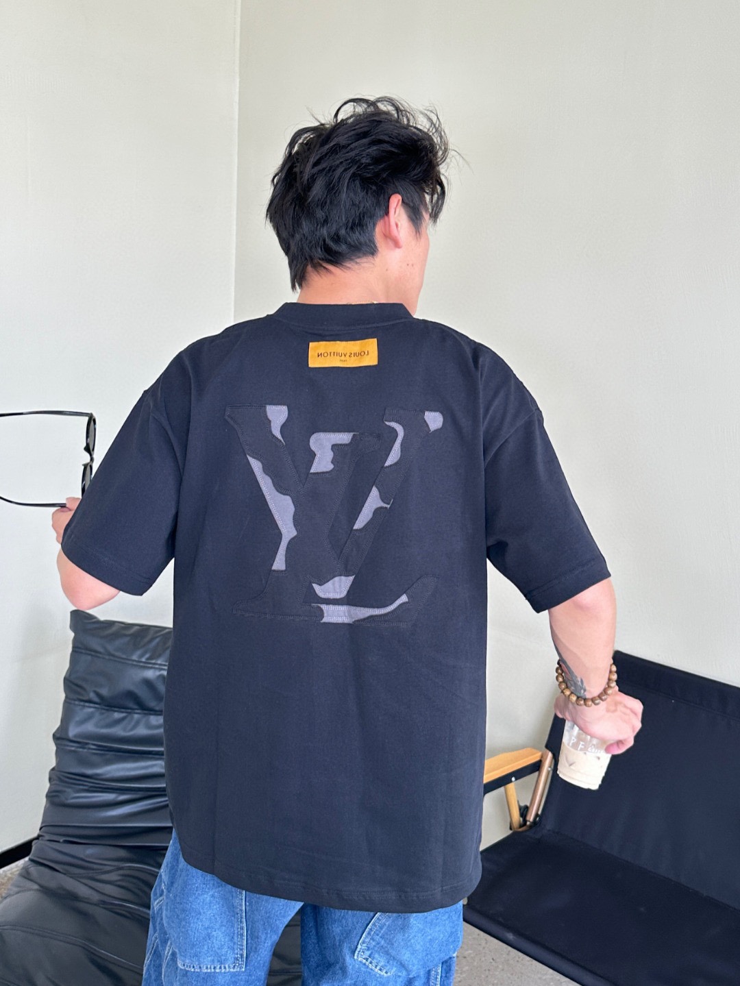 Louis Vuitton 25SS Embroidered Logo Black T-Shirt, Heavy Cut, Stylish and Comfortable