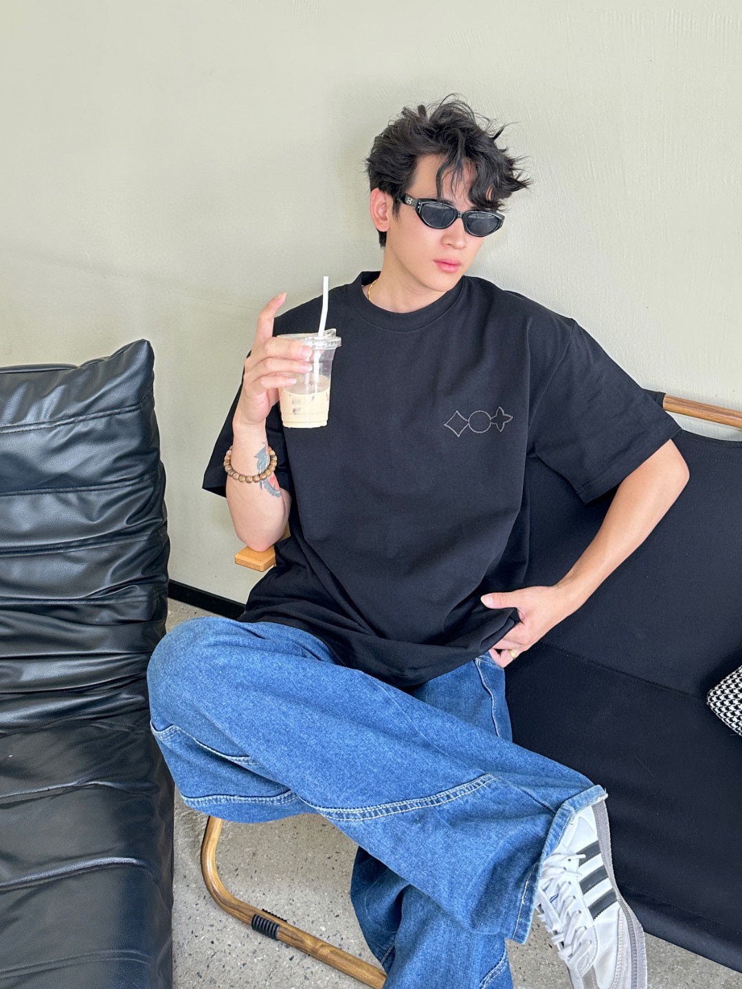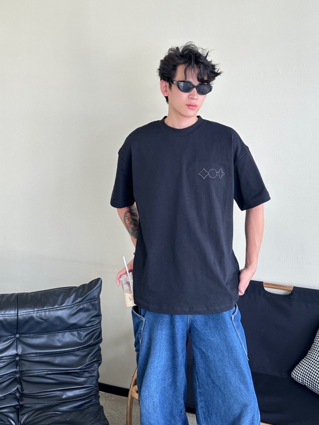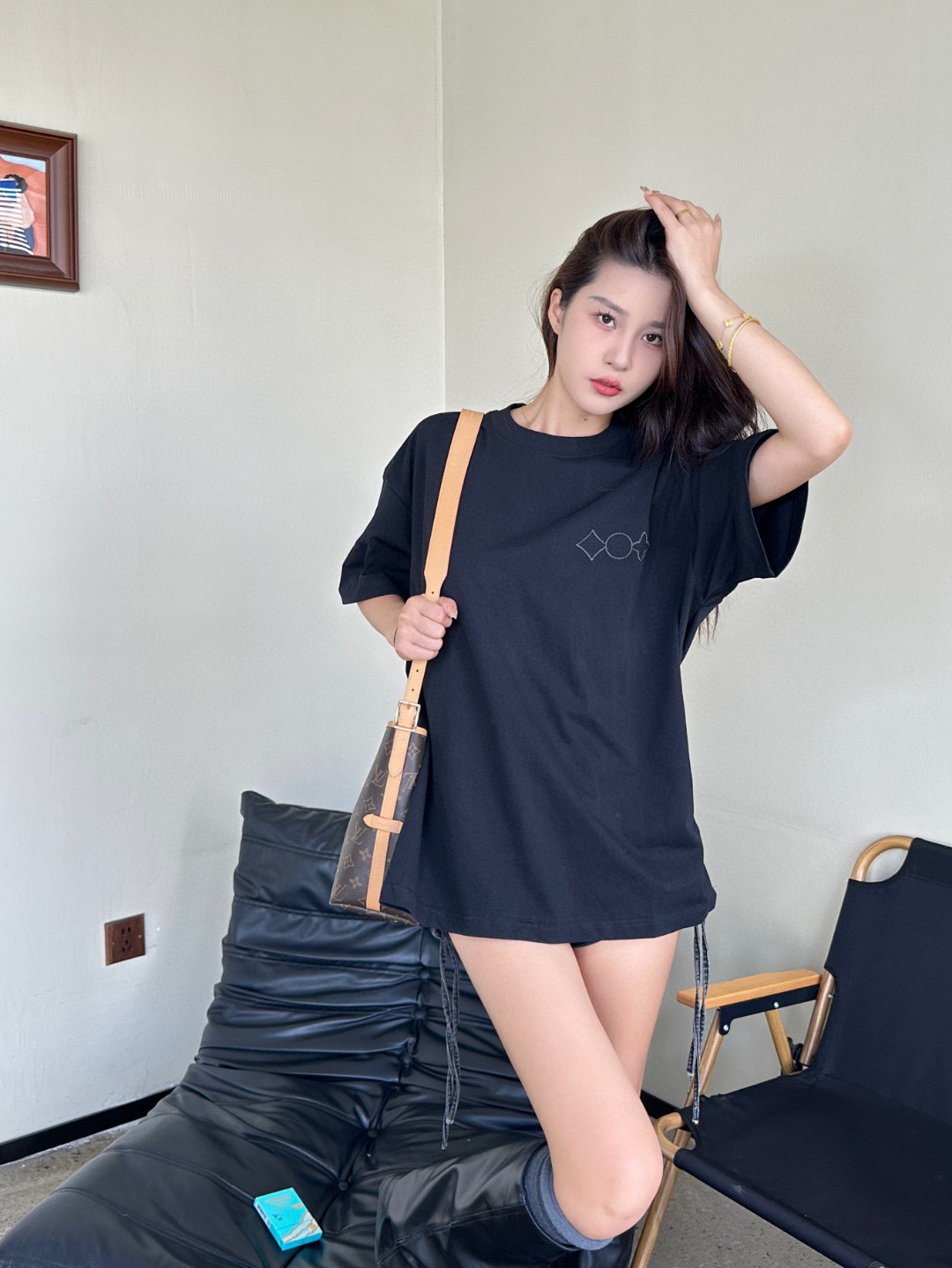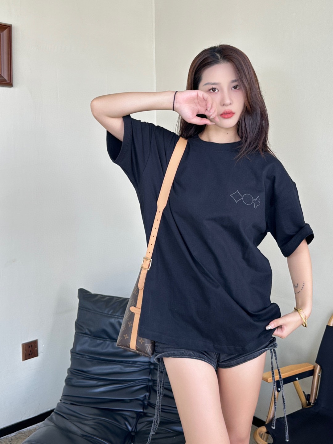 Louis Vuitton 25SS Embroidered Logo Black T-Shirt, Heavy Cut, Stylish and Comfortable