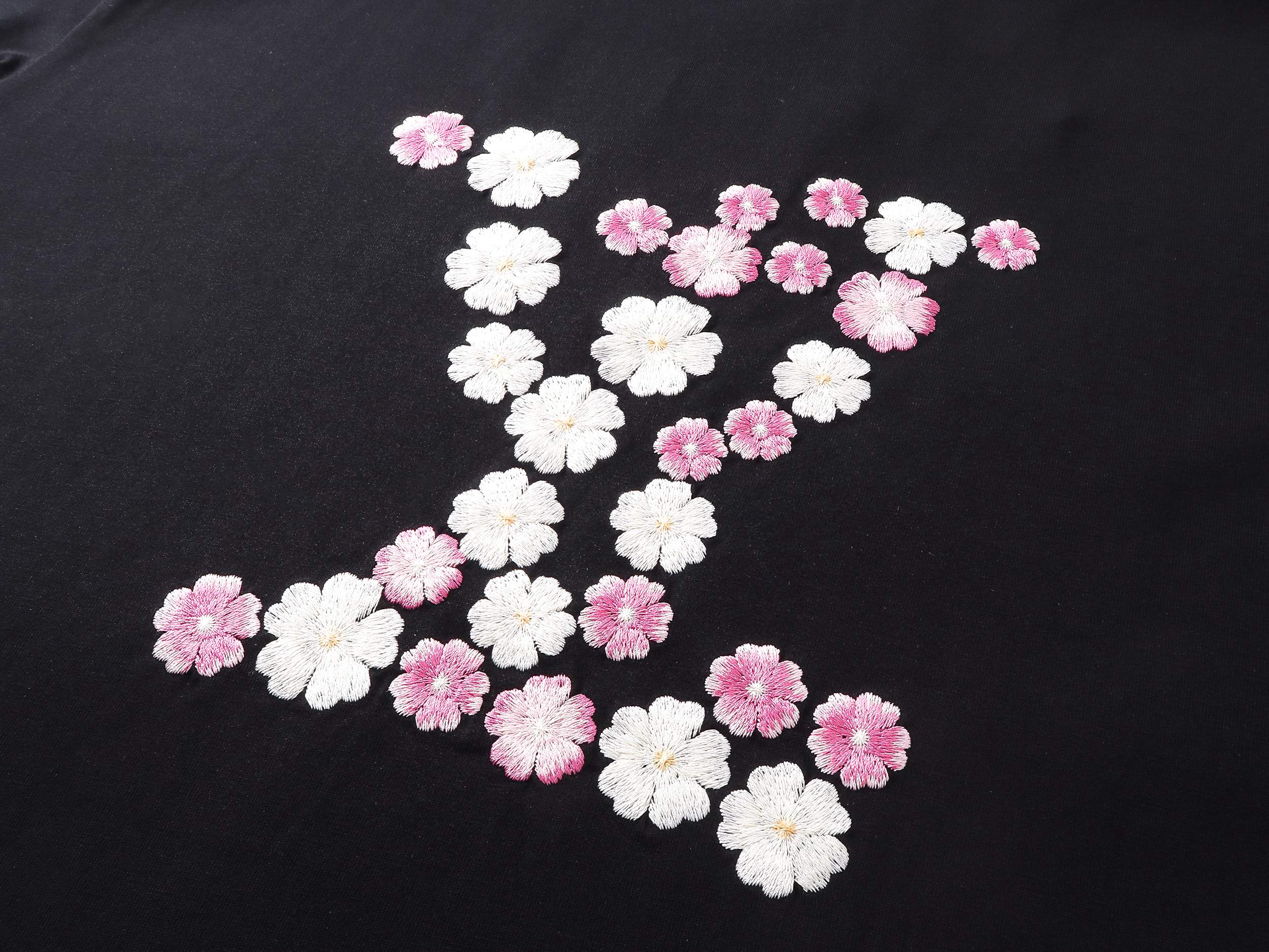 Louis Vuitton Black Cotton T-Shirt with Cherry Blossom Embroidery - Unisex