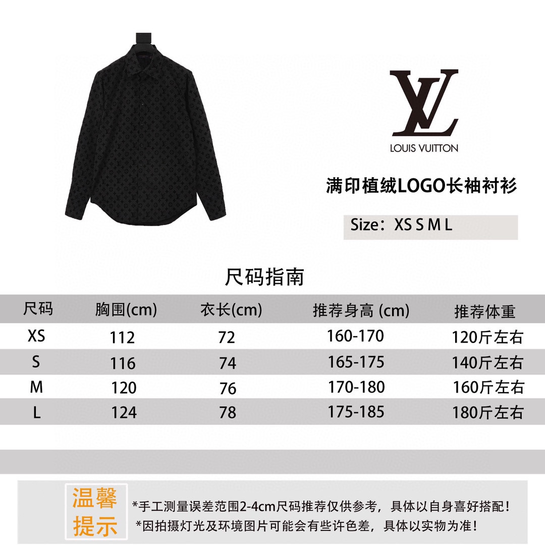 Elevate your style with this Louis Vuitton long sleeve shirt. Features a flocked logo design on a blue-black base. Crafted with high-quality materials for comfort.