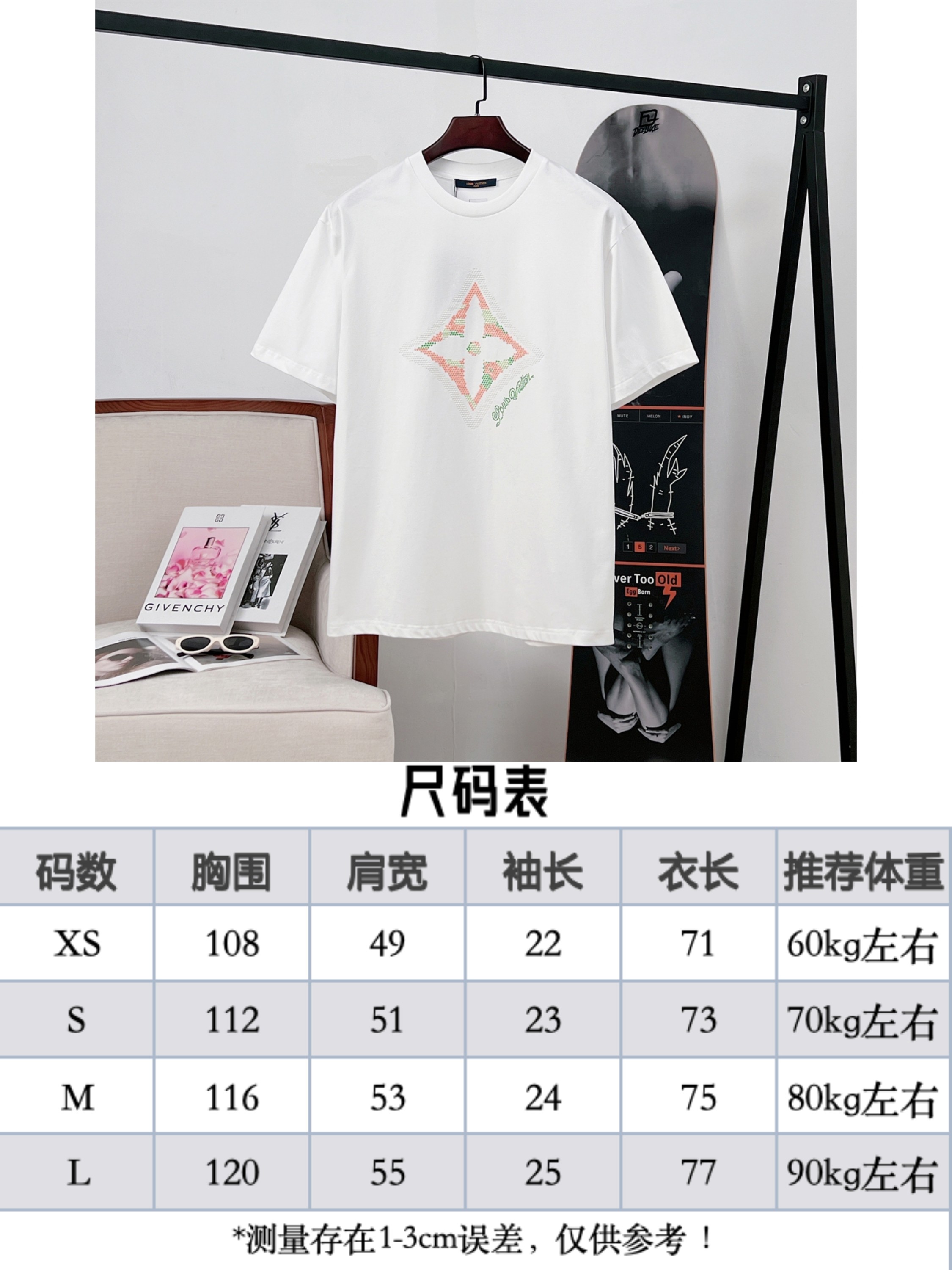 This Louis Vuitton short-sleeve T-shirt redefines casual luxury with its meticulous design and premium materials. Featuring a distinctive hot bead clover pattern, this piece stands out in any wardrobe. The unisex, loose fit ensures comfort without compromising style.