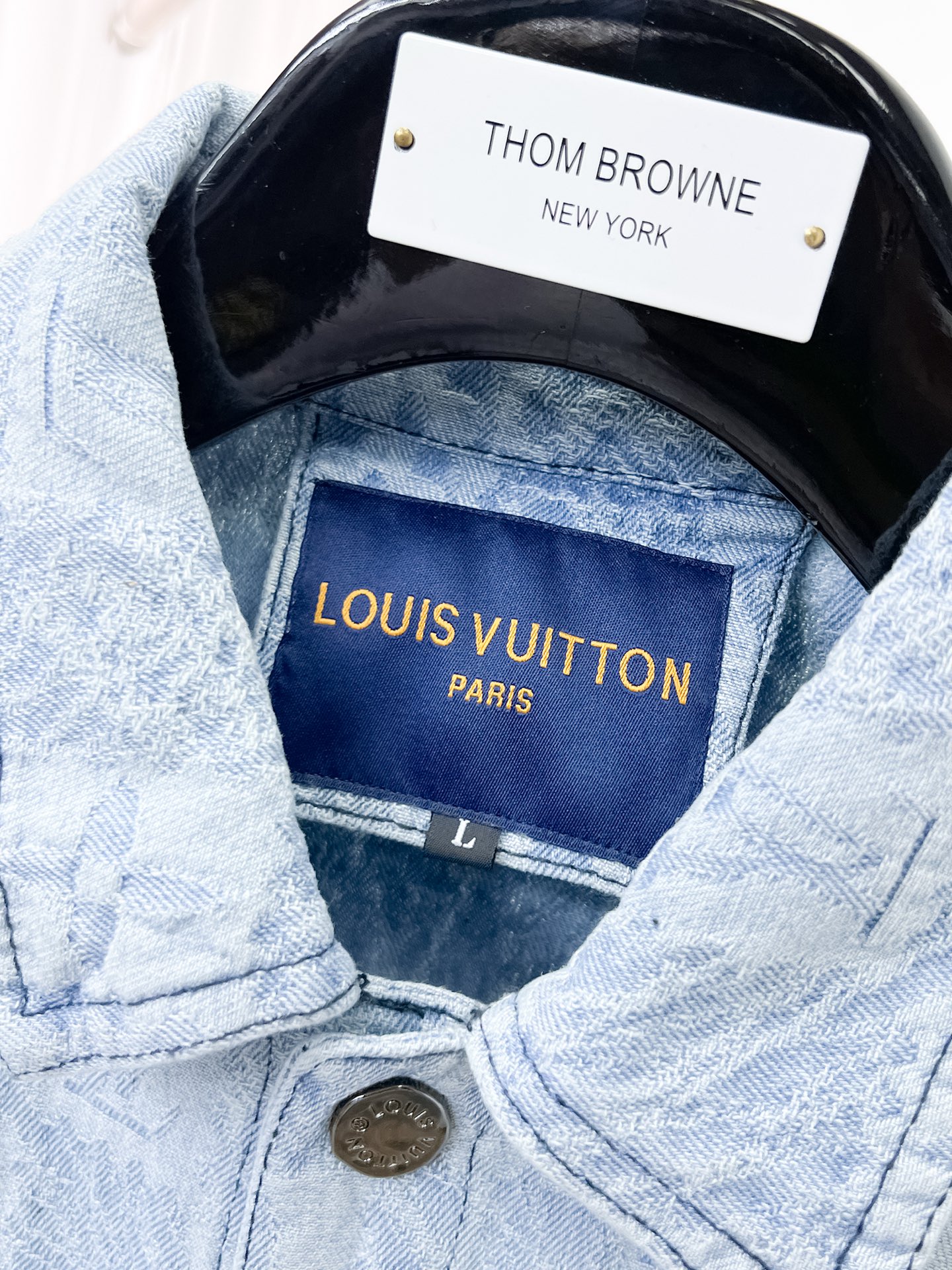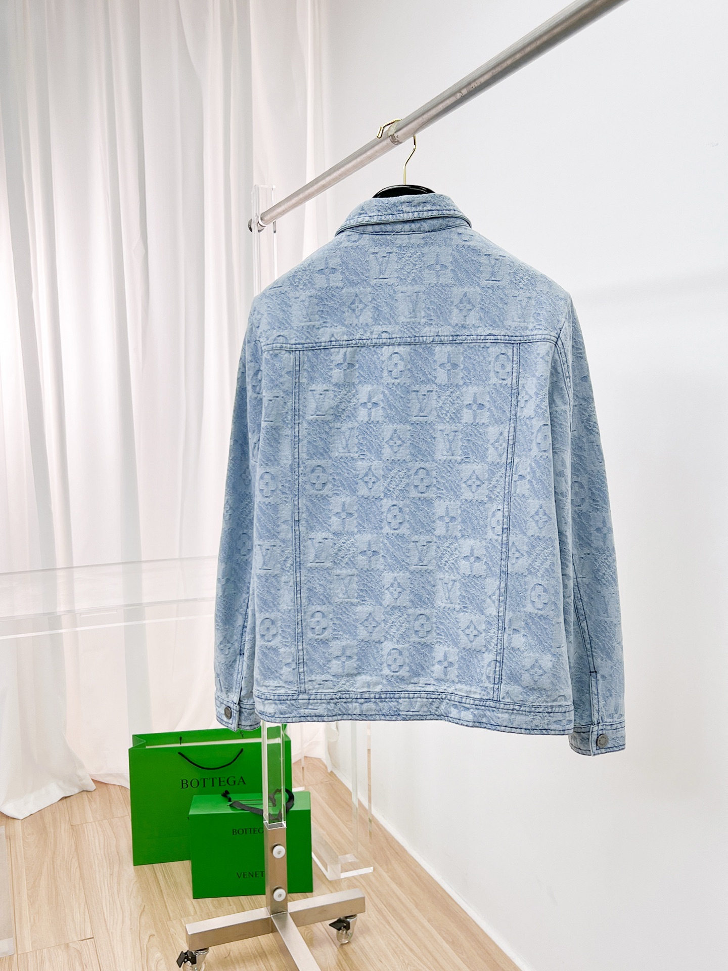 This Louis Vuitton denim jacket is a standout piece for any fashion enthusiast. Crafted with meticulous attention to detail, it seamlessly blends classic denim style with high-end luxury.