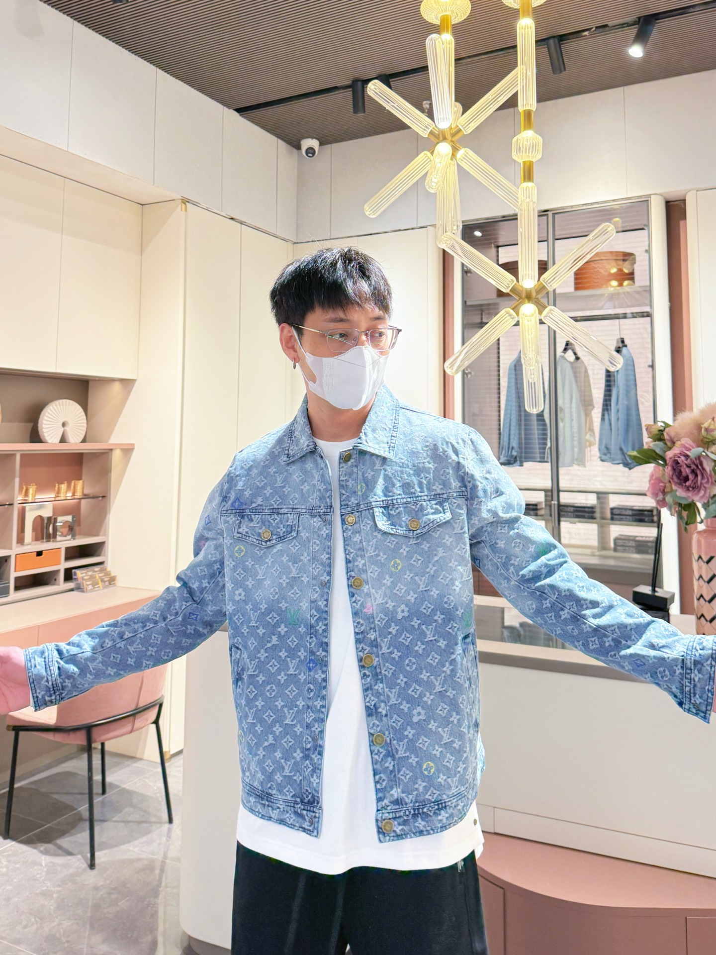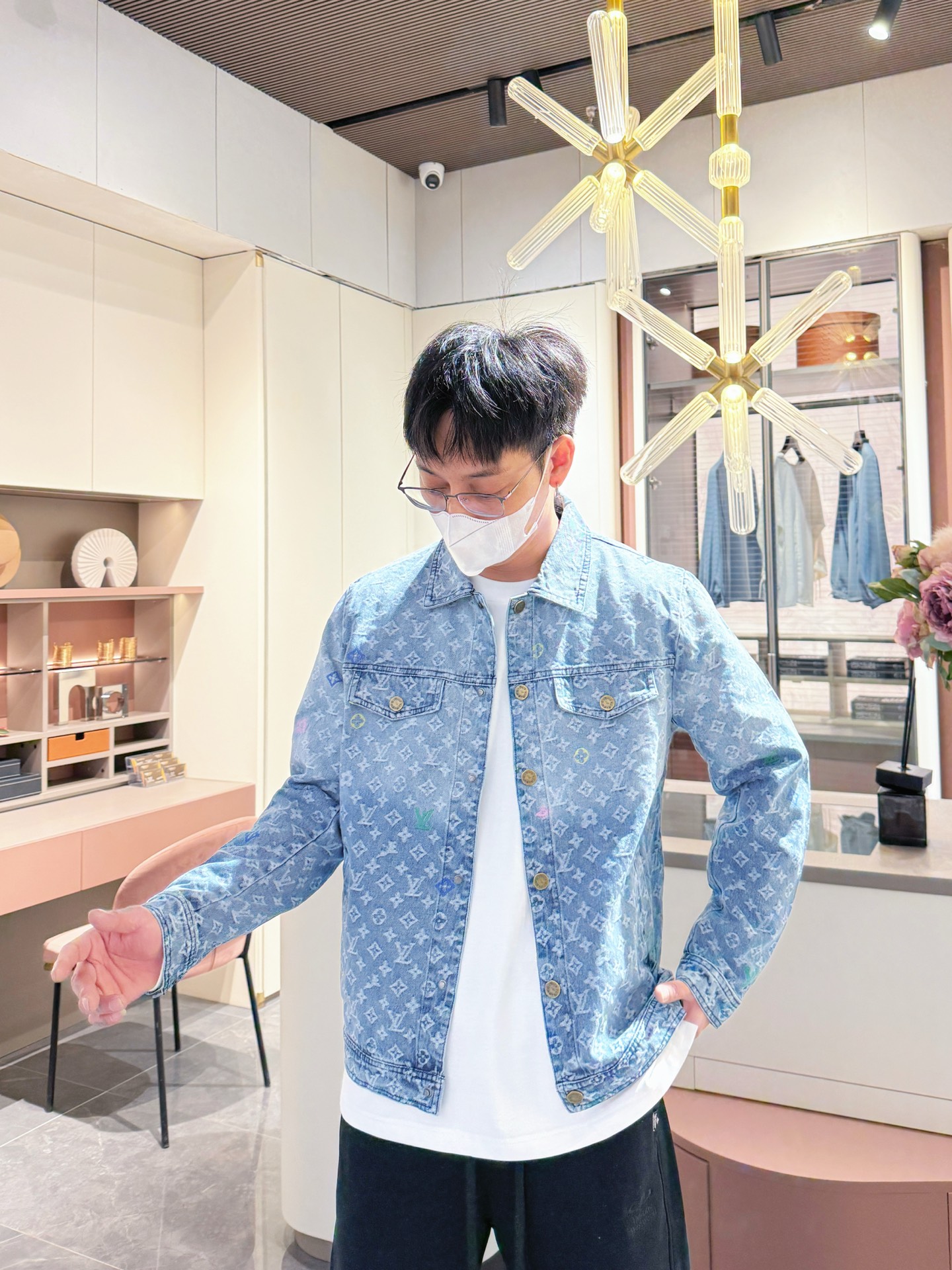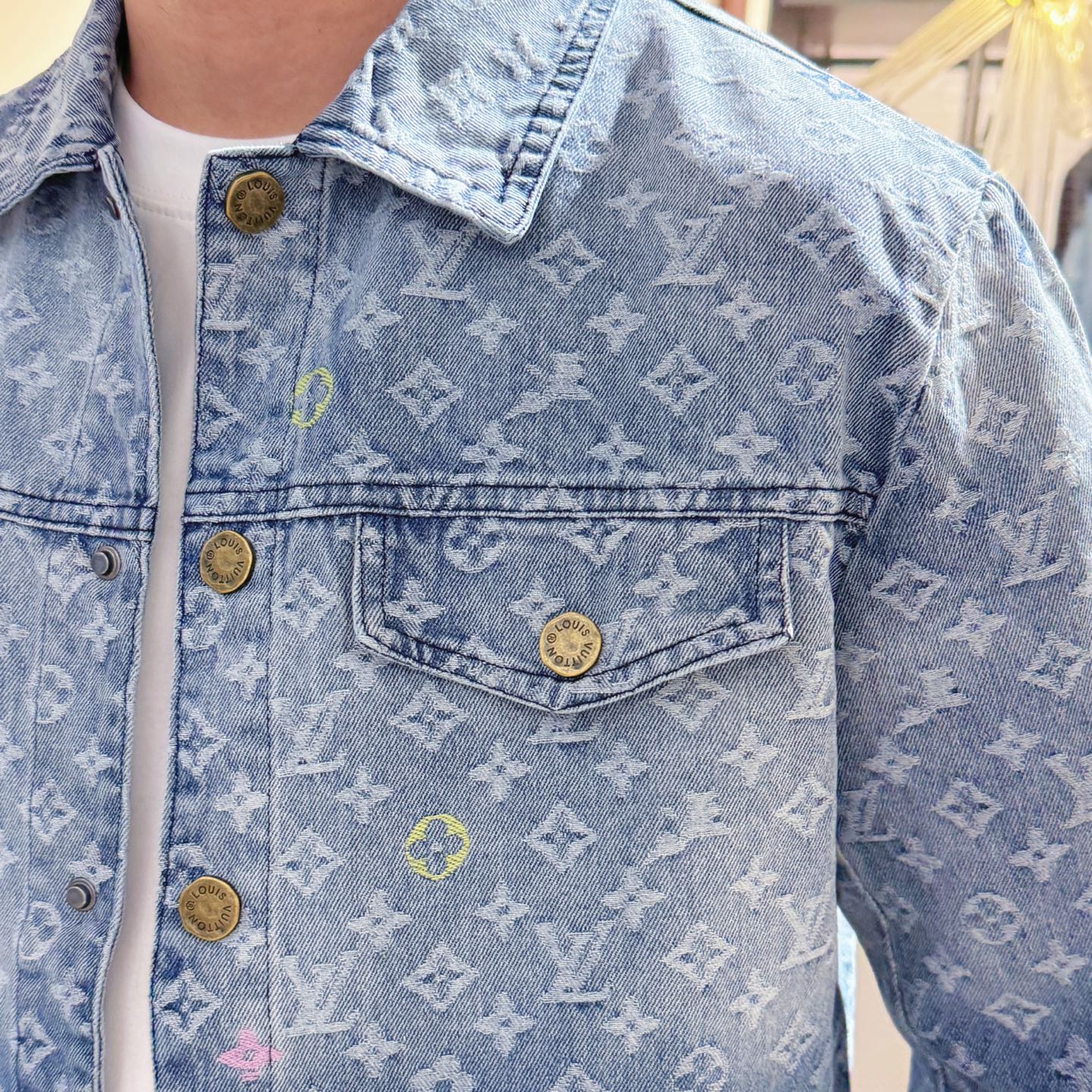 Elevate your style with this luxury denim jacket. Features the iconic LV monogram, premium denim, and exquisite embroidery.