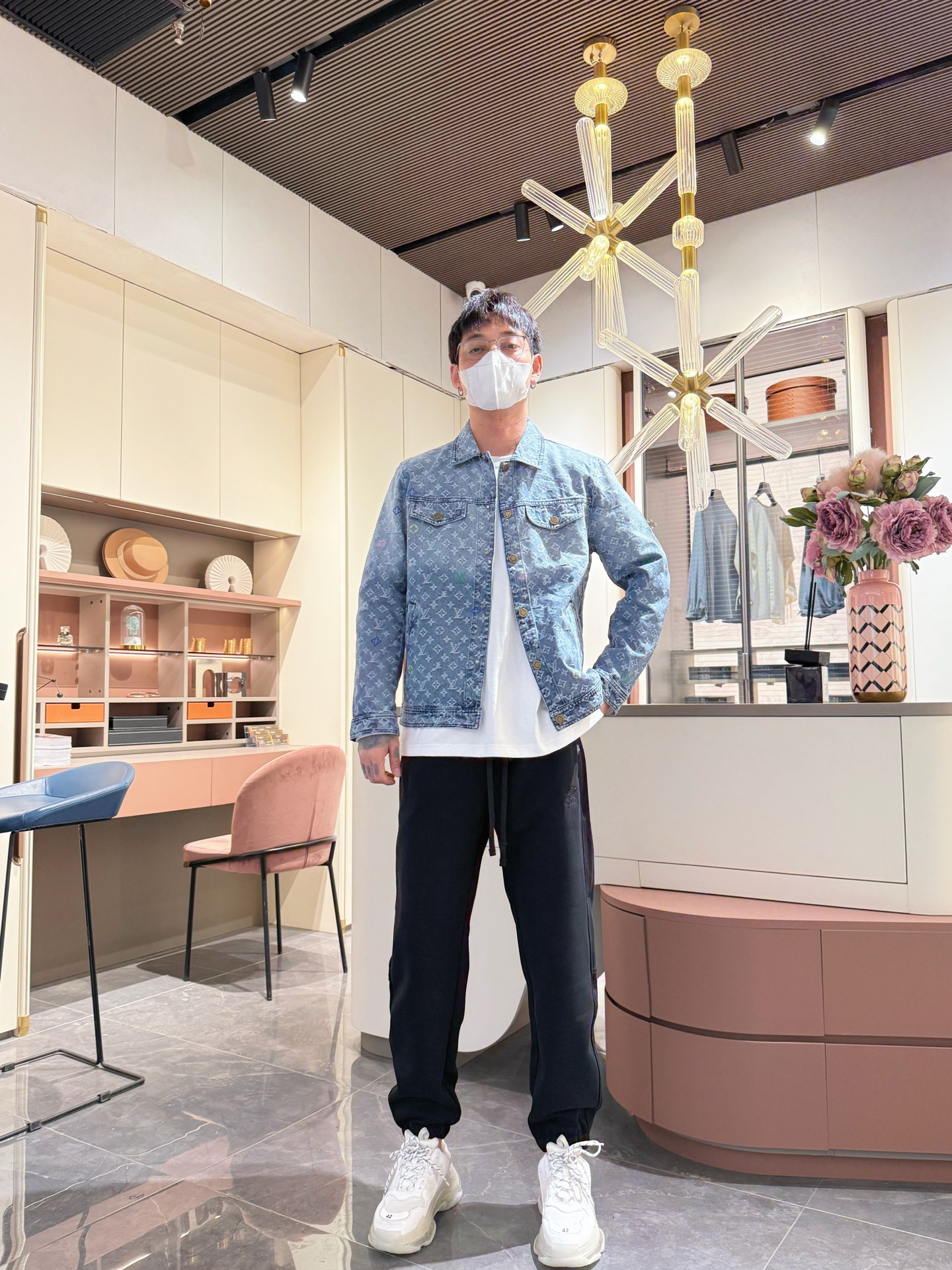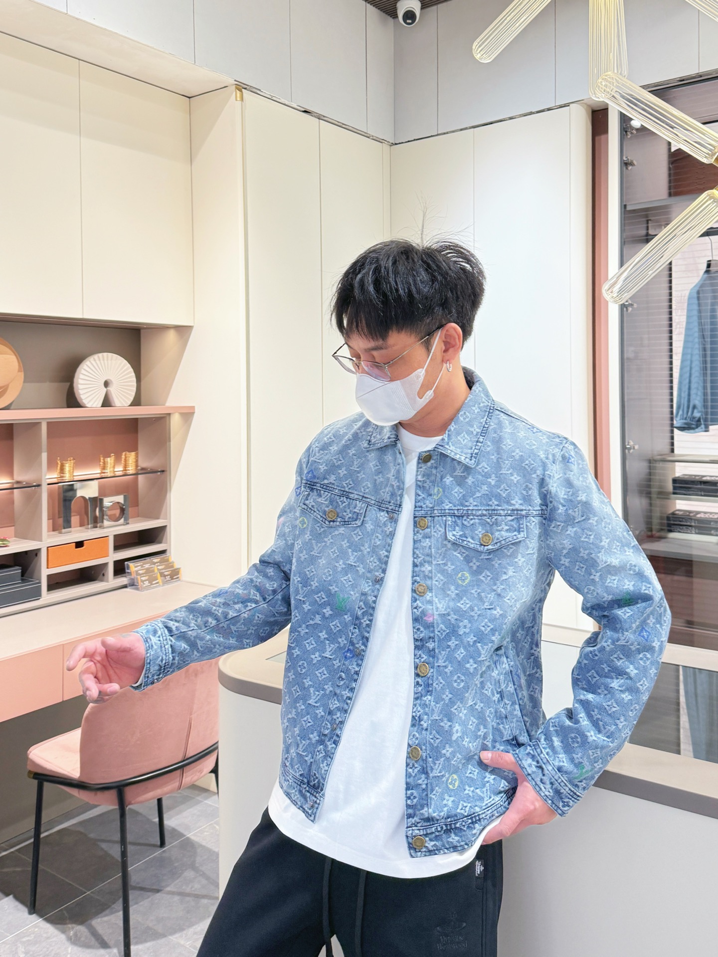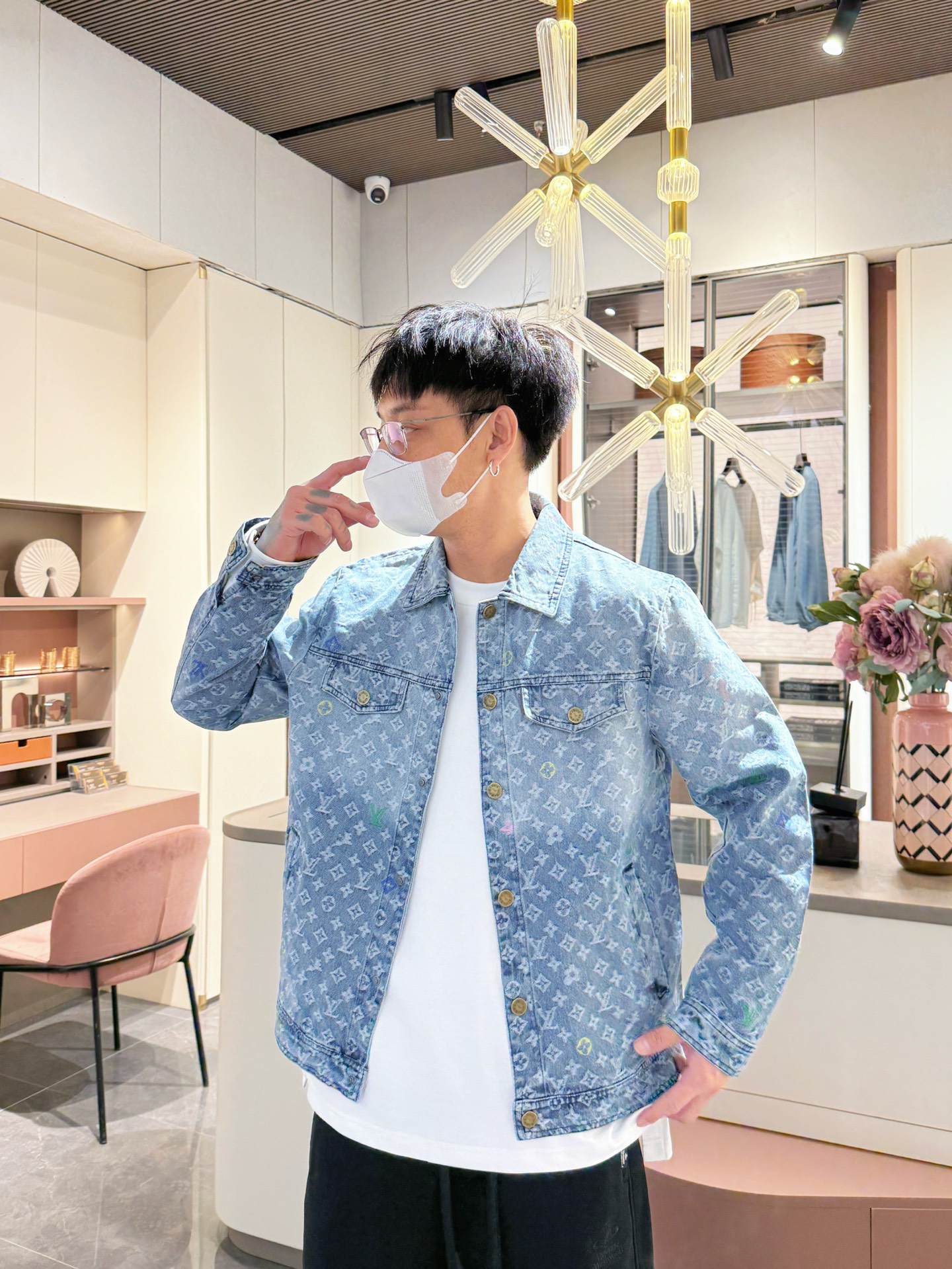 Elevate your style with this luxury denim jacket. Features the iconic LV monogram, premium denim, and exquisite embroidery.