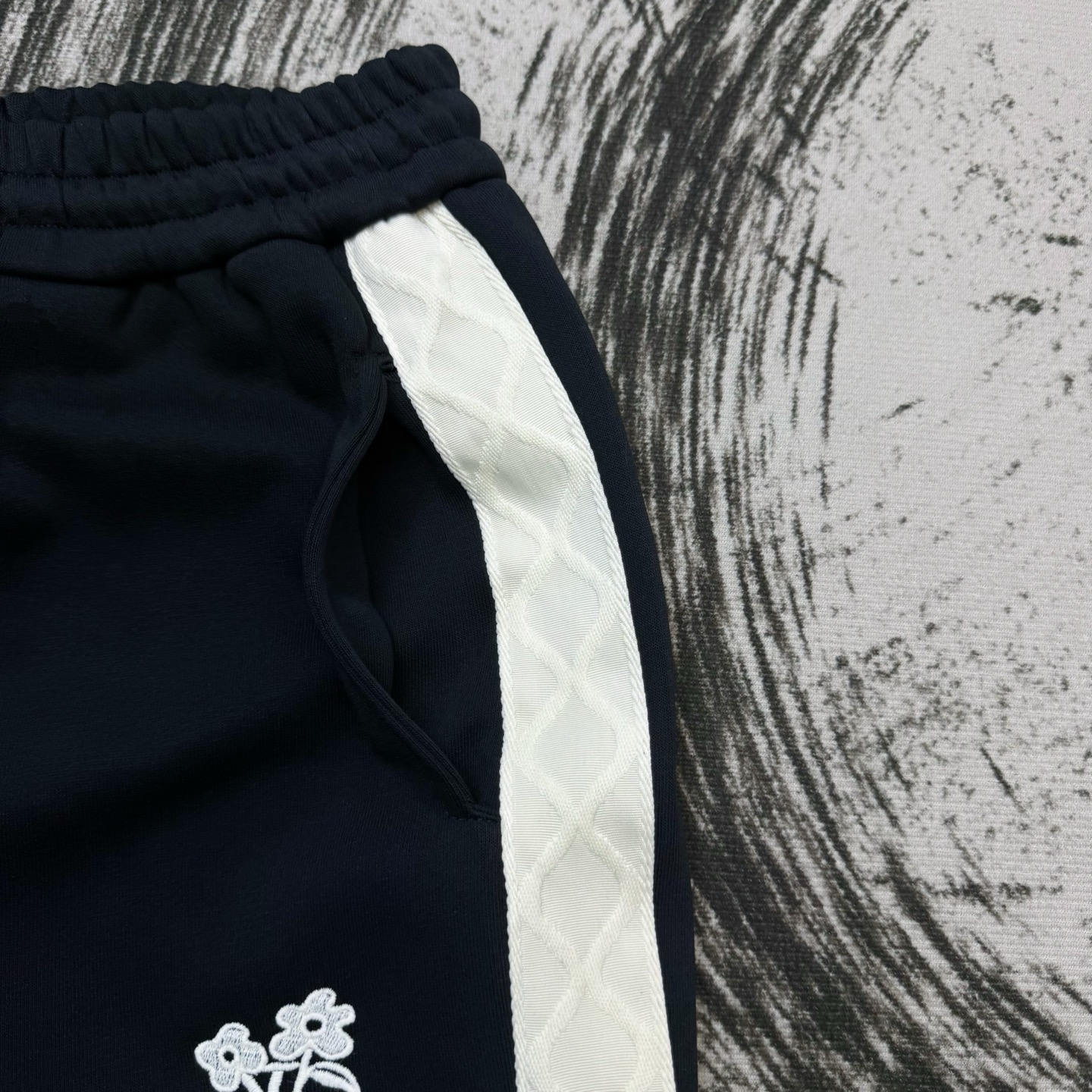 Louis Vuitton Embroidered Floral Lettering Denim Track Pants