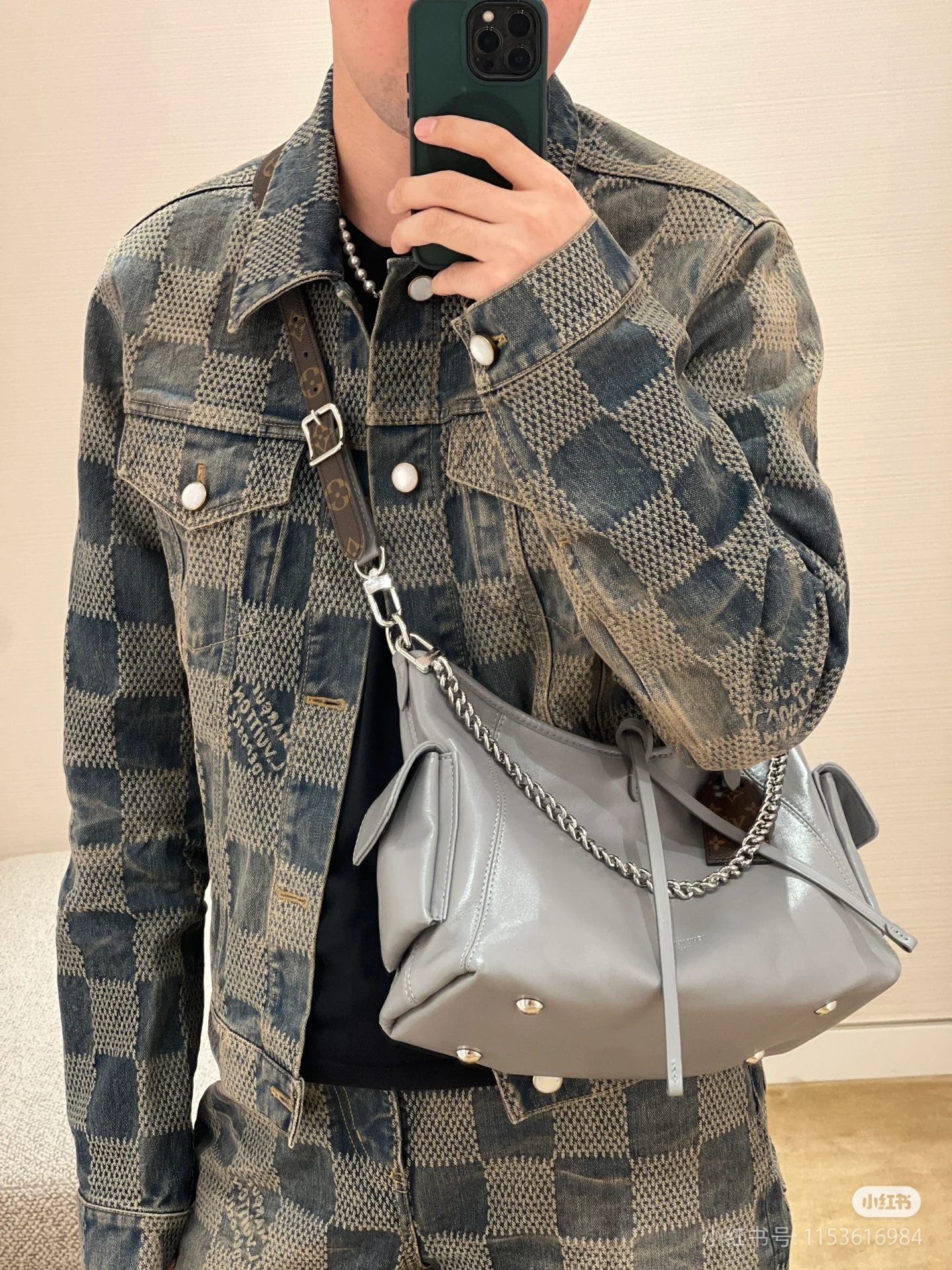 This Louis Vuitton Inspired Vintage Denim Jacket brings together classic denim style with a modern, textured twist. The iconic 3D Damier pattern and pearl button details make this jacket a standout piece for any wardrobe.