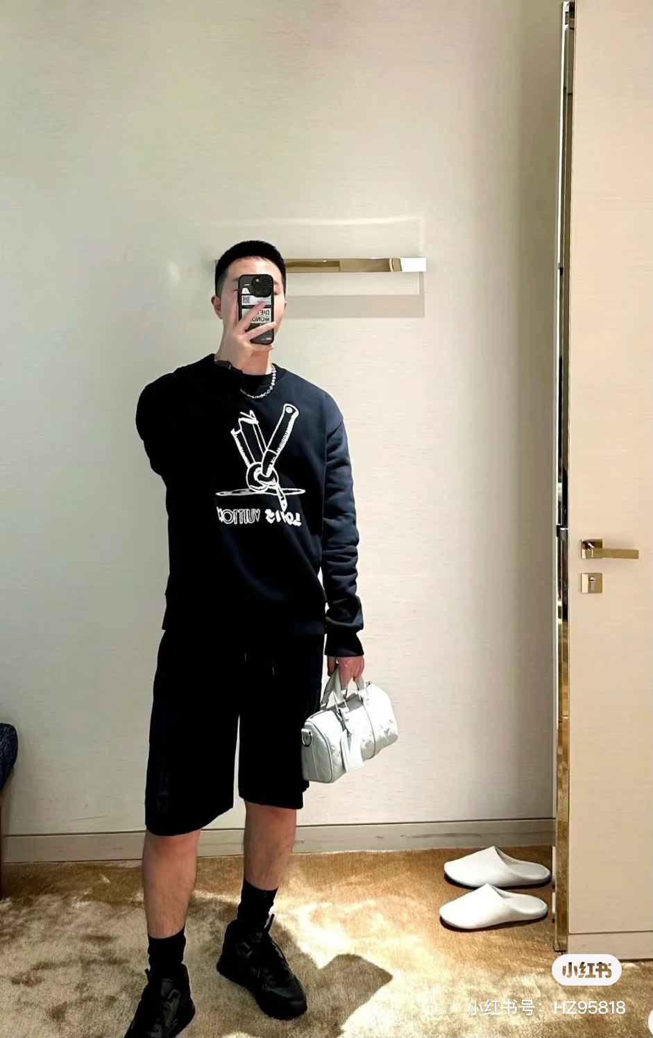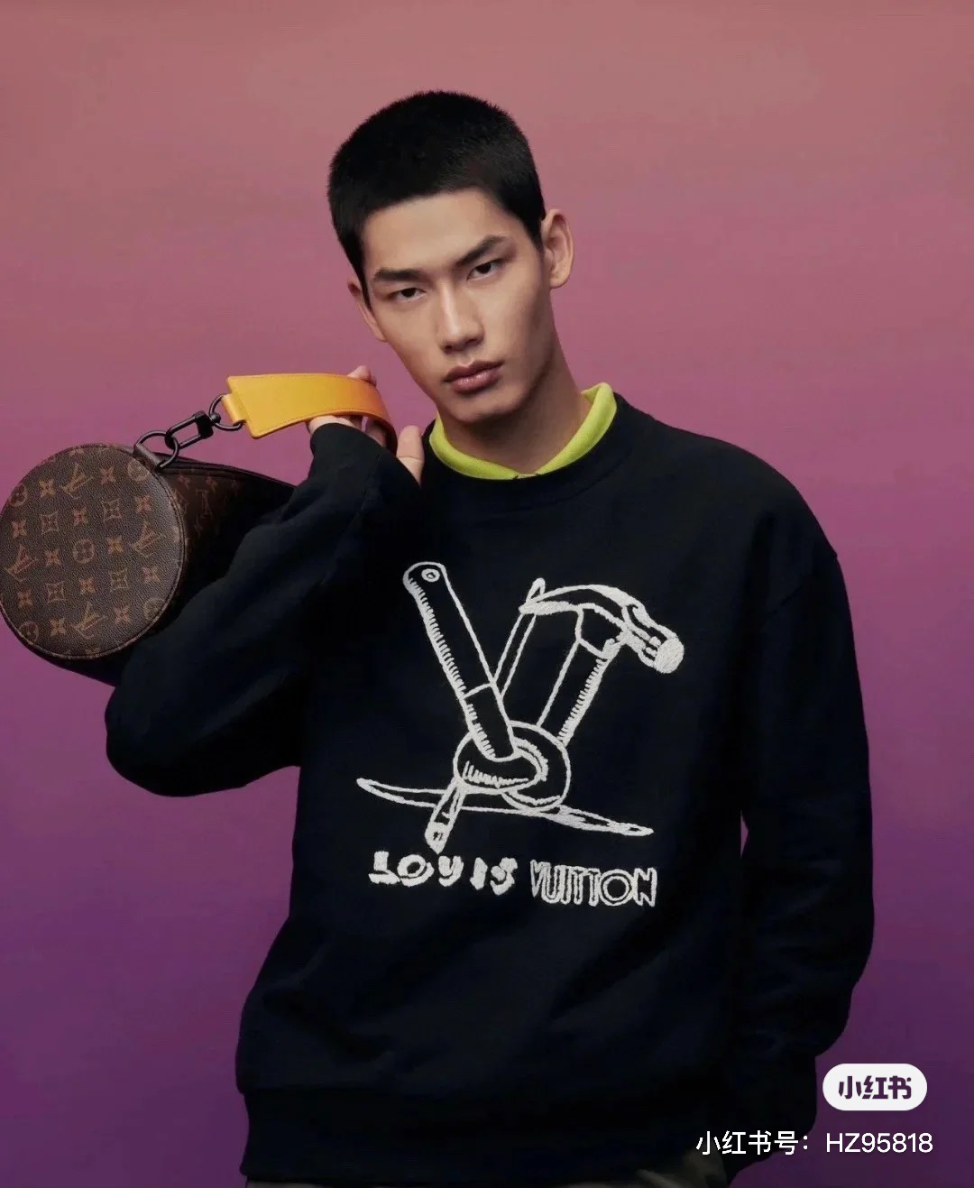 This Louis Vuitton crew neck sweatshirt is a stylish and comfortable addition to any wardrobe. Featuring a classic design with an eye-catching iron hammer embroidery, this sweatshirt is perfect for both men and women.