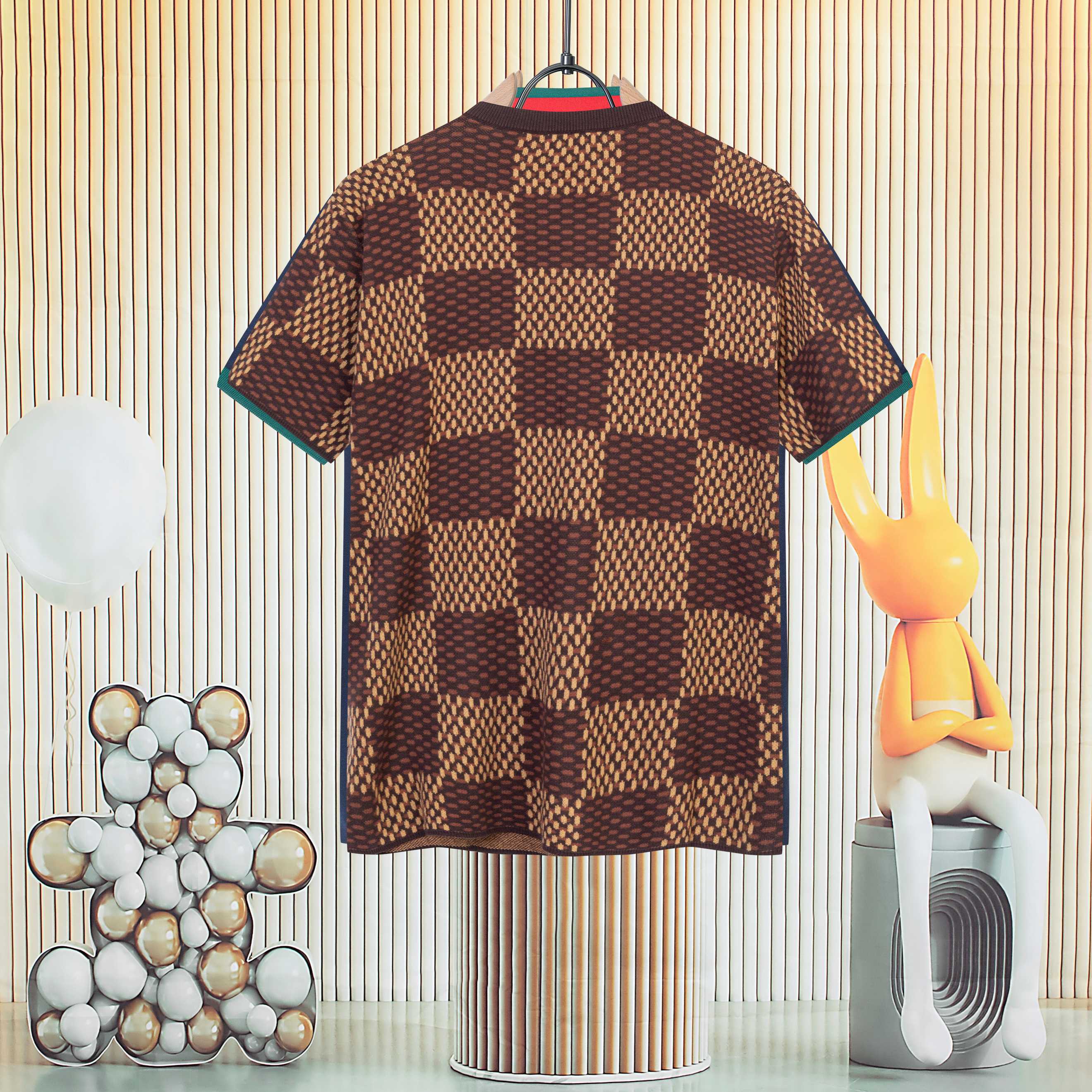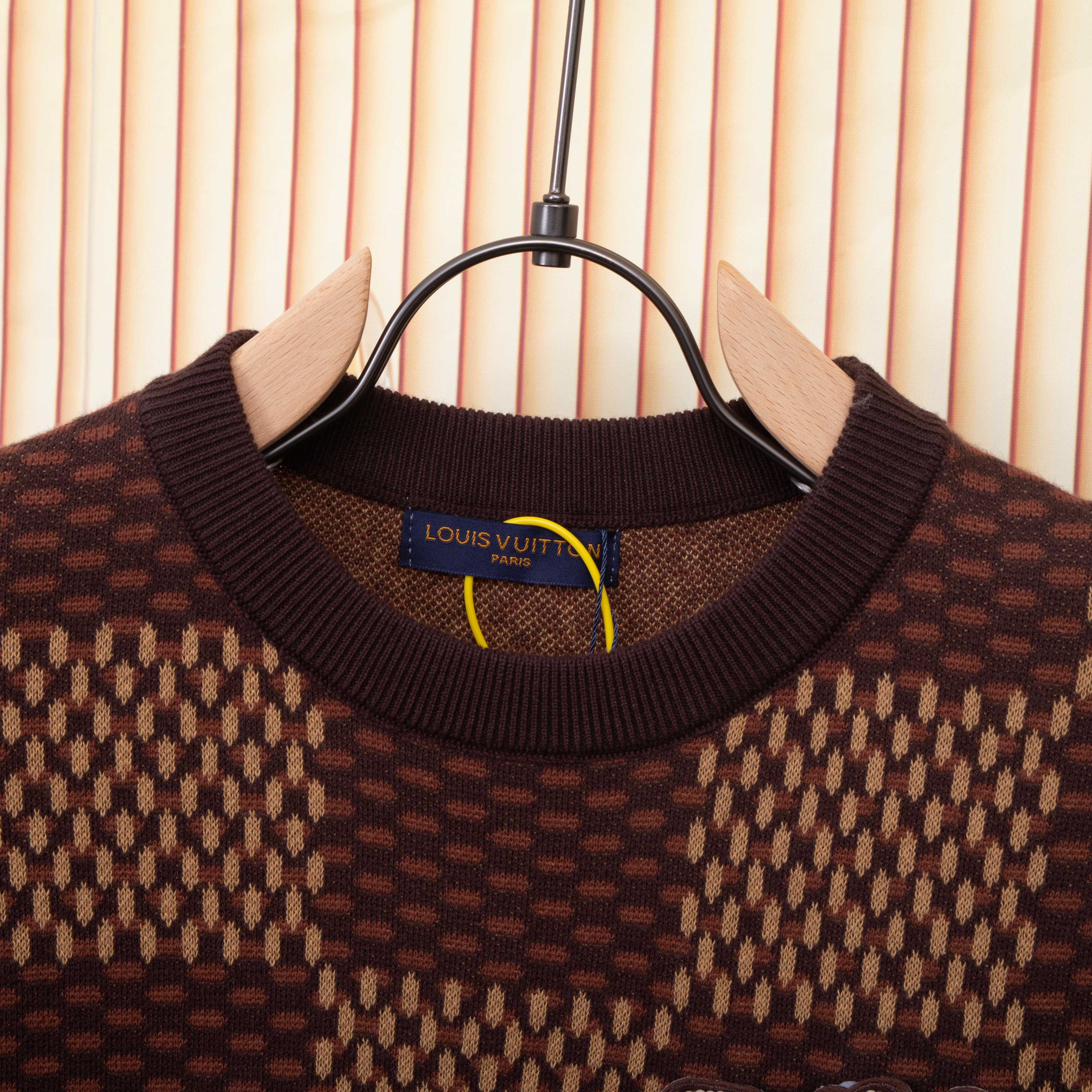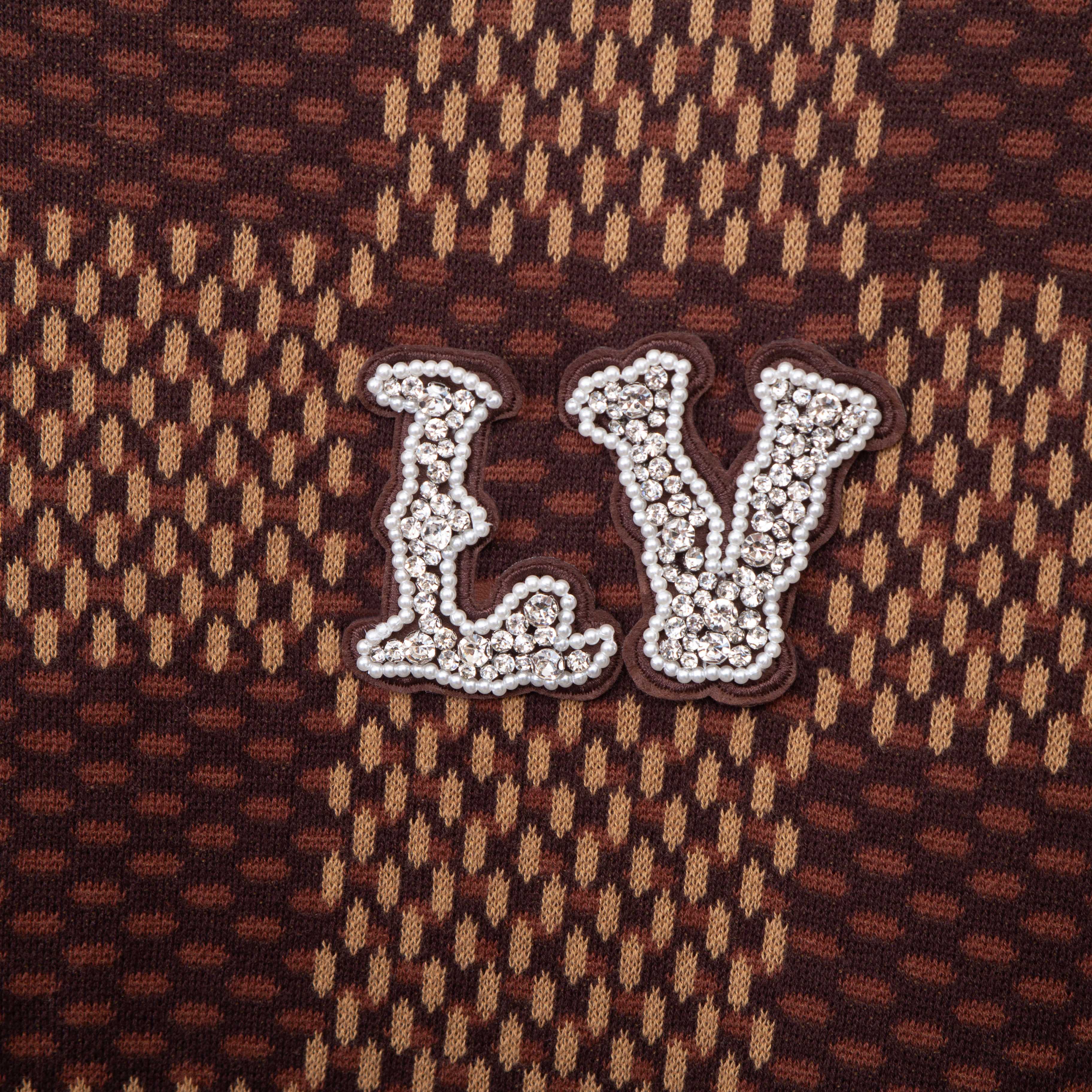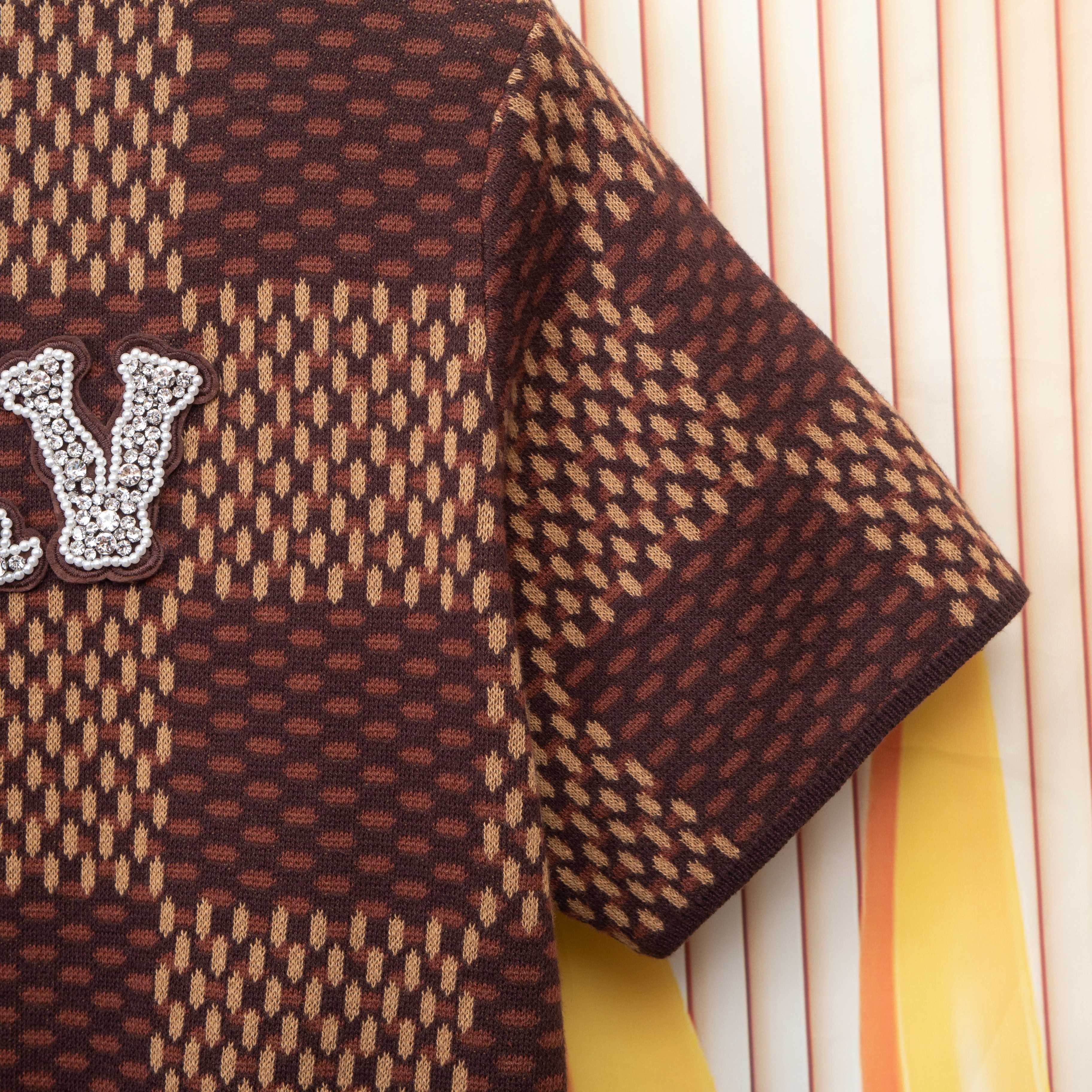 Louis Vuitton Knitted Short Sleeve with Checkerboard and Rhinestone Design