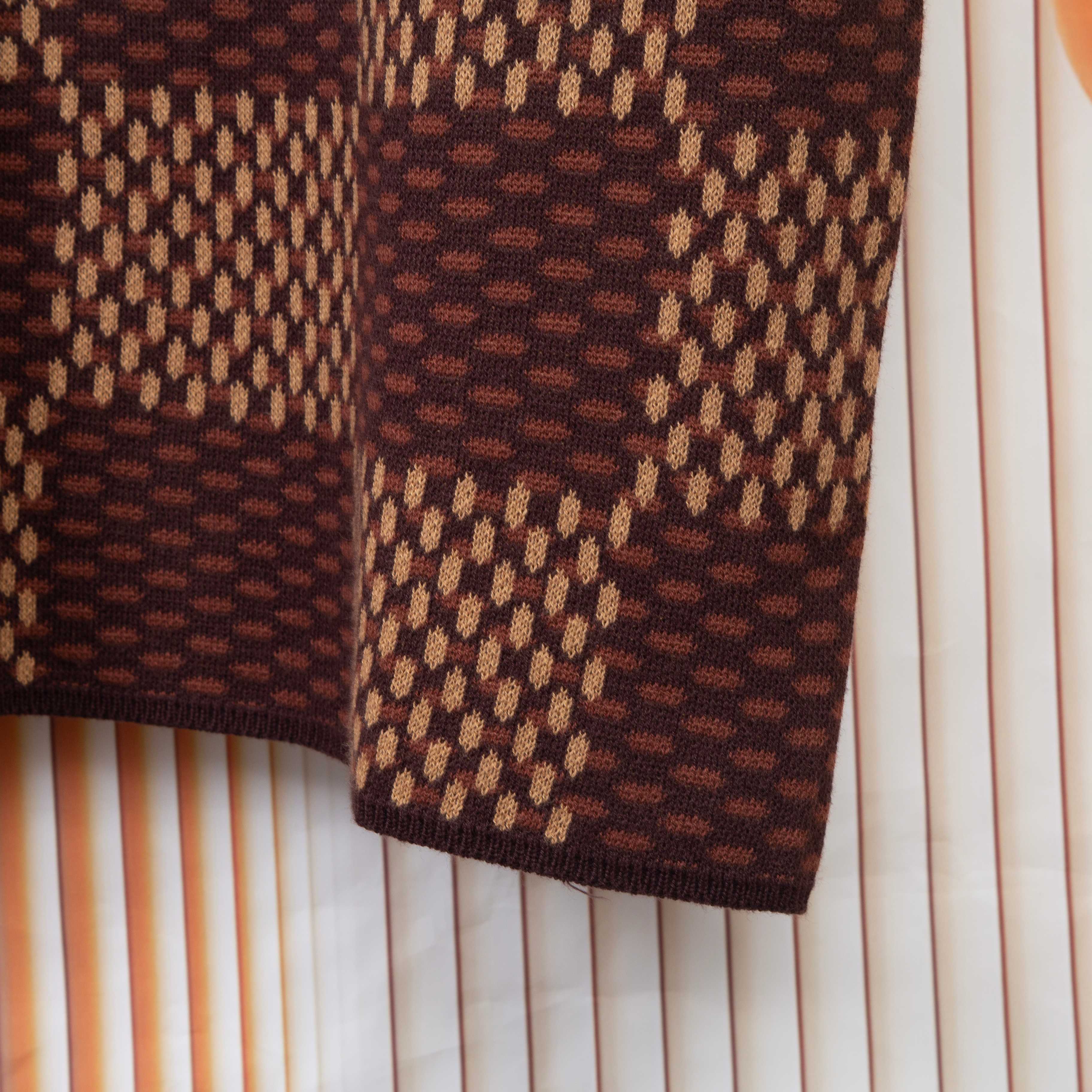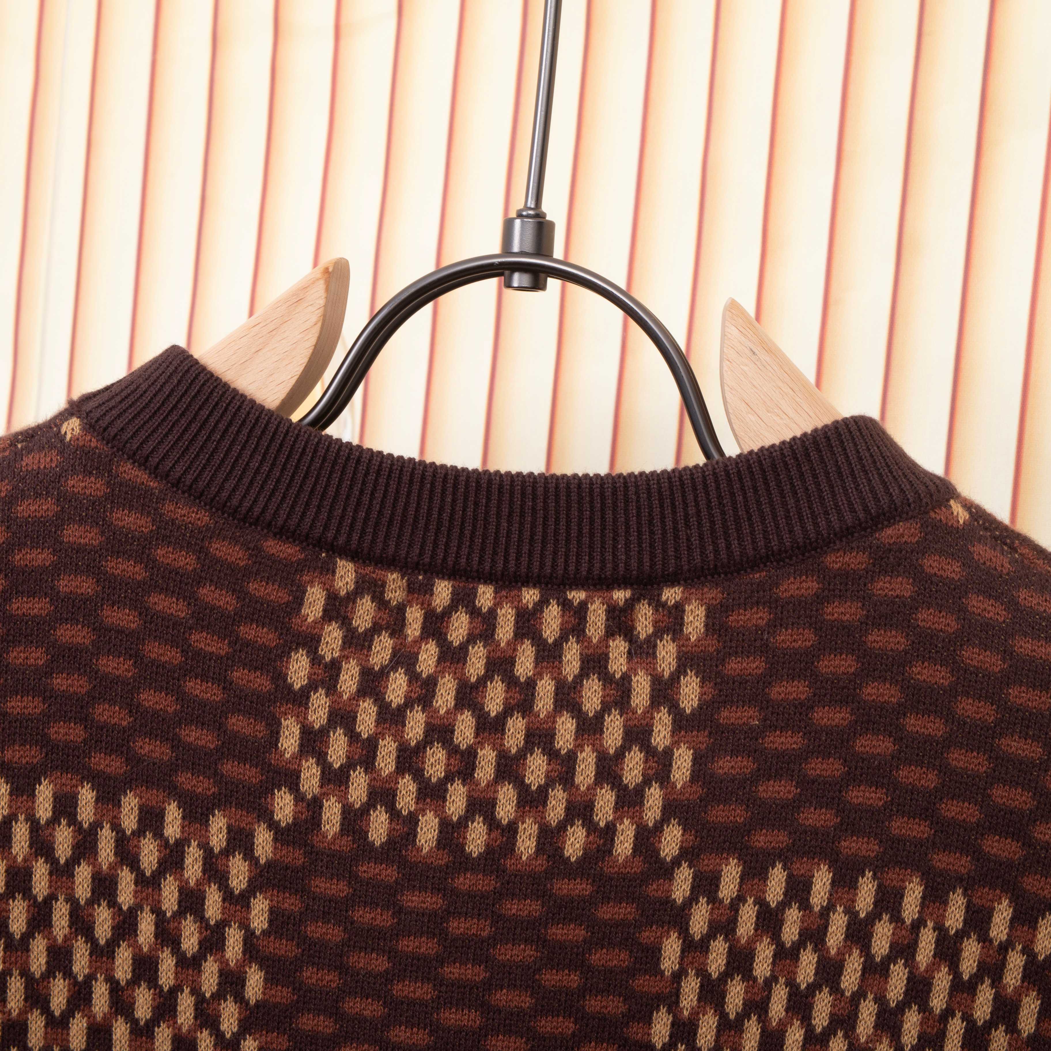 This Louis Vuitton knitted short sleeve is a must-have for any fashion enthusiast. It features a unique checkerboard pattern and rhinestone detailing on the front.