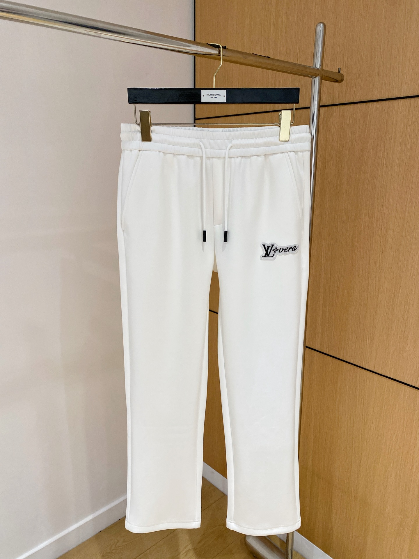 Louis Vuitton Men's 2025 White Cotton Lounge Pants with Embroidered Logo