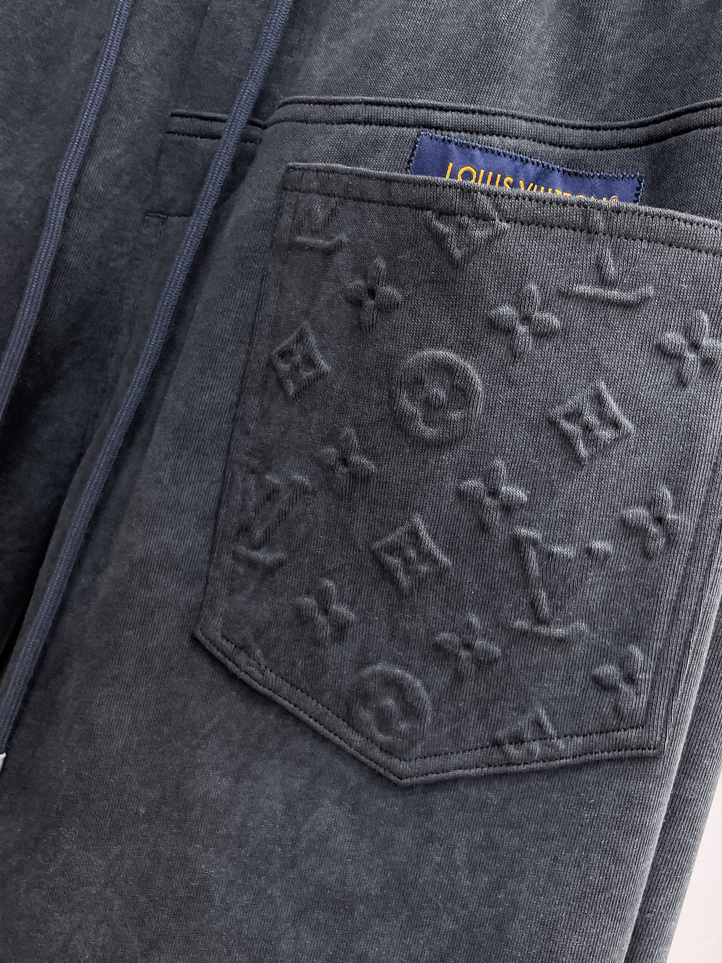 Elevate your casual style with these Louis Vuitton pants, featuring a monogram design and comfortable fabric. Perfect for a relaxed yet fashionable look.