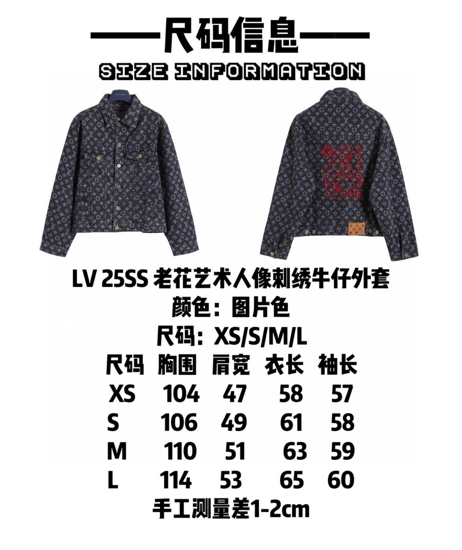 Elevate your style with this Louis Vuitton denim jacket. Features monogram pattern, portrait embroidery, and custom brass logo buttons. Perfect for daily wear.