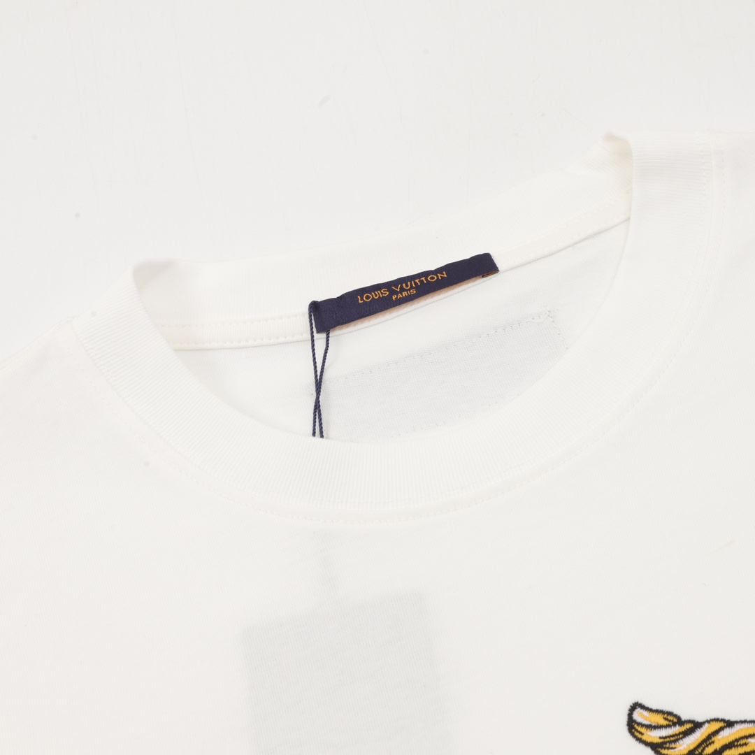 Add a touch of luxury to your everyday look with this Louis Vuitton embroidered T-shirt. Its unique design and premium quality make it a must-have for fashion enthusiasts.