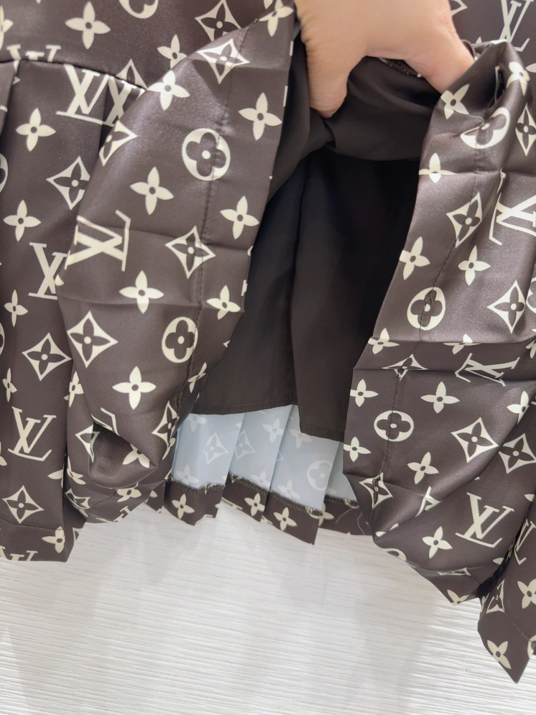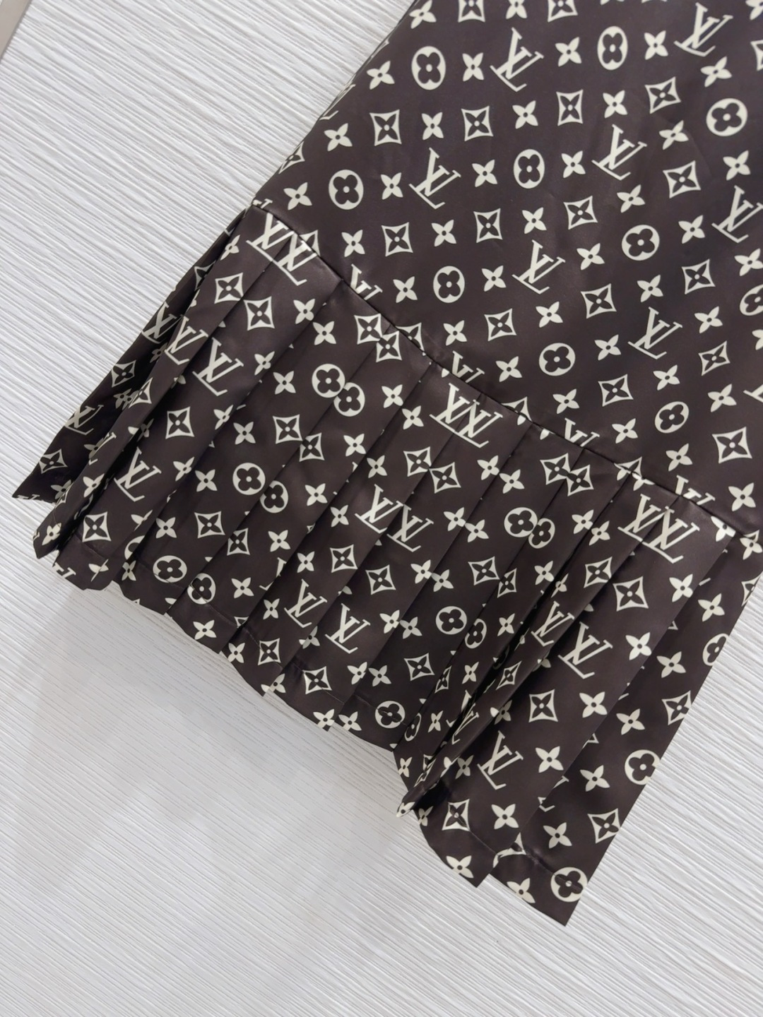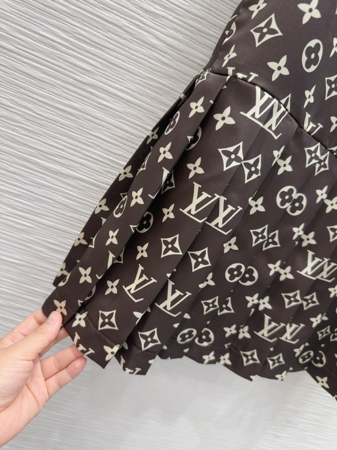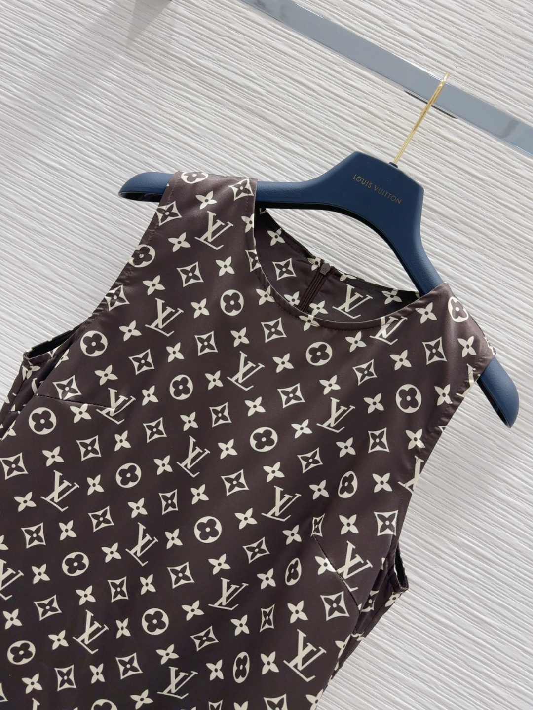 This Louis Vuitton sleeveless dress is a versatile and stylish addition to any wardrobe. With its classic monogram design and pleated skirt, it offers a blend of elegance and modernity.