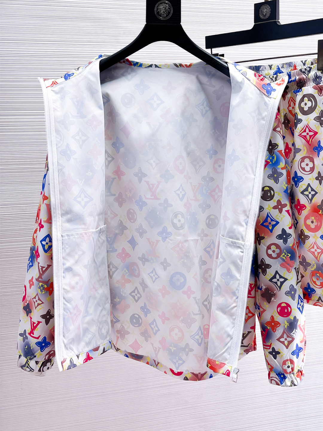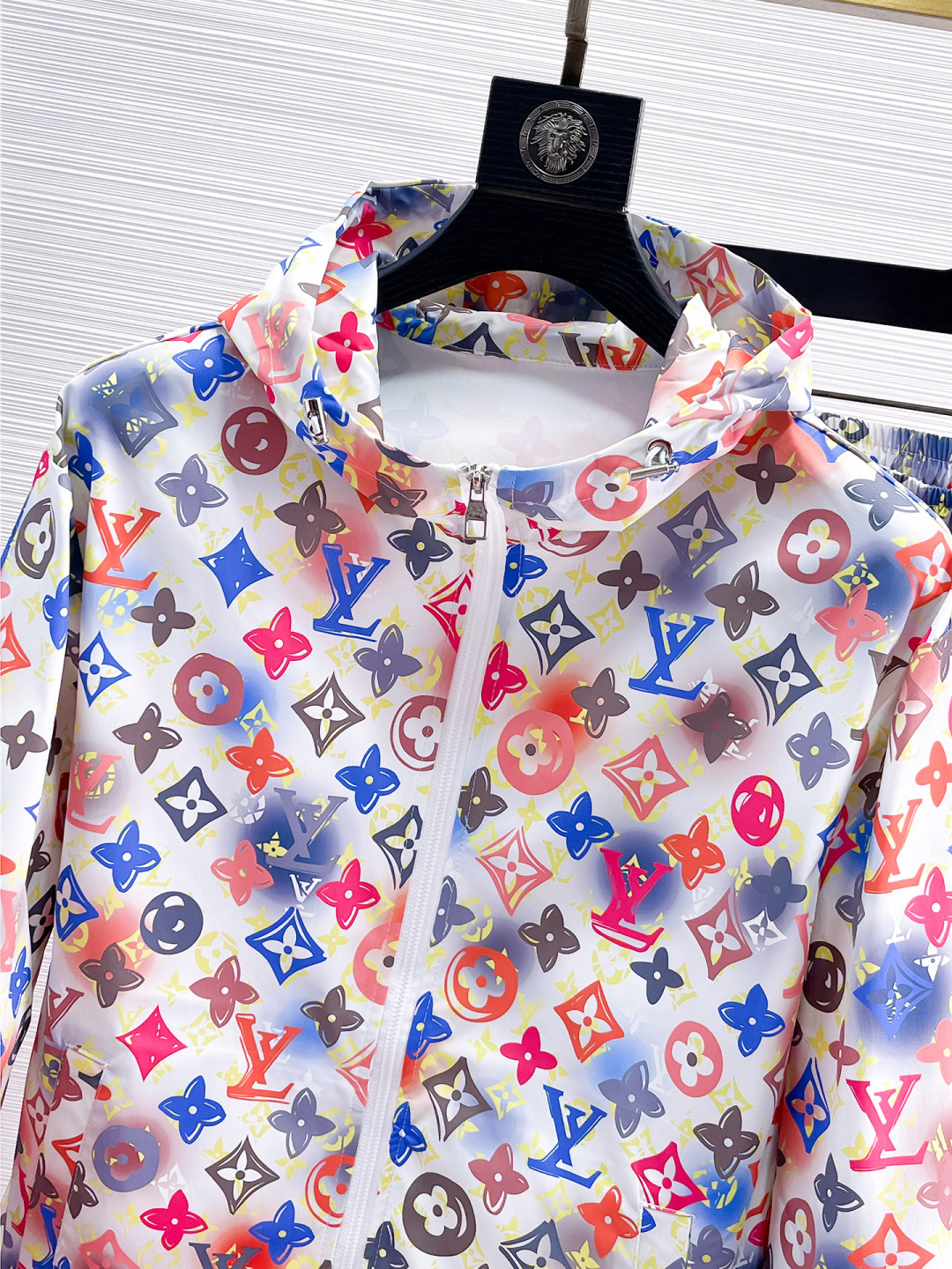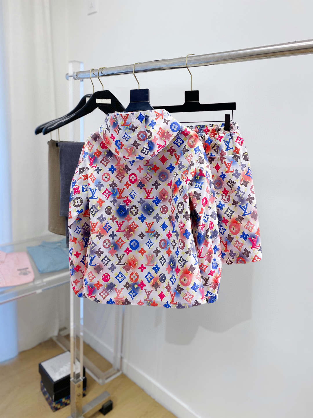 Elevate your summer style with this Louis Vuitton set! Featuring a lightweight jacket and shorts, perfect for sun protection and a fashionable look.