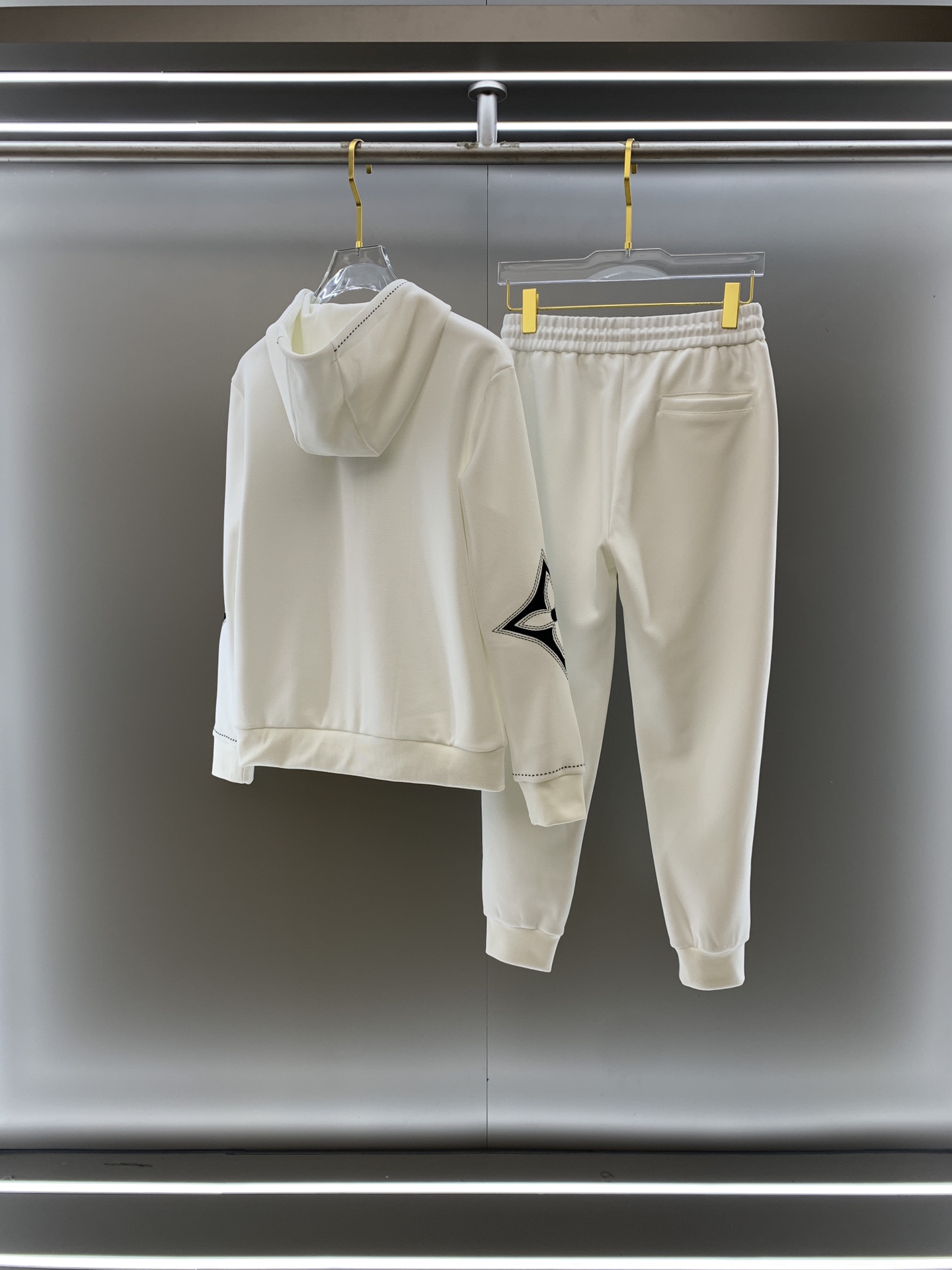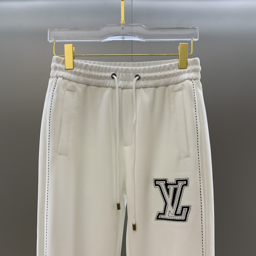 Louis Vuitton White Cotton Hoodie and Pants Set with Intarsia Details