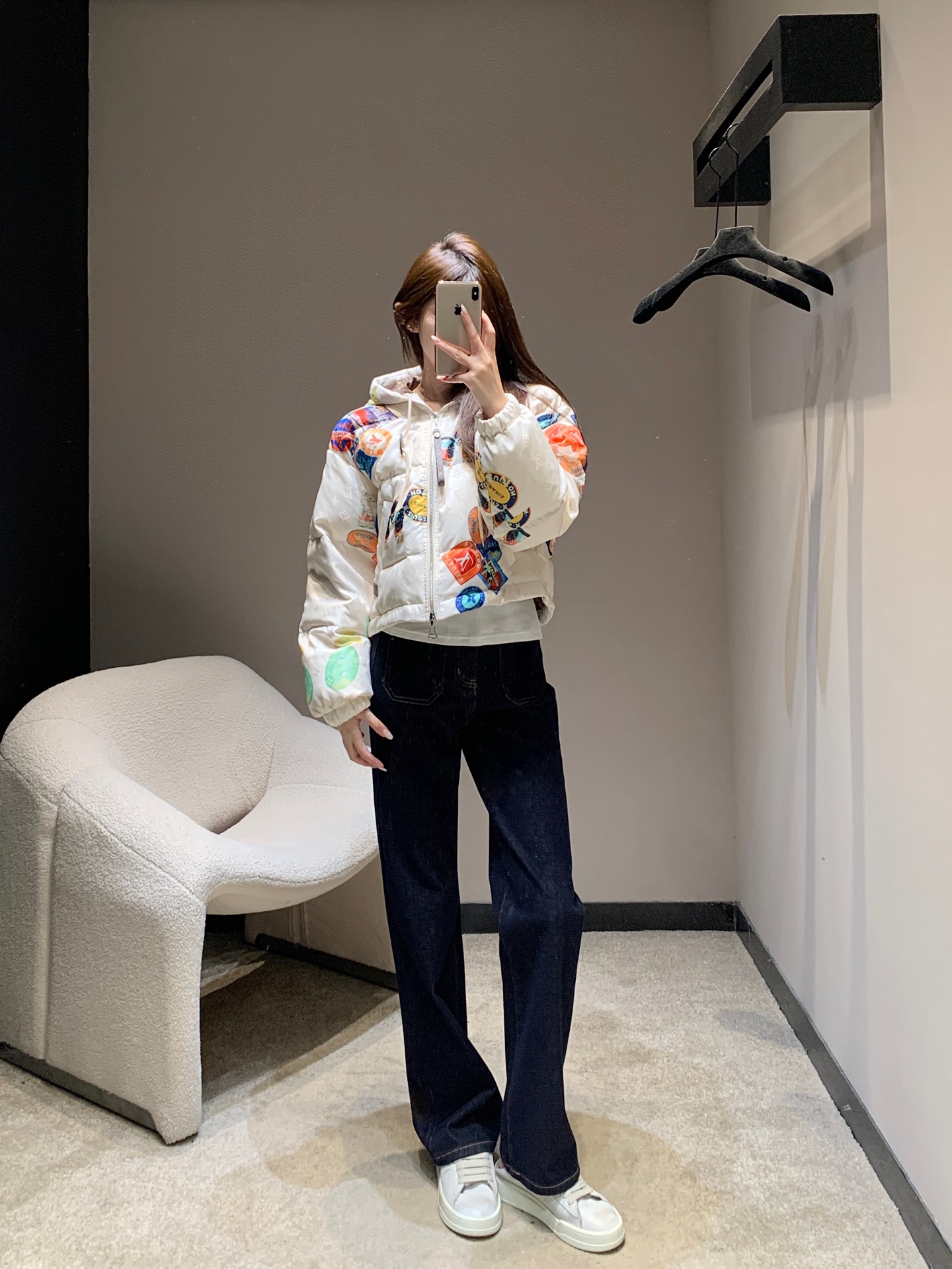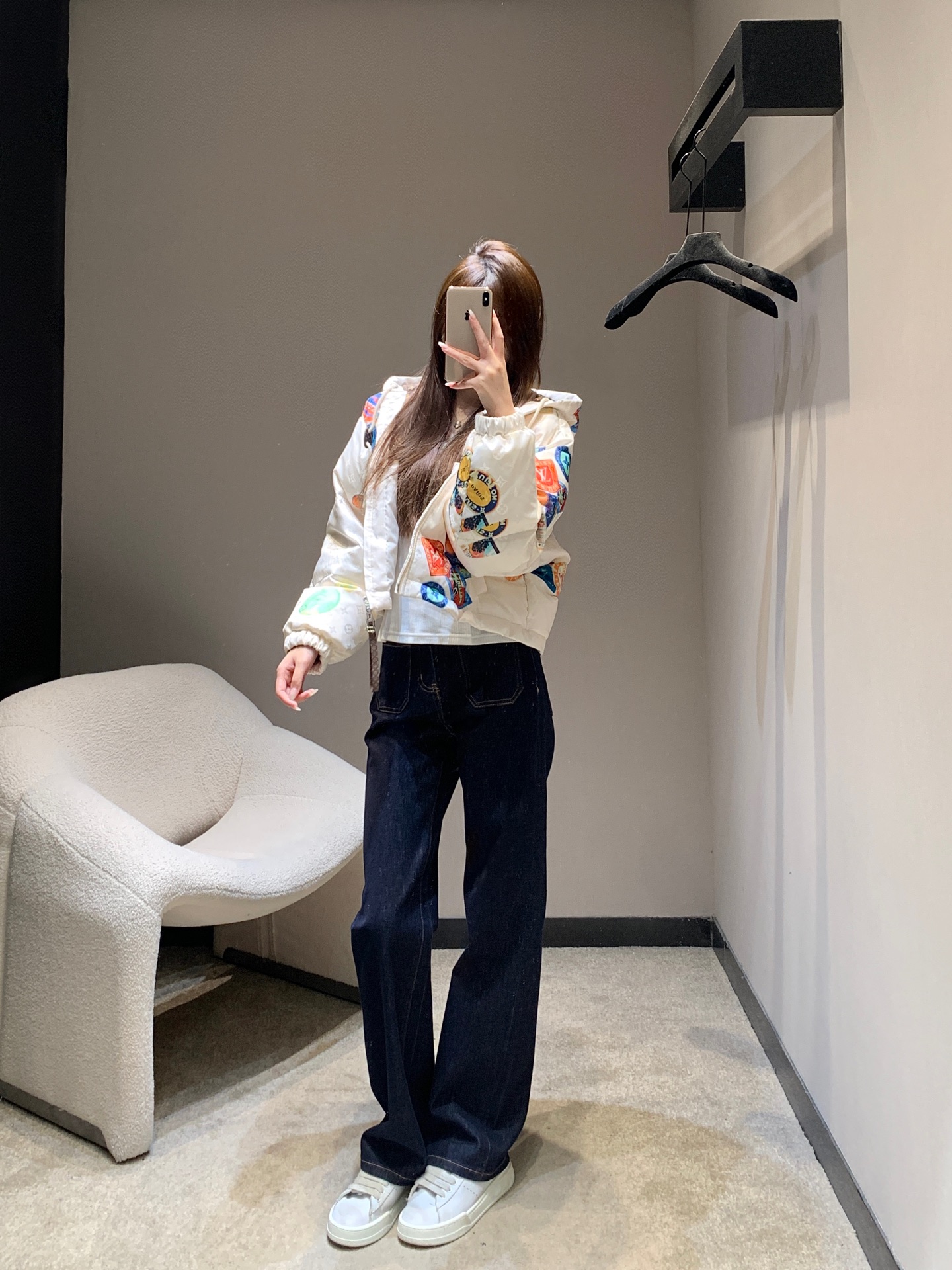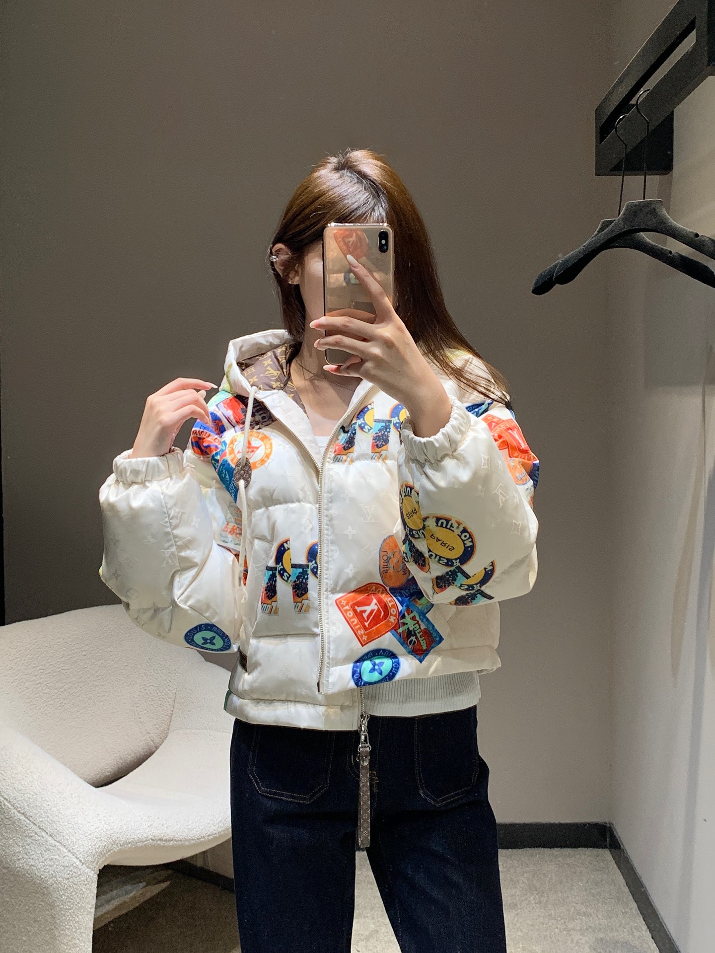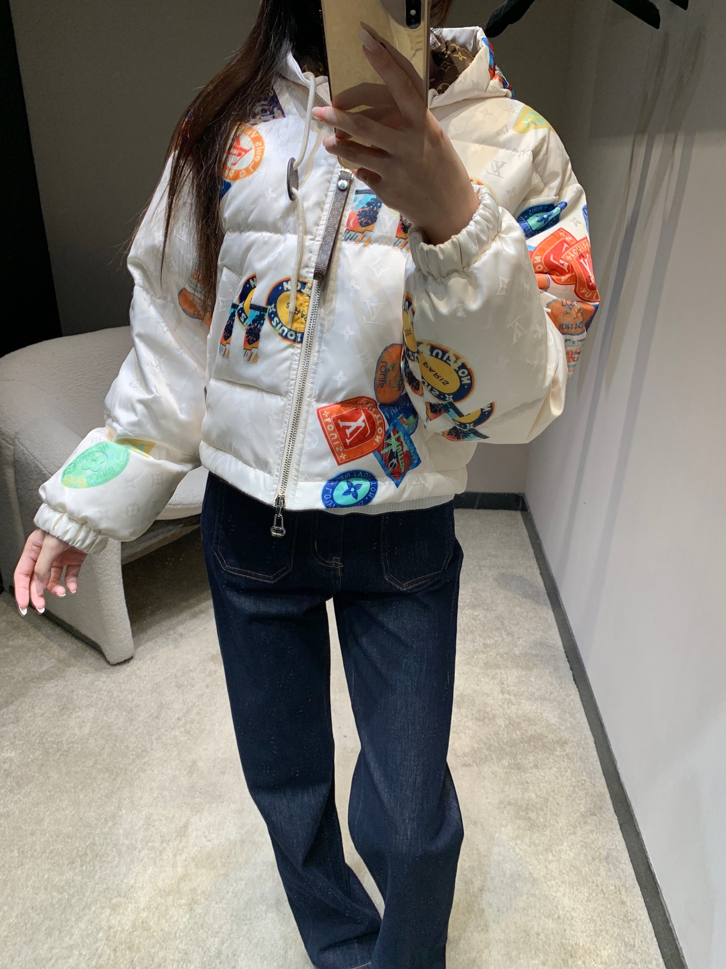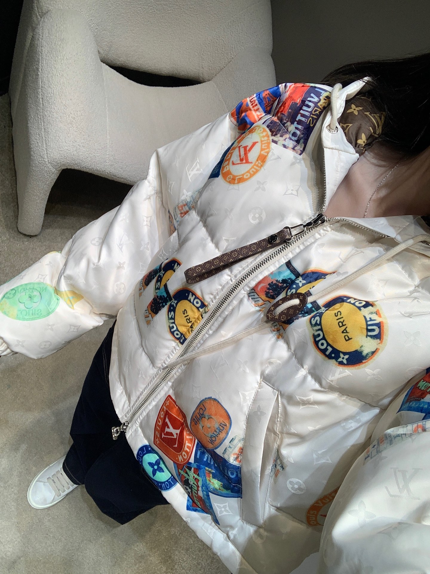 Louis Vuitton White Down Jacket with Flying Stamp Print