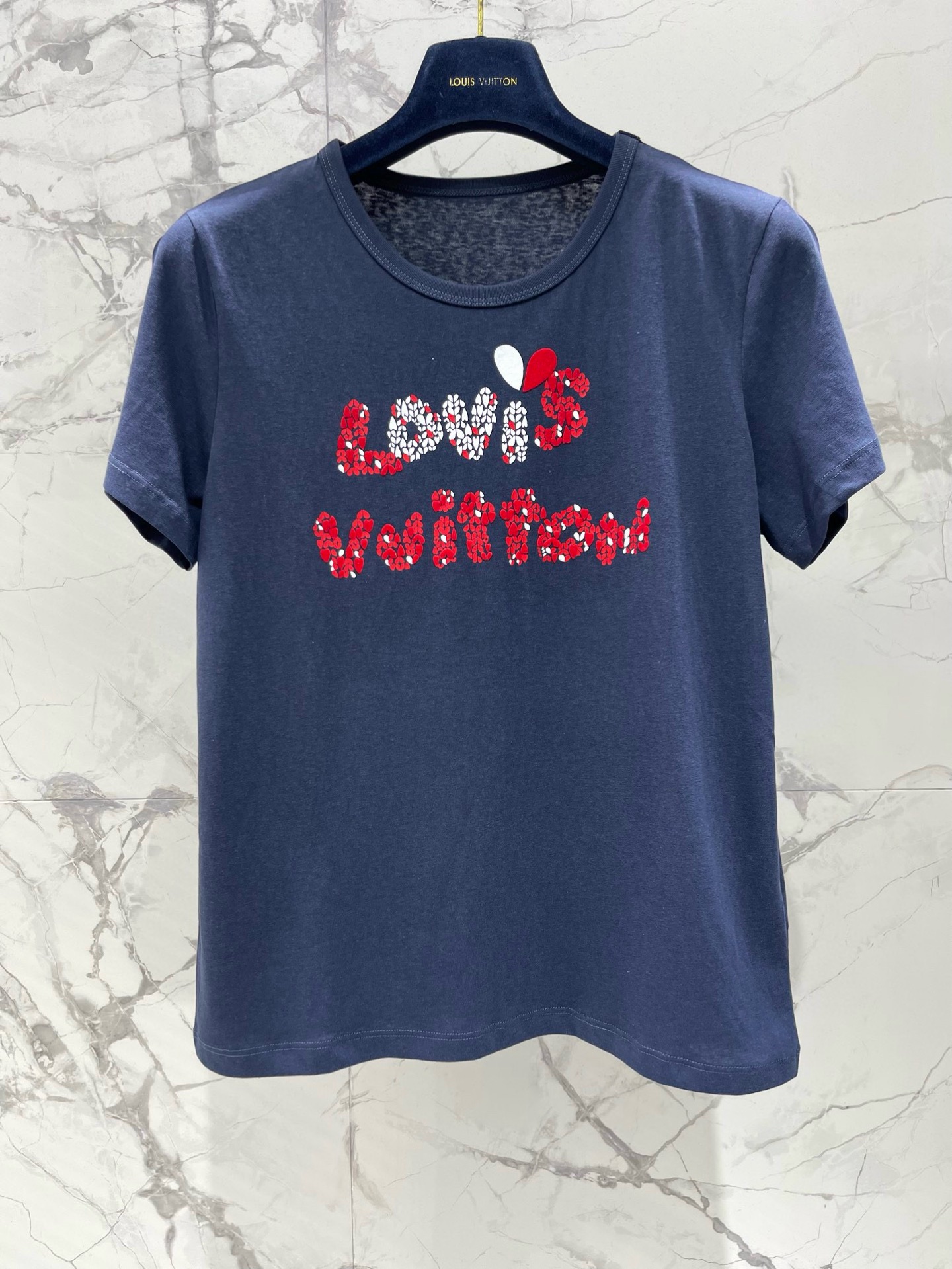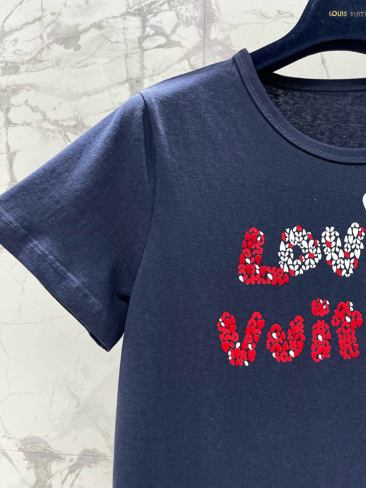 Elevate your summer wardrobe with this stylish Louis Vuitton tee featuring a flocked heart logo. Comfortable, breathable, and effortlessly chic.